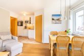 Die voll ausgestattete Küche lädt dazu ein, Ihre Lieblingsgerichte zuzubereiten. Hier finden Sie alle notwendigen Geräte und Utensilien, um Ihre Mahlzeiten ganz nach Ihrem Geschmack zuzubereiten. Genießen Sie Ihre Köstlichkeiten dann am Esstisch im Wohnbereich oder auf dem Balkon, während Sie die frische Ostseeluft und die malerische Umgebung genießen.