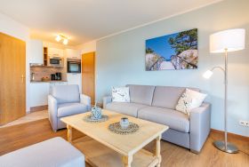 Die Ferienwohnungen am Maiglöckchenberg, Typ 1/2 sind gemütlich eingerichtet, 46m² groß und für bis zu 4 Personen ausgelegt (2 Pers. + 2 Aufbettungen). Sie besitzen ein Schlafzimmer, ein Wohnbereich mit einer offenen Küche und ein Badezimmer.