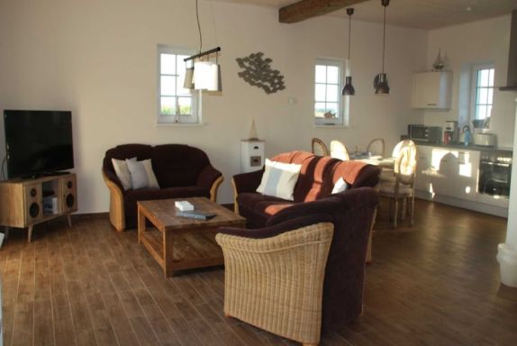 Die 4 Sterne Doppelhaushälfte Hahn & Henne (86 qm), erstreckt sich über 2 Ebenen und ist im modernem Landhausstiel eingerichtet. Der Bodenbelag besteht aus Fliesen, warmen Holzböden oder hochwertigem Vinyl.