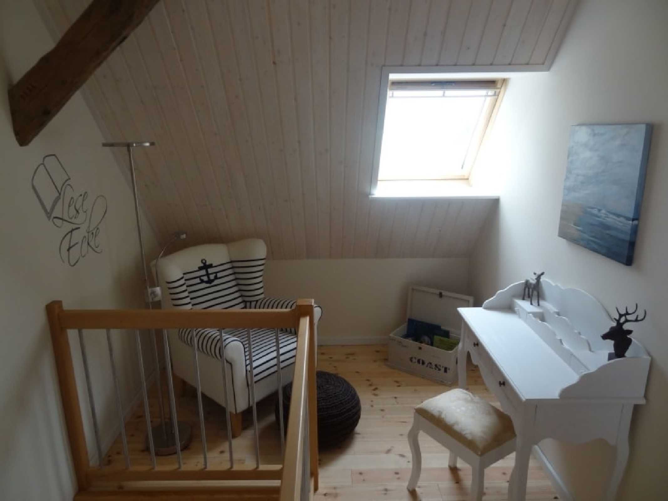 - kleine Galerie mit einem gemütlichen Lesesessel und einer Bücherauswahl sowie einem Arbeitsbereich