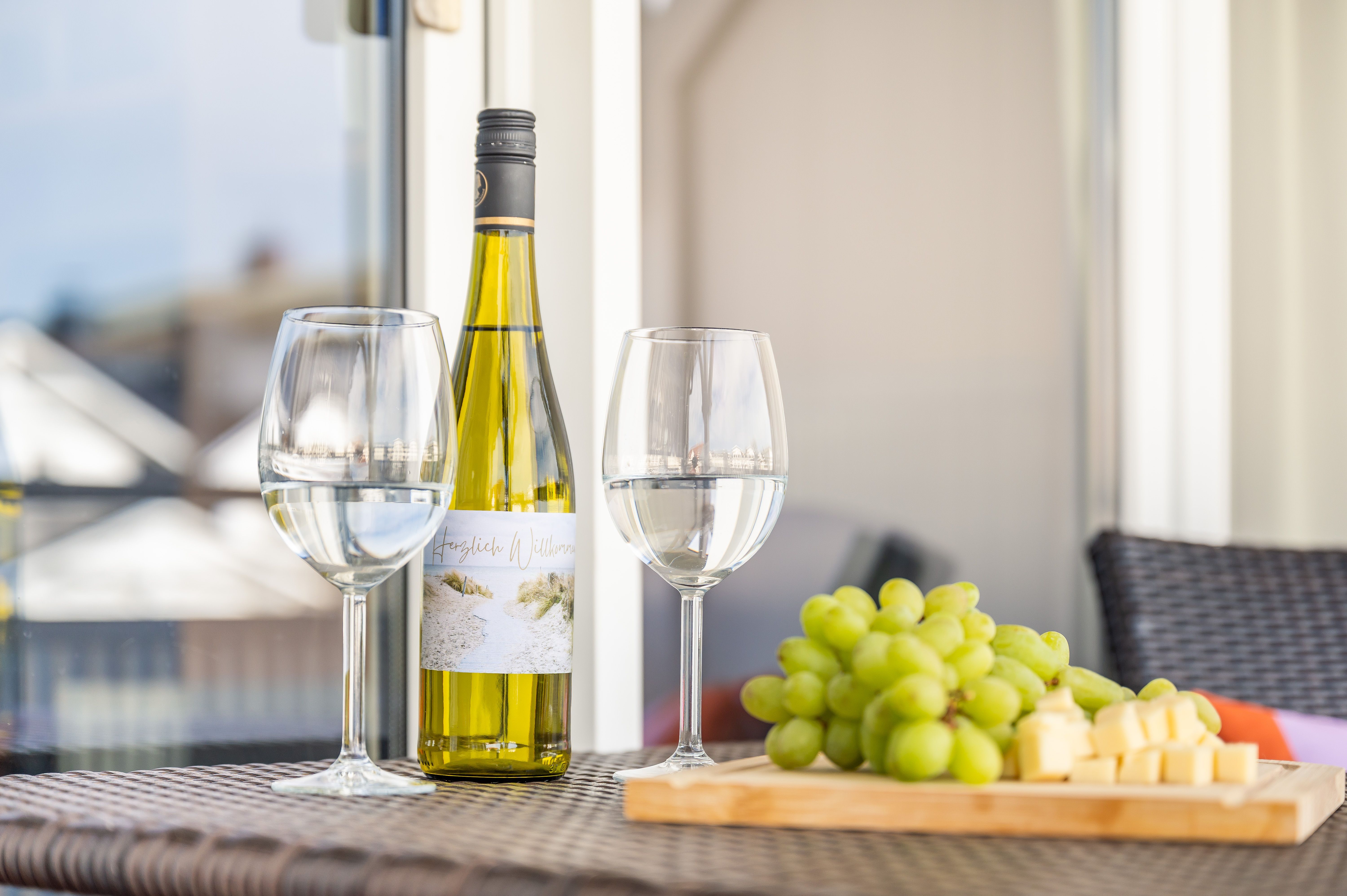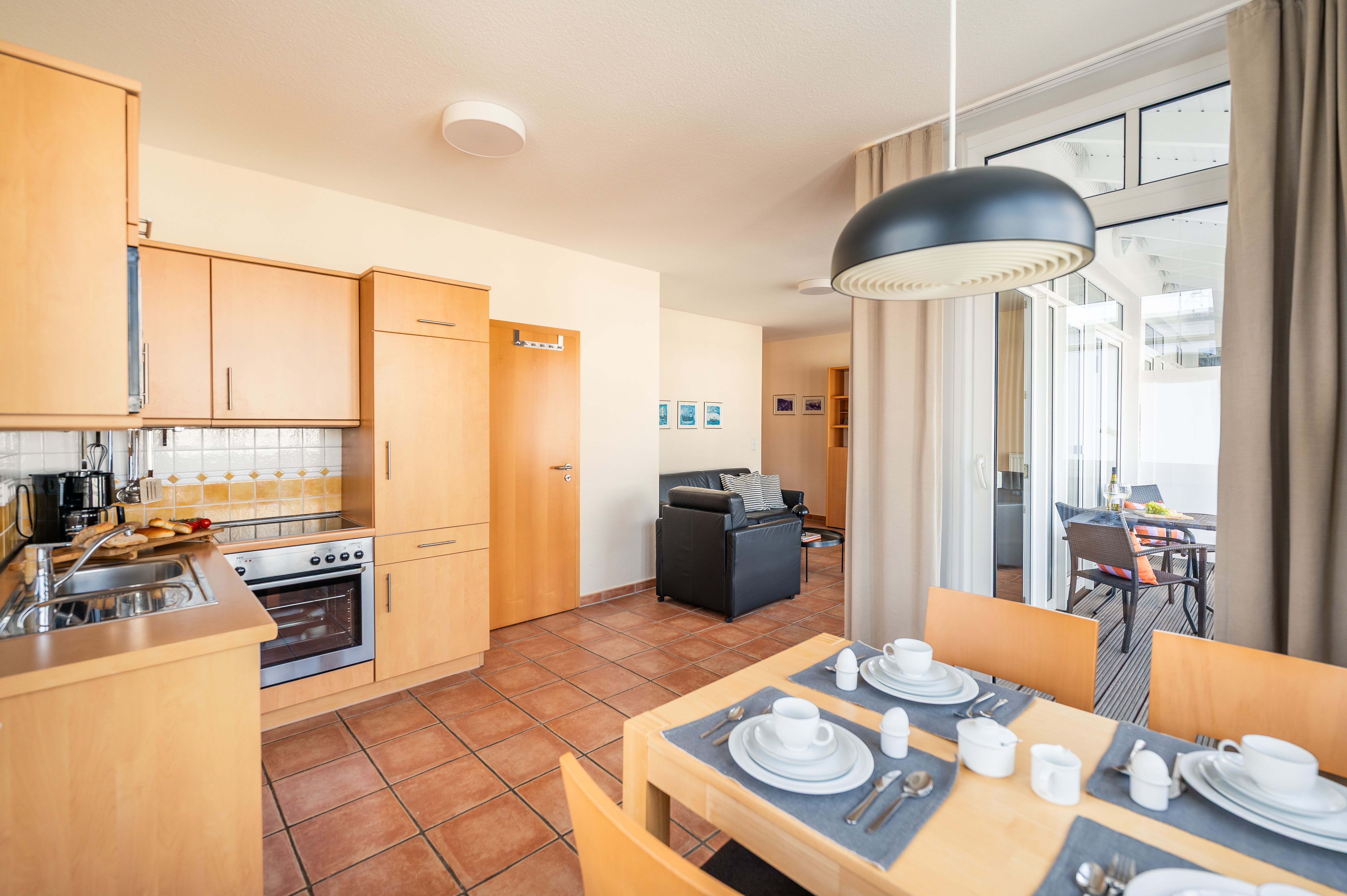 Jedes der acht anspruchsvoll möblierten 4-Sterne Ferienwohnungen verfügt über mindestens ein separates Schlafzimmer, eine hochwertige Küche, ein komfortables Duschbad, eine Loggia, Balkon oder Terrasse (teilweise sogar mit Meerblick!) sowie über einen Garagenstellplatz.