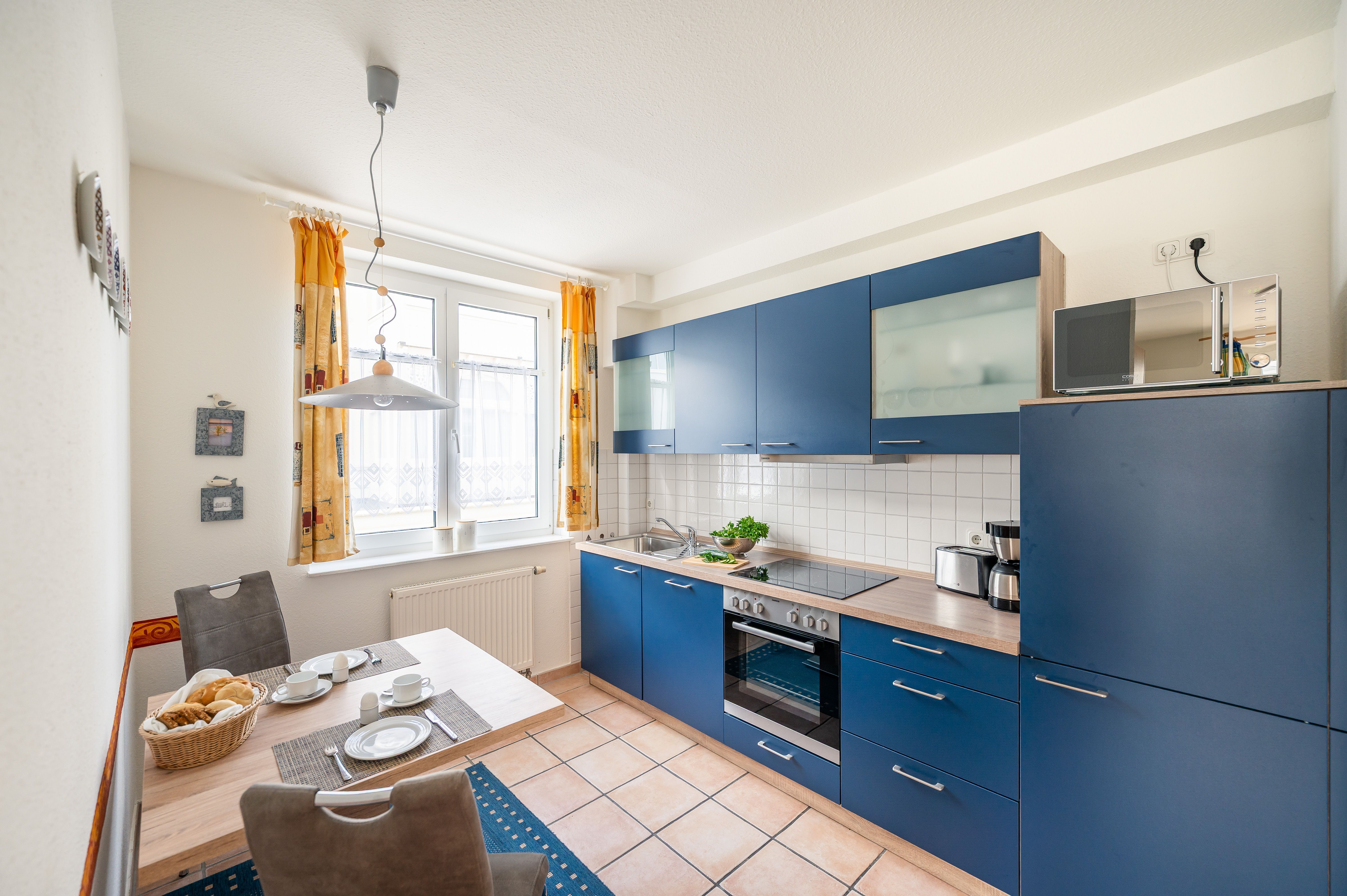 • Küche: Mikrowelle, Backofen,, Kühlschrank mit Gefrierfach, Kaffeemaschine, Toaster und Wasserkocher