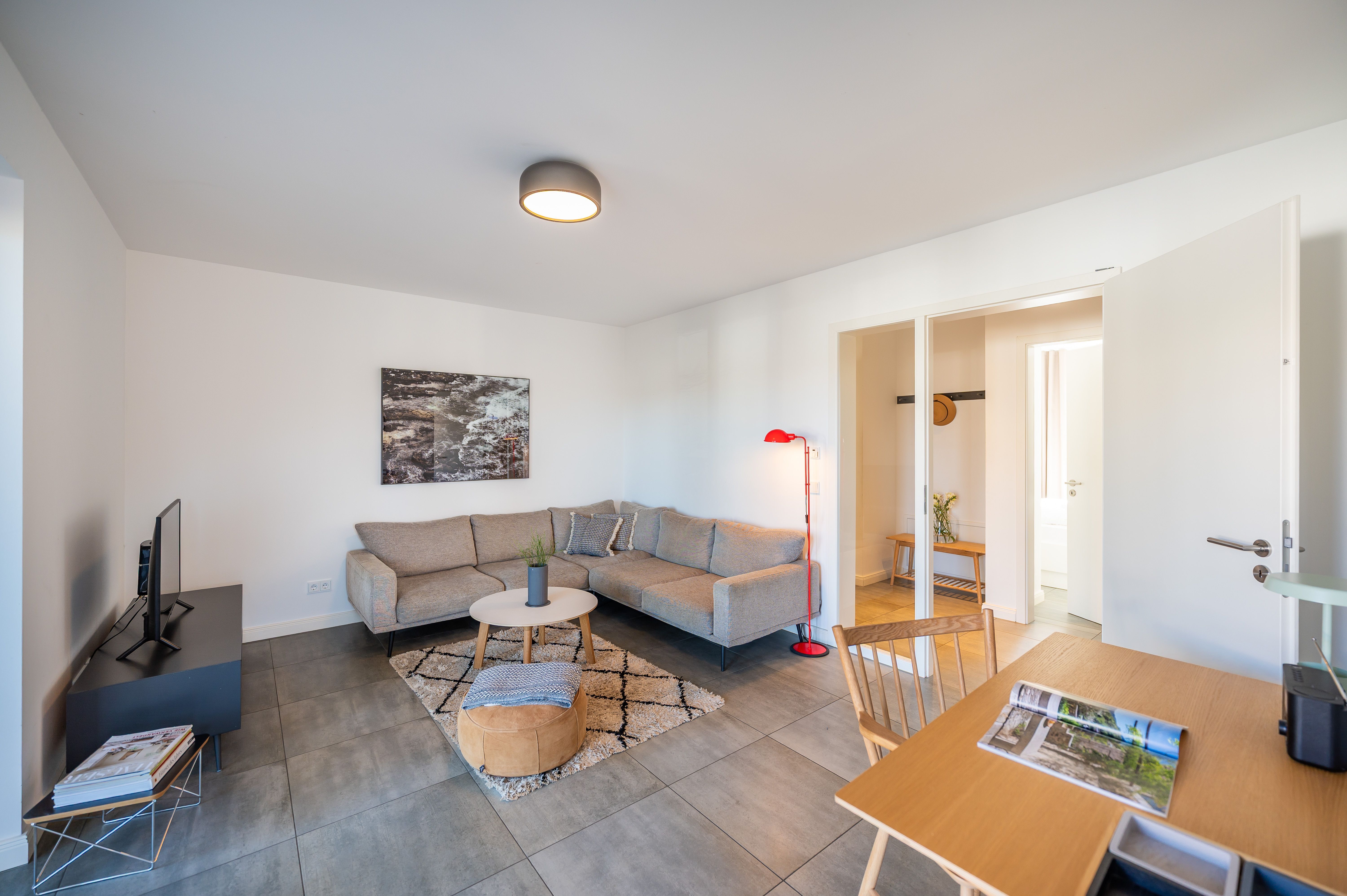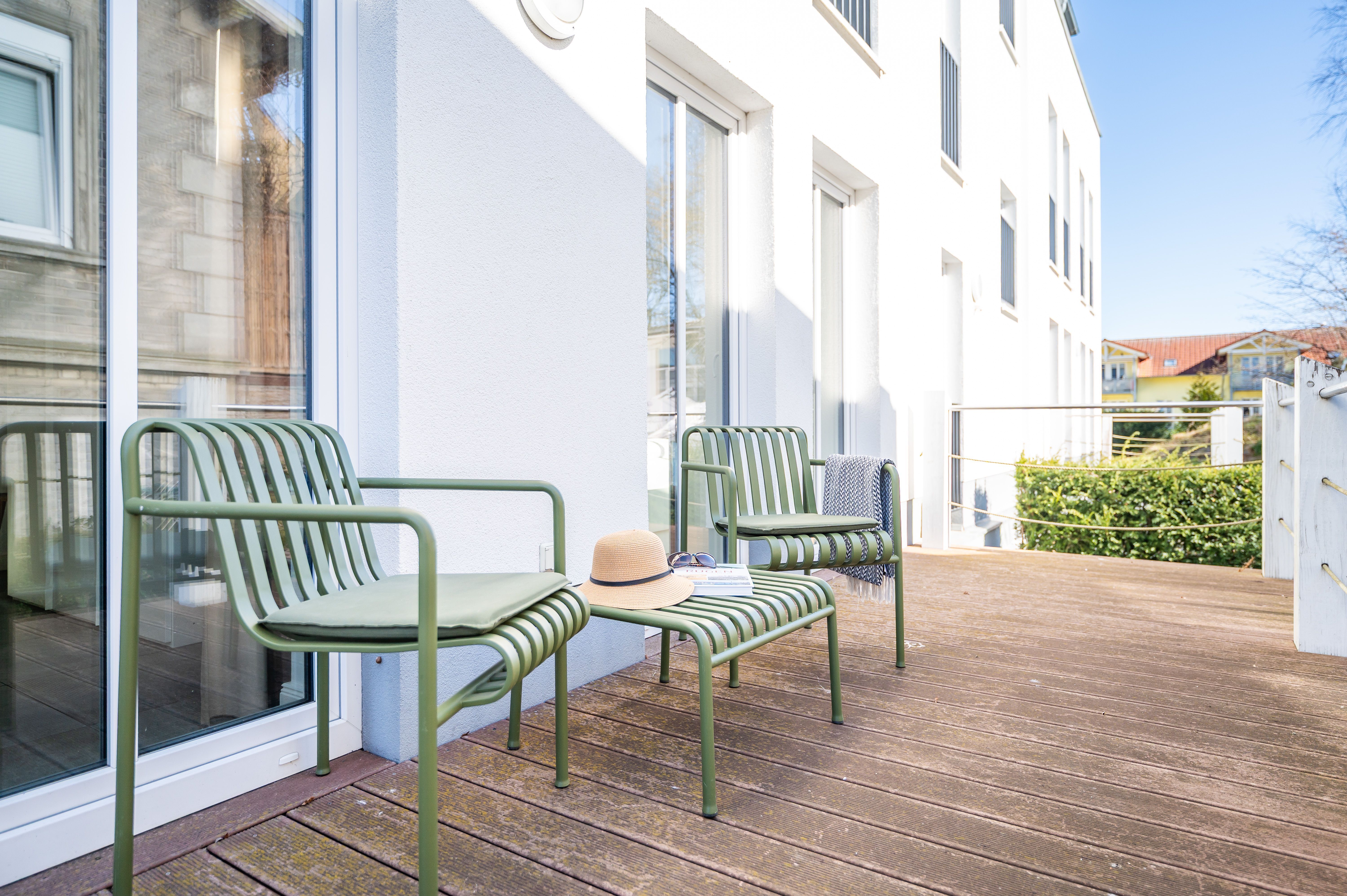 Das nach Süden hin angelegte Appartement ist mit ca. 86 qm großzügig bemessen und hat eine Aufteilung, die bei unseren Kunden sehr beliebt ist. Es besteht aus einem Wohnzimmer, einer Küche, zwei Badezimmer, zwei Schlafzimmer. Das Appartement verfügt zudem über eine geräumige Terrassen.