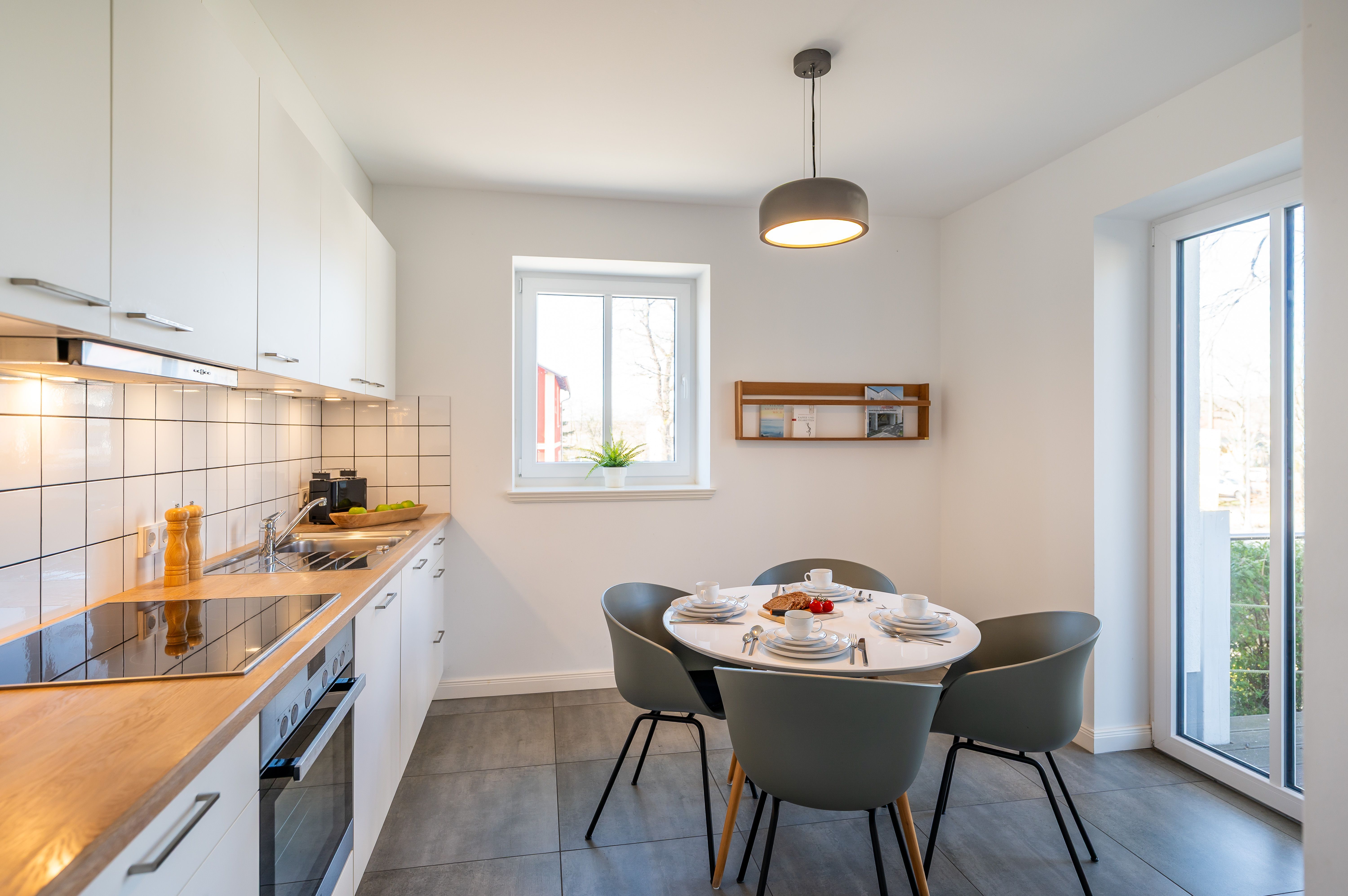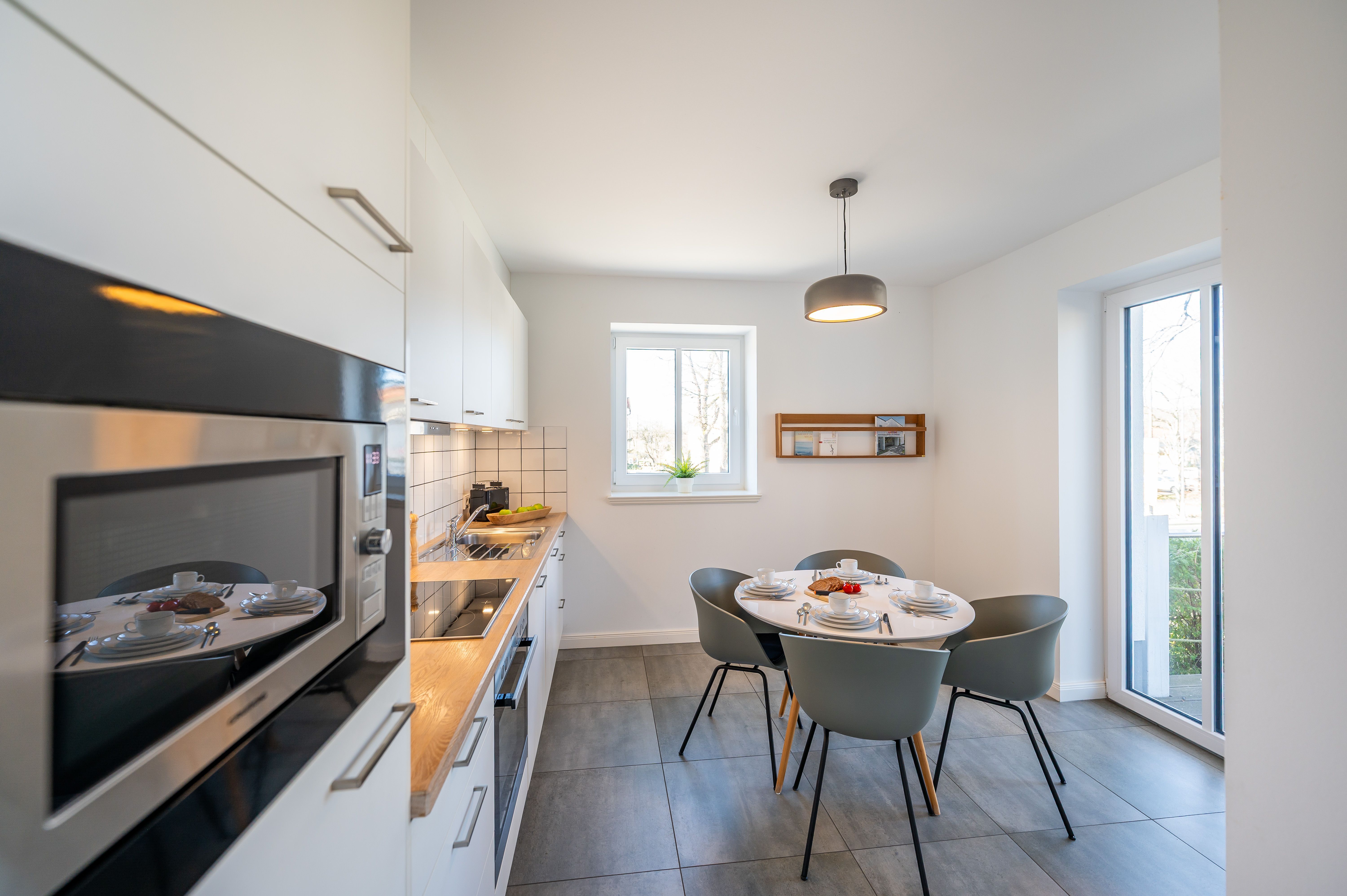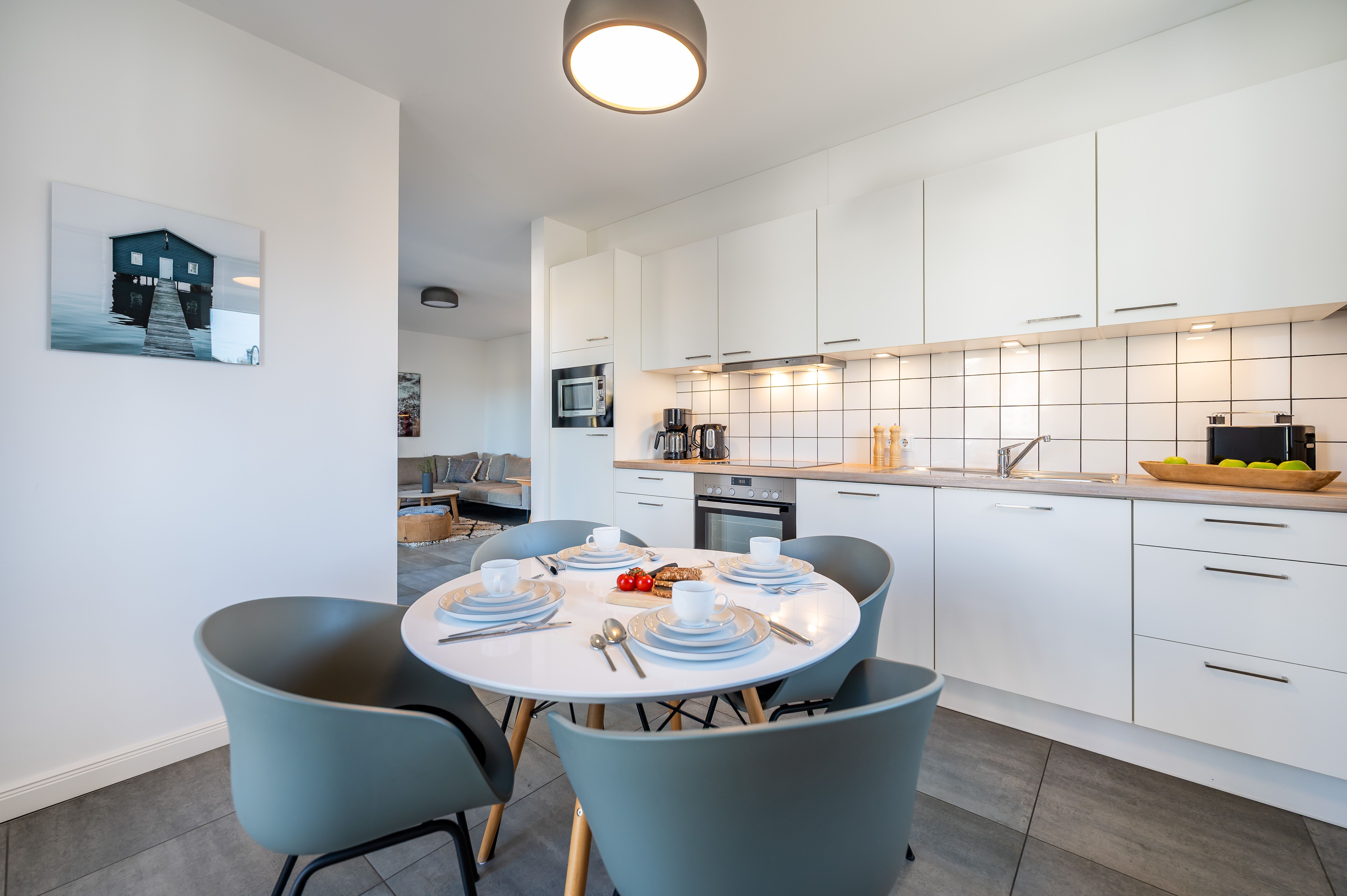 • Küche :Mikrowelle, Backofen, Geschirrspülmaschine, Kühlschrank mit Gefrierfach, Kaffeemaschine, Toaster und Wasserkocher
