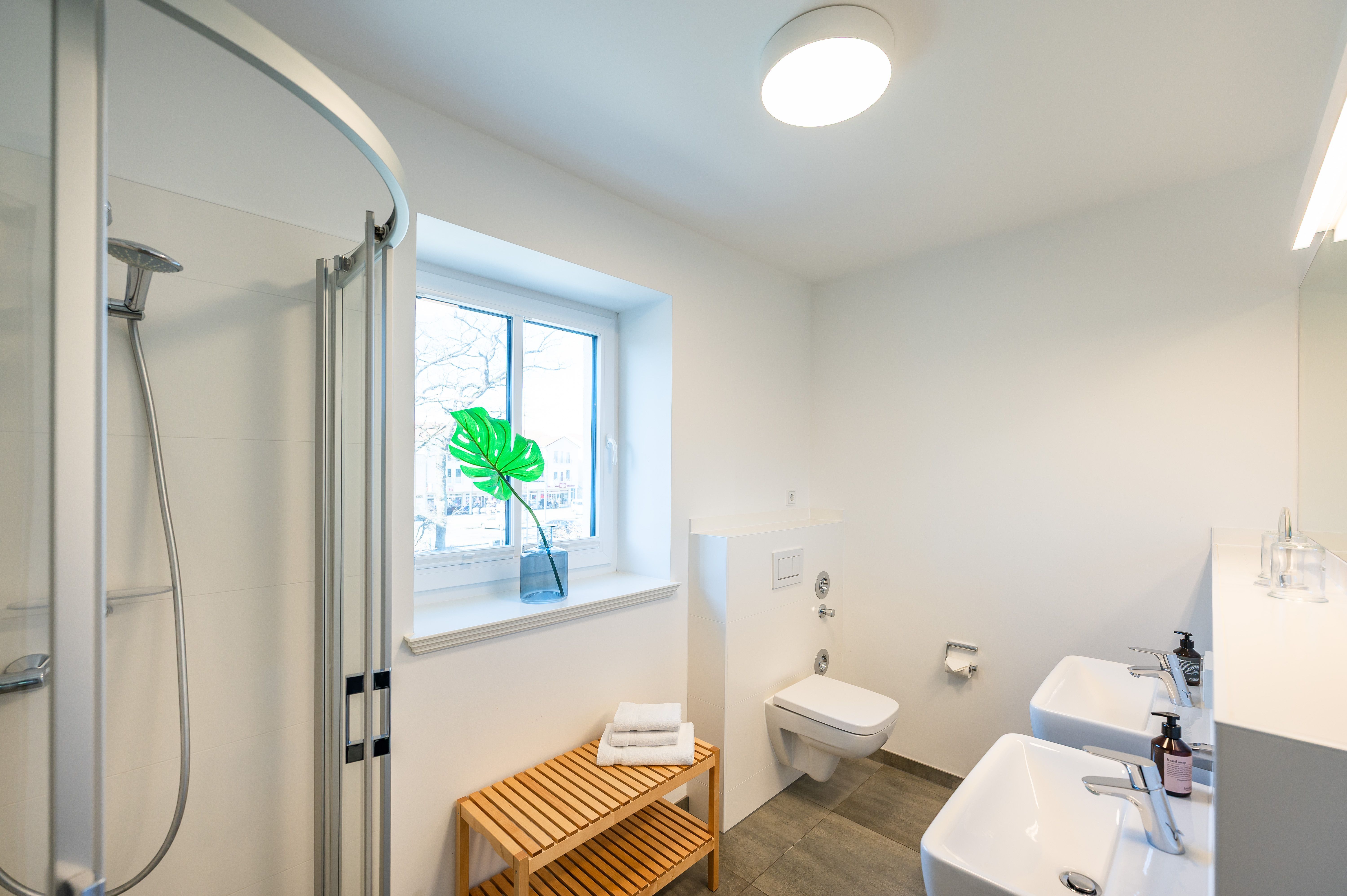 • 2 Bäder :Dusche, Waschbecken, Toilette,Schrank