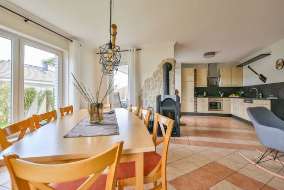 Mit 6 Personen (plus Aufbettungsmöglichkeit für 1 Kind im Kinderbett) erleben Sie hier einen ruhigen und erholsamen Urlaub. Ob Entspannung auf der überdachten Terrasse im Strandkorb, auf einer unserer Sonnenliegen im Garten oder im Winter vor dem warmen Kamin, hier finden Sie Ruhe und Erholung. Ein Grillkamin im Garten bietet die Möglichkeit auf gesellige Grillabende, vielleicht mit frisch gegrilltem Fisch aus der Ostsee (entsprechendes Grillgeschirr steht zur Verfügung).