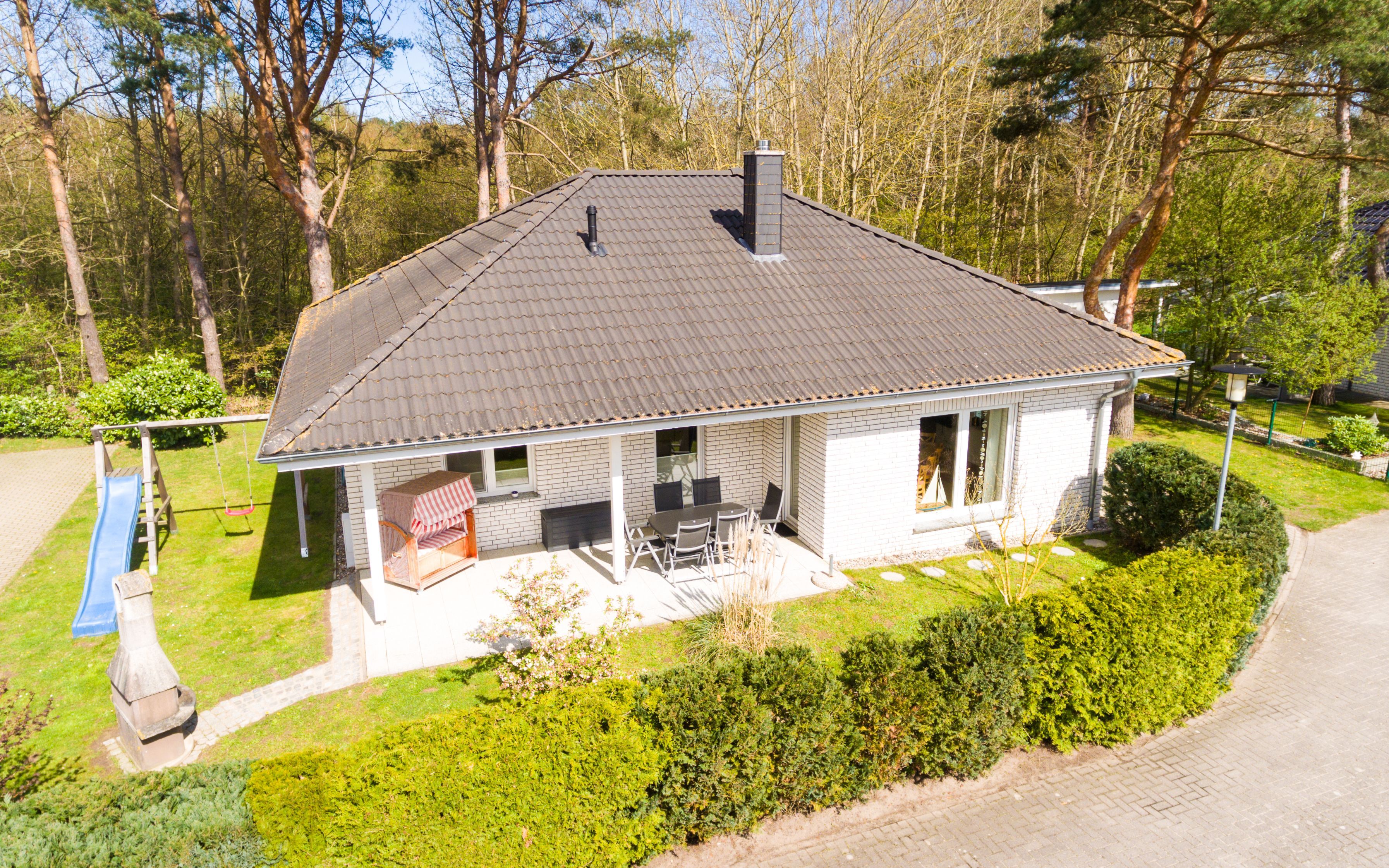 Die großzügige und überdachte Terrasse mit Strandkorb und der Grillkamin im Garten garantieren gesellige Abende im Freien. Neben dem großzügigen Wohn-Essbereich stehen ein Kinderzimmer mit Etagenbett (2m X 0,90m und 2m X 1,4m Liegefläche), zwei Schlafzimmer mit Doppelbett (eines ausgestattet mit Flachbildschirm), ein Badezimmer mit Badewanne und Duschvorrichtung, ein Badezimmer mit Dusche zur Verfügung.
