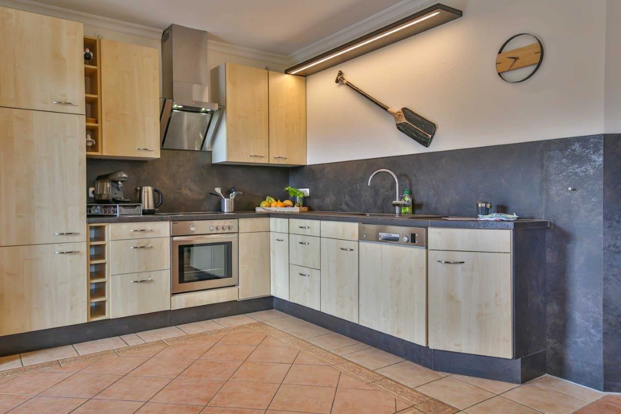 In der Küche finden Sie einen Elektroherd mit Ceranfeld/Backofen, Geschirrspüler, Kühl- und Gefrierschrank, Kaffeemaschine/Kapselautomat (Tassimo), Filterkaffeemaschine, Toaster, Wasserkocher, Geschirr, Töpfe und Pfannen sowie eine gute Auswahl an Besteck.