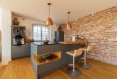 Die hochwertige Küche im amerikanischen Stil ist ebenso im Wohnbereich integriert wie der Essbereich mit genügendem Platz und Meerblick.
