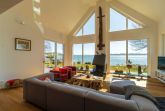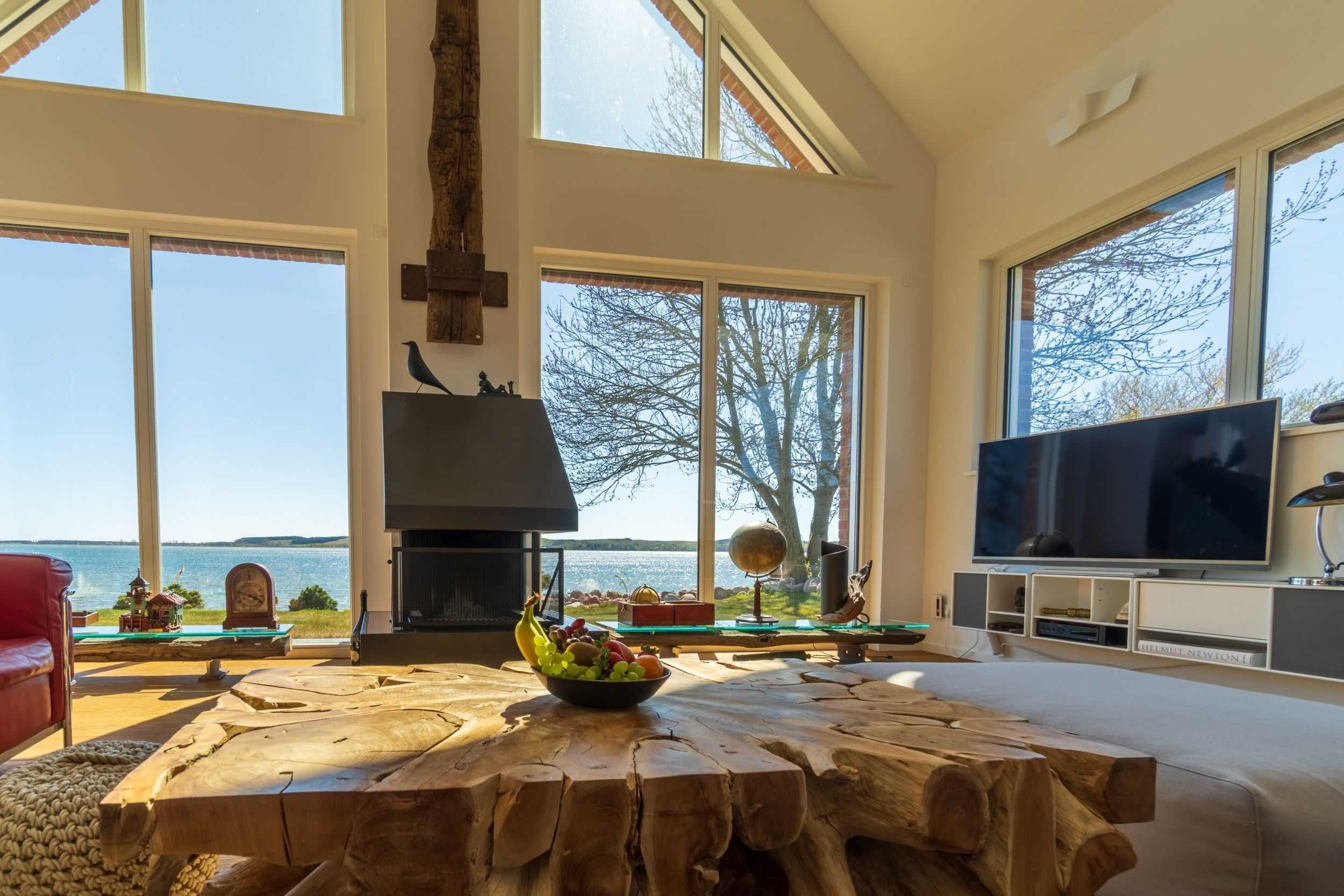 Im Erdgeschoß befindet sich ein großer offener Wohnbereich mit Kamin und einem herrlichen Panoramablick. Über den geschmackvoll mit hochwertigen Möbeln und Accessoires eingerichteten Wohnbereich kommen Sie auf die Terrasse und in den Garten.