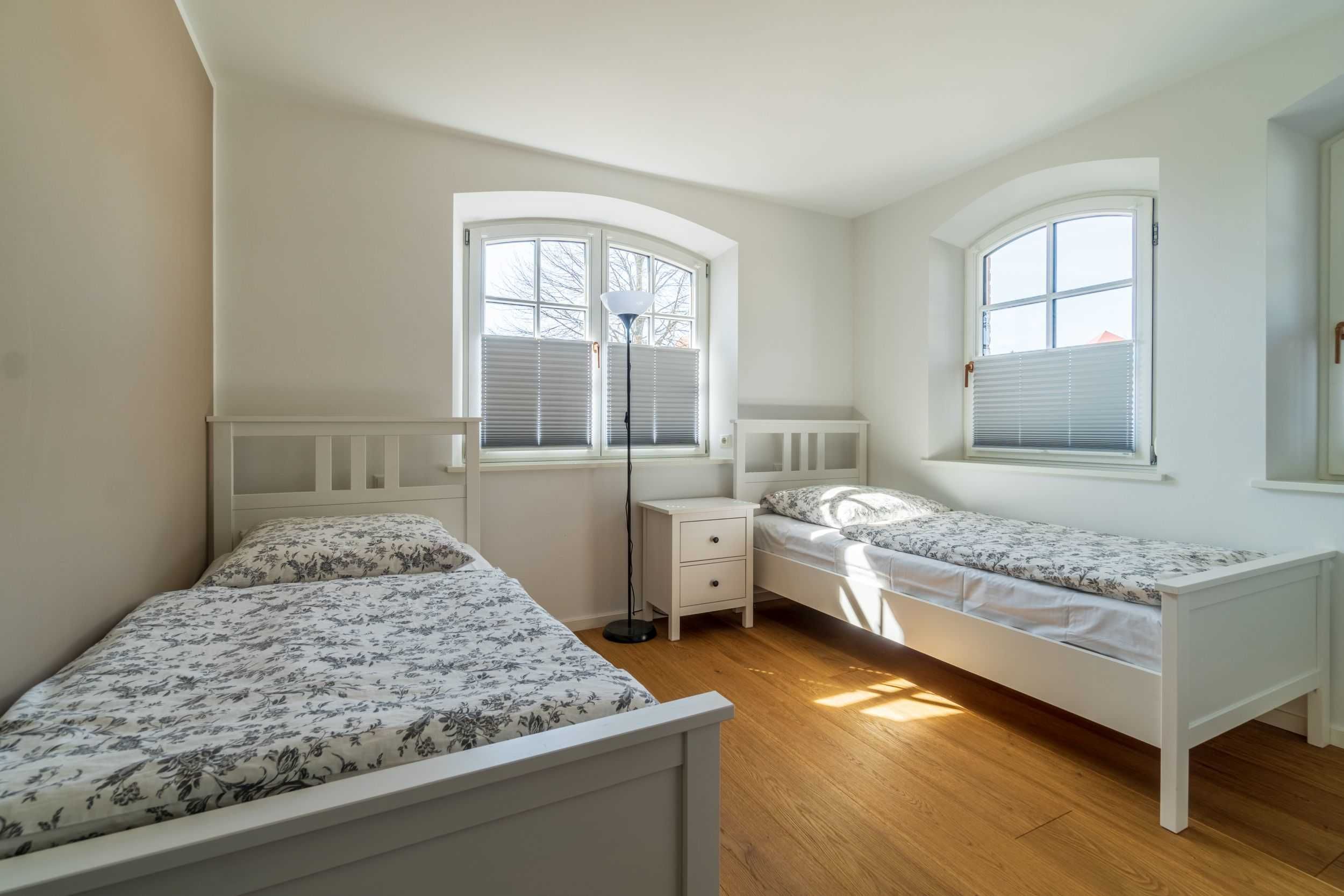 Ebenso befindet sich im Erdgeschoß ein Schlafzimmer mit 2 Einzelbetten und TV sowie eines der Gäste WC.