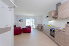 Die Wohnung empfehlen wir für 4 Personen, sie verfügt jedoch über eine Schlafcouch, wodurch die Belegung um 1 Personen, gegen Gebühr, aufgestockt werden kann.