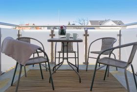 Die Ferienwohnung Bug verfügt über einen eigenen Balkon mit Gartenmöbeln.