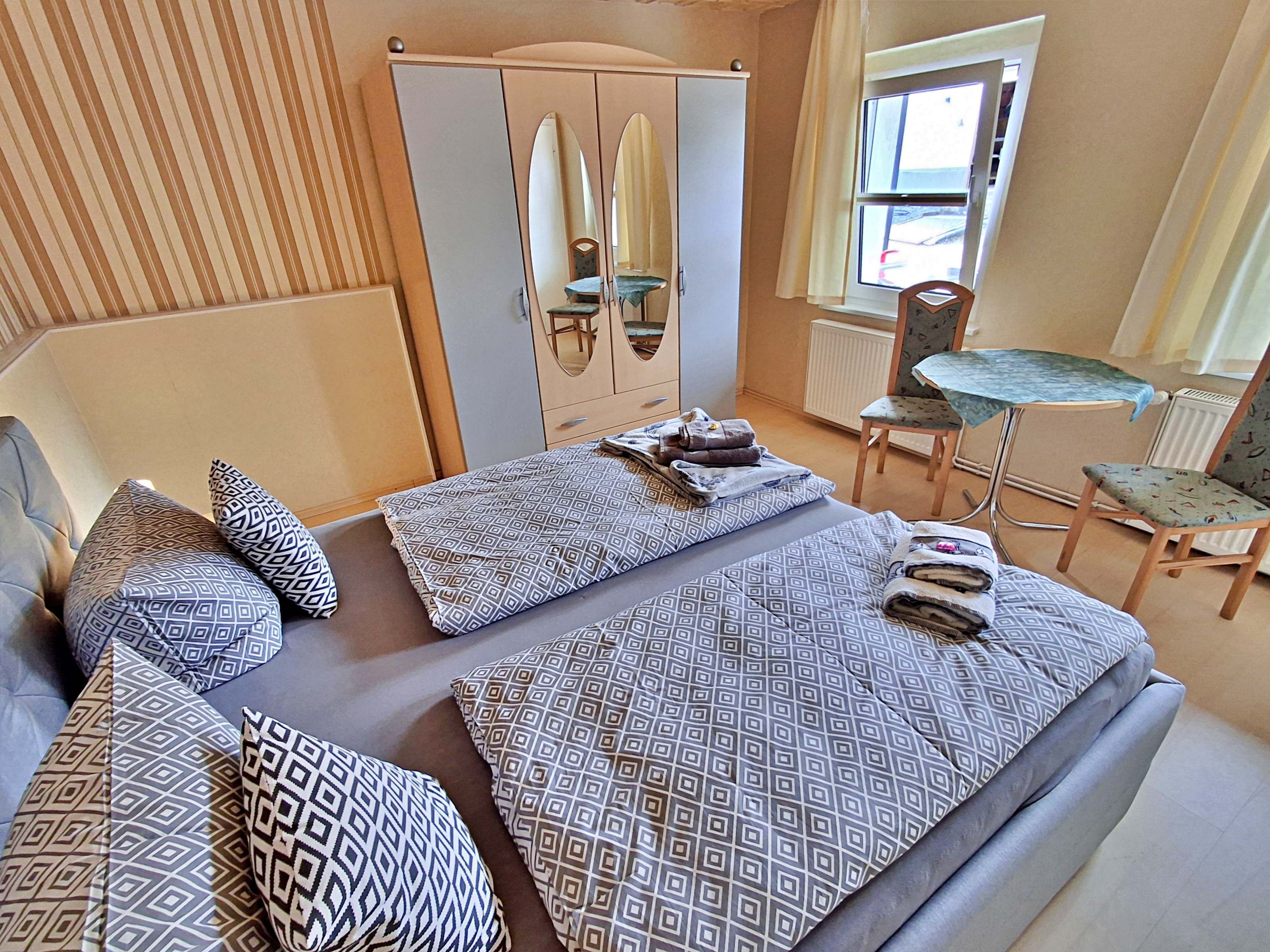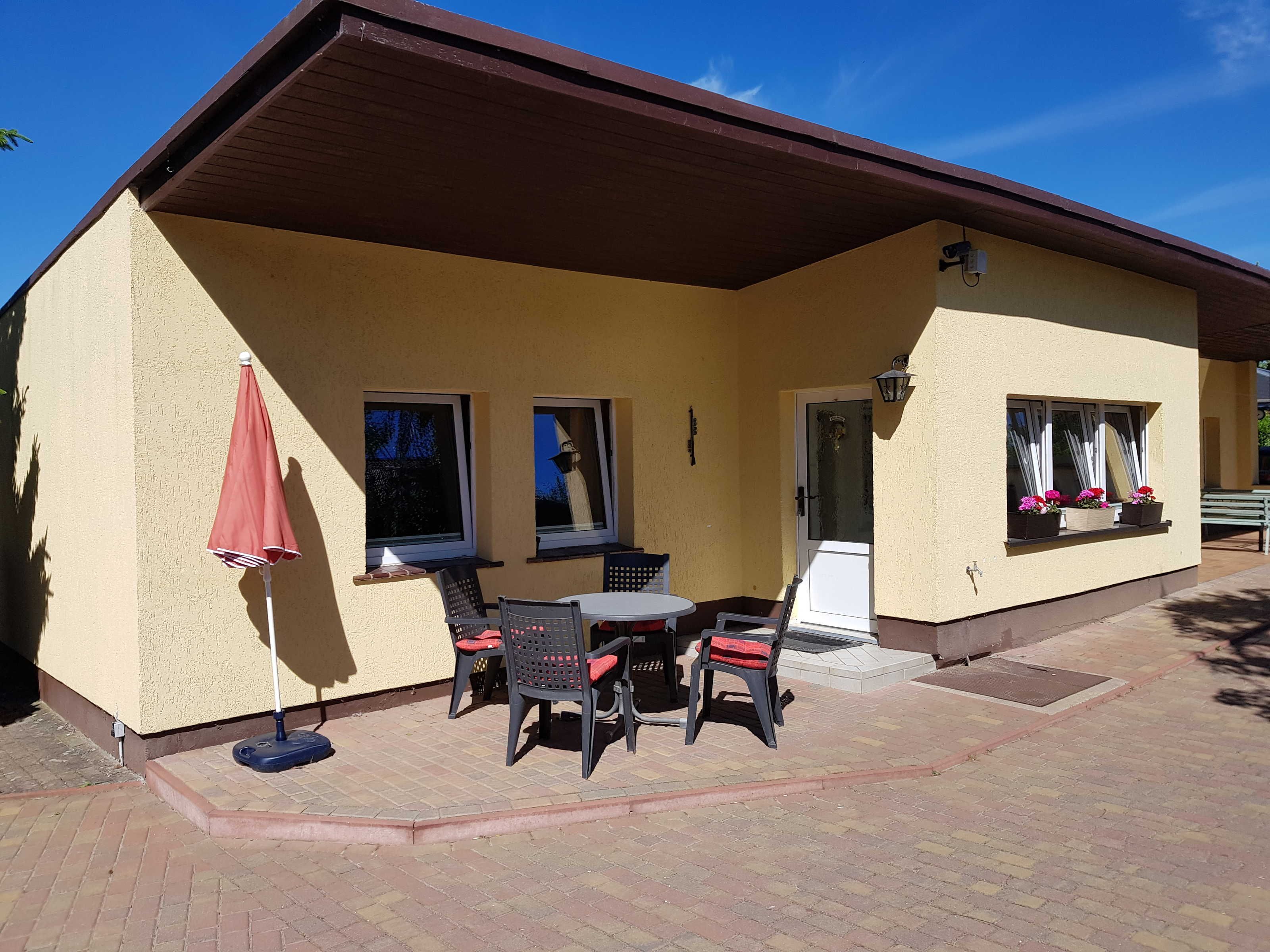 Dieser helle und einladende Bungalow erwartet Sie mit einem gemütlichen Wohnzimmer, das mit einer komfortablen Couch und einem Flachbild-TV (Sat-TV) ausgestattet ist. Der separate Esstisch mit vier Stühlen lädt zu gemeinsamen Mahlzeiten ein. Im Bungalow finden Sie ein Schlafzimmer mit einem Doppelbett (auf Wunsch mit einem Kinderbett) sowie ein Kinderzimmer mit zwei Betten, welches als Durchgangszimmer zum Schlafzimmer dient. Die separate Küche bietet alles, was Sie brauchen: Herd, Backofen, Kühlschrank mit Tiefkühlfach, Geschirrspülmaschine, Mikrowelle, Kaffeemaschine, Toaster und Wasserkocher - hier wird das Kochen zum Vergnügen! Das Badezimmer mit Fenster verfügt über eine Dusche, WC und genügend Stauraum, während die beiden überdachten Terrassen das Gesamtbild abrunden. Hier können Sie bereits am Morgen Ihren Kaffee genießen oder den Abend entspannt bei einem Glas Wein ausklingen lassen. Ein kostenfreier Parkplatz direkt am Haus auf dem abgeschlossenen Grundstück des Eigentümers steht Ihnen zur Verfügung. Für Ihre eigenen Fahrräder gibt es ebenfalls eine sichere Unterstellmöglichkeit. Das W-LAN nutzen Sie kostenfrei um Ihre Urlaubserlebnisse mit der Familie oder Freunden daheim zu teilen. Ihr lieber Vierbeiner ist gegen eine Gebühr herzlich willkommen. Bitte beachten Sie, dass die Eigentümer ebenfalls einen freundlichen Hund besitzen, der sich auf dem Grundstück frei bewegt.