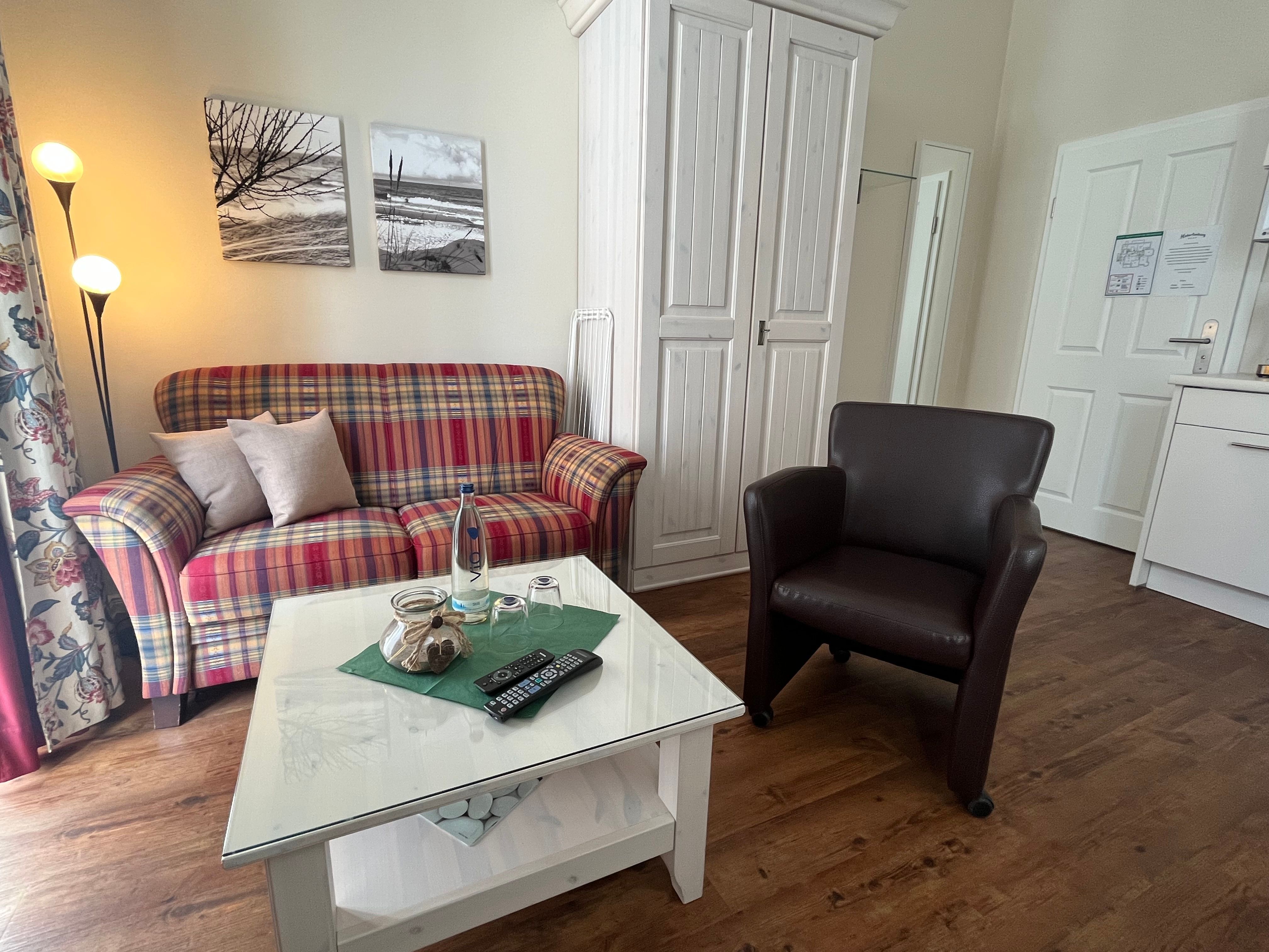 • Pantry-Küche (mit Mikrowelle, Wasserkocher, 2 Kochfelder, Kaffeemaschine, Kühlschrank)