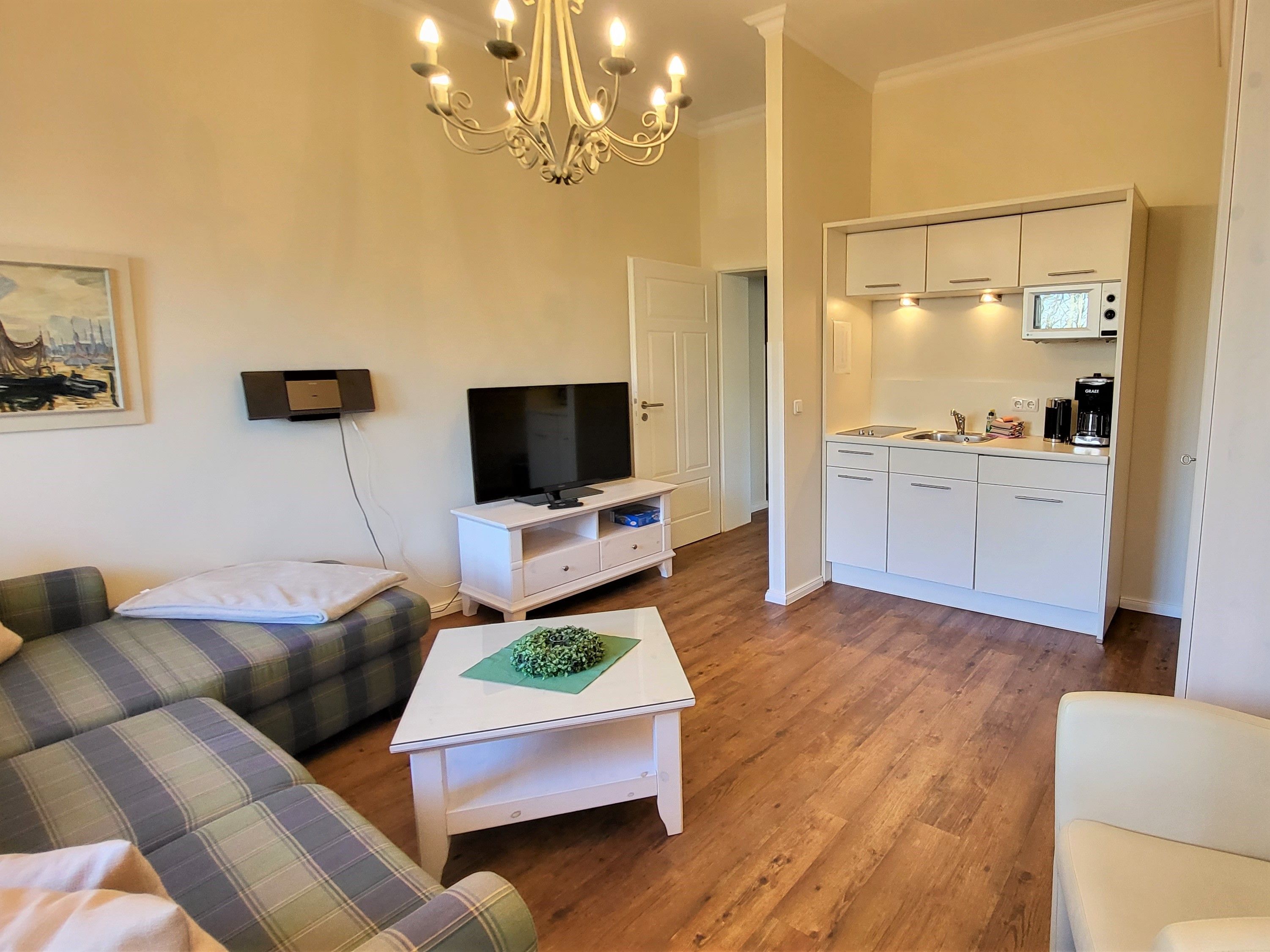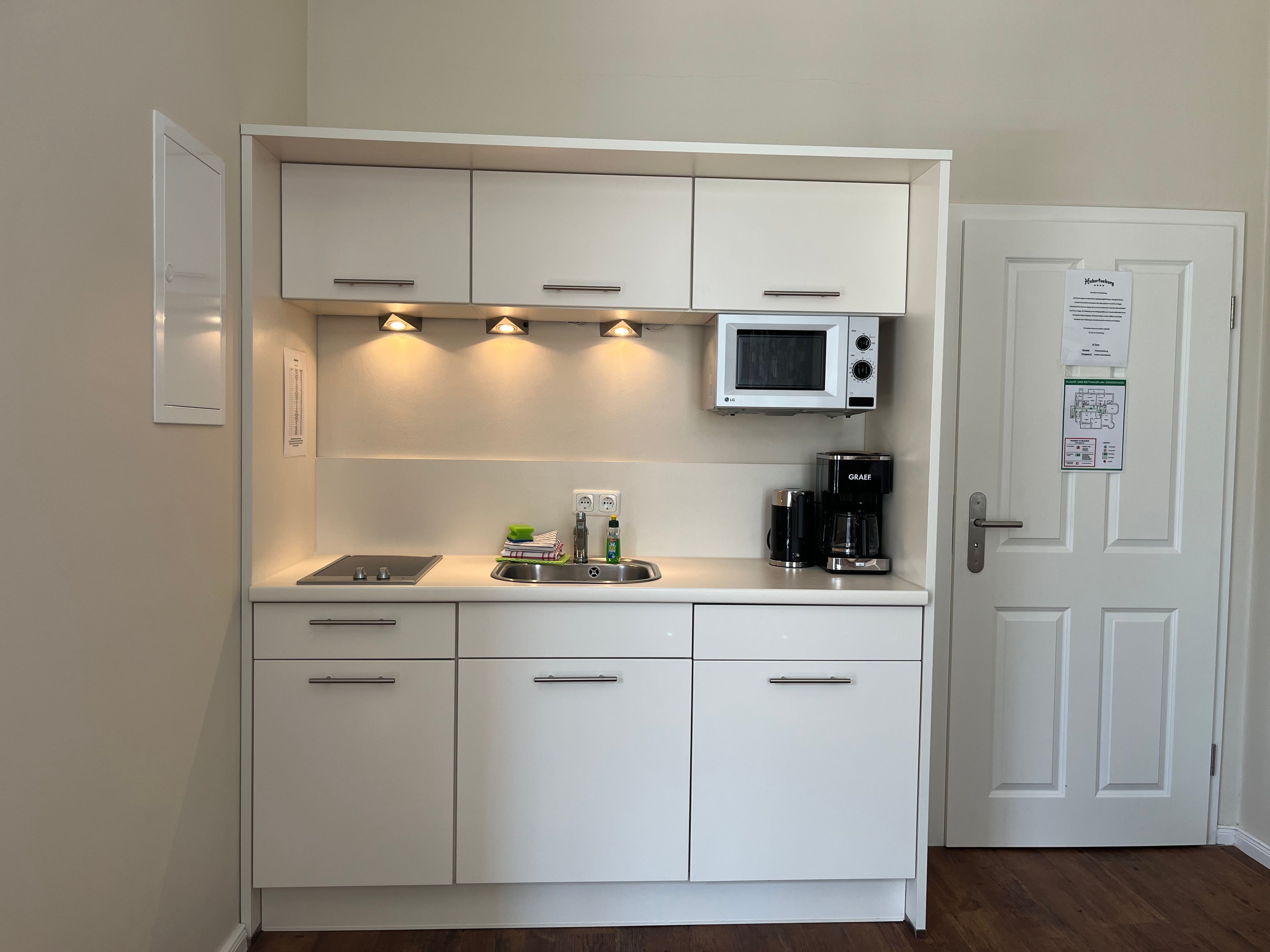 • Pantry-Küche (mit Mikrowelle, Wasserkocher, 2 Kochfelder, Kaffeemaschine, Kühlschrank)