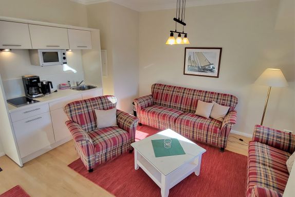 • Pantry-Küche (mit Mikrowelle, Wasserkocher, 2 Kochfelder, Kaffeemaschine, Kühlschrank)