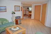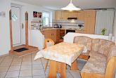 Die Ferienwohnung mit Gartenterrasse (78 qm, max. 2 Erwachsene, WLAN) ist modern und komfortabel eingerichtet. Zur Ausstattung im großzügigen Wohnbereich gehören eine Couch mit Tisch, Flachbild-TV/Radio. Der Küchenbereich verfügt über eine Sitzecke mit Esstisch.