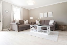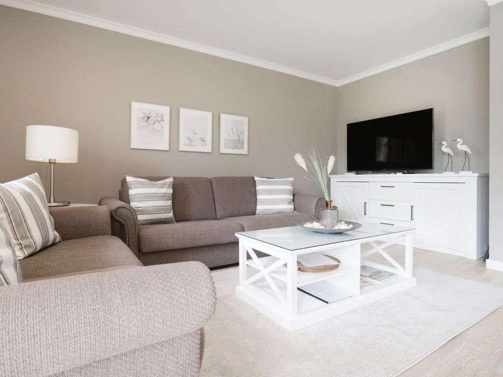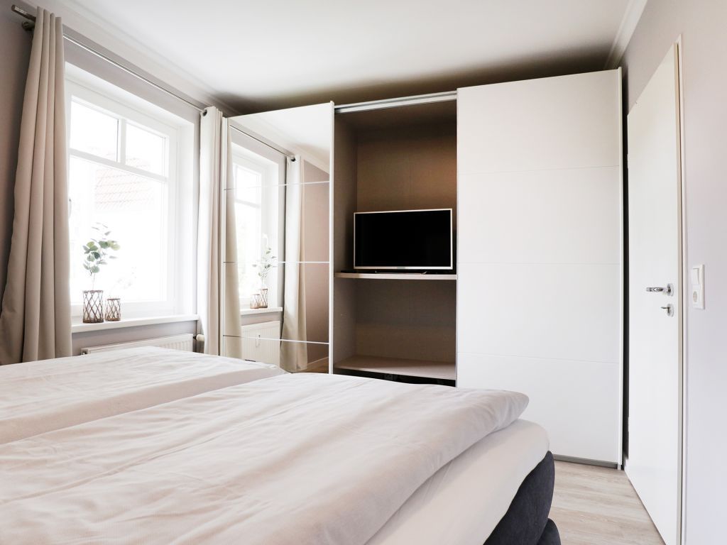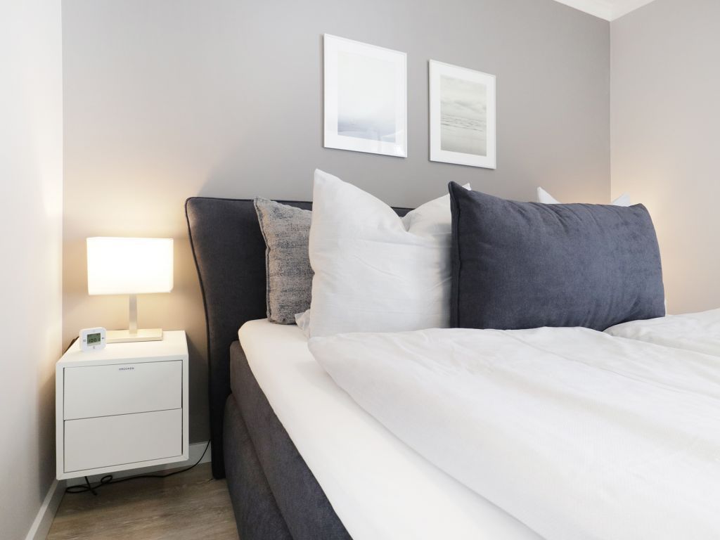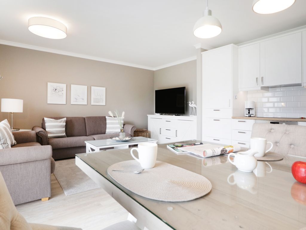 Nur 70 Meter vom Strand, erwartet Sie diese komfortable Ferienwohnung mit 52qm Wohnfläche im 1. Obergeschoss. Sie erreichen die Wohnung bequem mit dem Fahrstuhl und können mit maximal 4 Personen buchen. Der schicke Wohn-/Essbereich verfügt über eine ausziehbare Sitzgruppe, die auch als Schlafmöglichkeit für zwei Personen genutzt werden kann, sowie eine Schrankwand und einen Flachbildfernseher. Kostenloses WLAN steht Ihnen ebenfalls zur Verfügung. Die gut ausgestattete Wohnküche bietet alles Notwendige, darunter einen Ceranherd, Backofen, Mikrowelle, Dunstabzug und Spülmaschine. Sie essen am Esstisch mit Blick auf den Balkon. Das separate Schlafzimmer ist mit einem Doppelbett und einem Kleiderschrank ausgestattet, und ein zusätzliches TV-Gerät sorgt für Entspannung. Das moderne Duschbad mit Waschtisch, Handtuchheizkörper, WC, beinhaltet eine Waschmaschine mit gebührenfreier Nutzung. Auch ein Bügeleisen und Bügelbrett befinden sich in der Wohnung. Ihren PKW parken Sie auf einem fest zugeordneten Stellplatz in der Tiefgarage, wo auch ein abschließbarer Fahrradabstellraum vorhanden ist. Bitte beachten Sie, dass es sich um eine Nichtraucherwohnung handelt und Haustiere nicht erlaubt sind. Diese Ferienwohnung ist der perfekte Ort für einen erholsamen Urlaub in Strandnähe.
