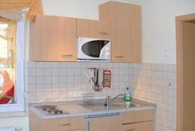 2005 neu eingerichtet, Erdgeschoss, 35 m², für 2 EW + 2 Kinder, Wohnzimmer mit Eckcouch, Couchtisch, Fernsehschrank und Sat-TV, integrierte Küchenzeile mit 2-Plattenkochfeld, Microwelle, Spüle, Kühlschrank mit Gefrierfach, Toaster, Wasserkocher, Kaffeemaschine Schlafzimmer mit Doppelbett und 2 Einzelbetten, Badezimmer mit Dusche und WC. Sitzmöglichkeit mit Gartenmöbeln zum abendlichen Entspannen im Garten