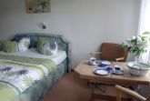 2005 neu eingerichtet, Erdgeschoss, 30 m², ruhige Lage, für 2 Erwachsene, kombiniertes Wohn-Schlafzimmer mit 2 Sesseln, Couchtisch, kleine Schrankwand mit Sat-TV und Doppelbett. Komplette Küchenzeile mit Wasserkocher, Toaster, Kaffeemaschine, Microwelle. Badezimmer mit Dusche und WC. Die Wohnung verfügt über eine Terrasse mit Sitzmöbeln sowie über eine Sitzgelegenheit mit Gartenmöbeln auf dem Grundstück.