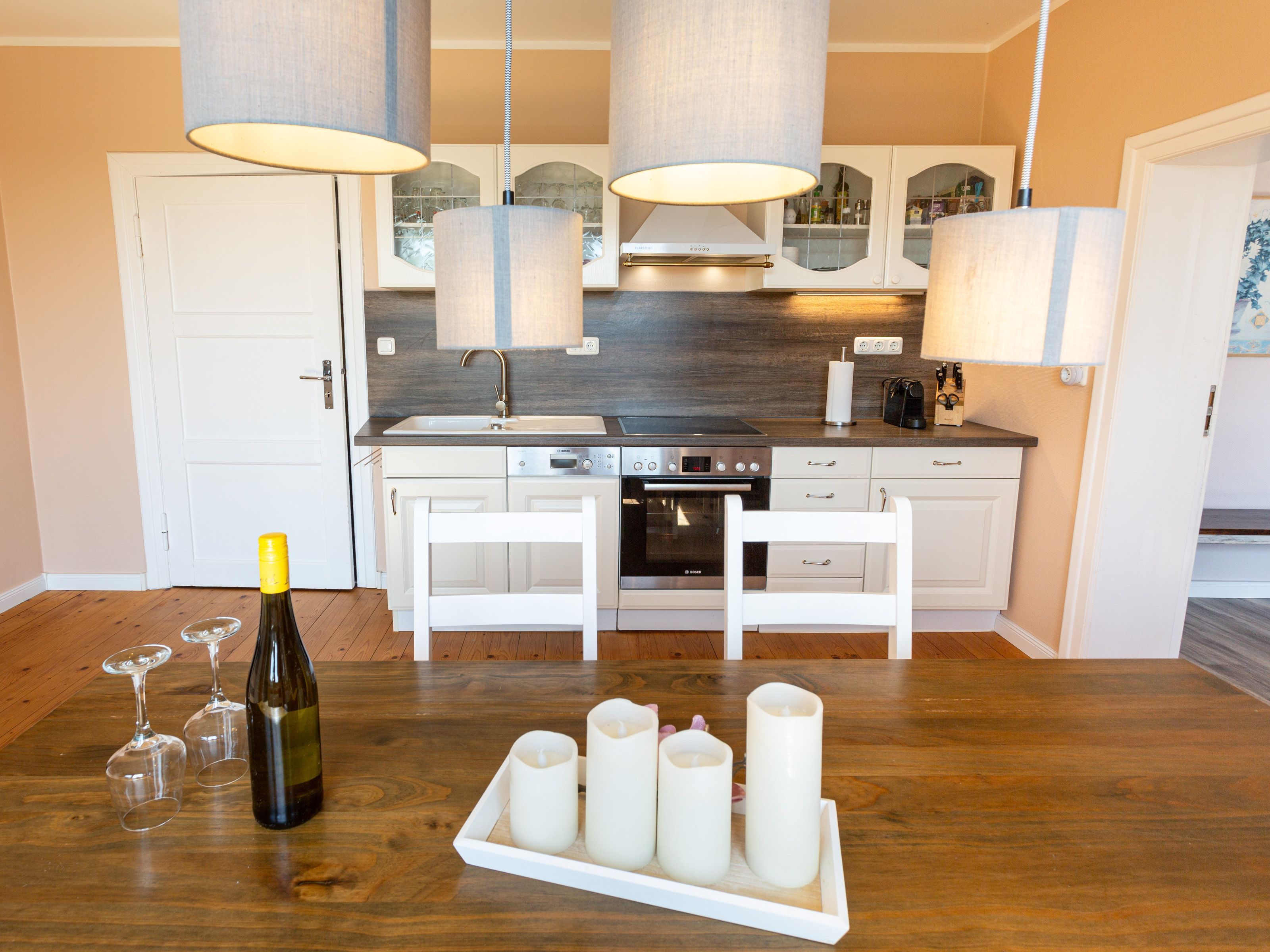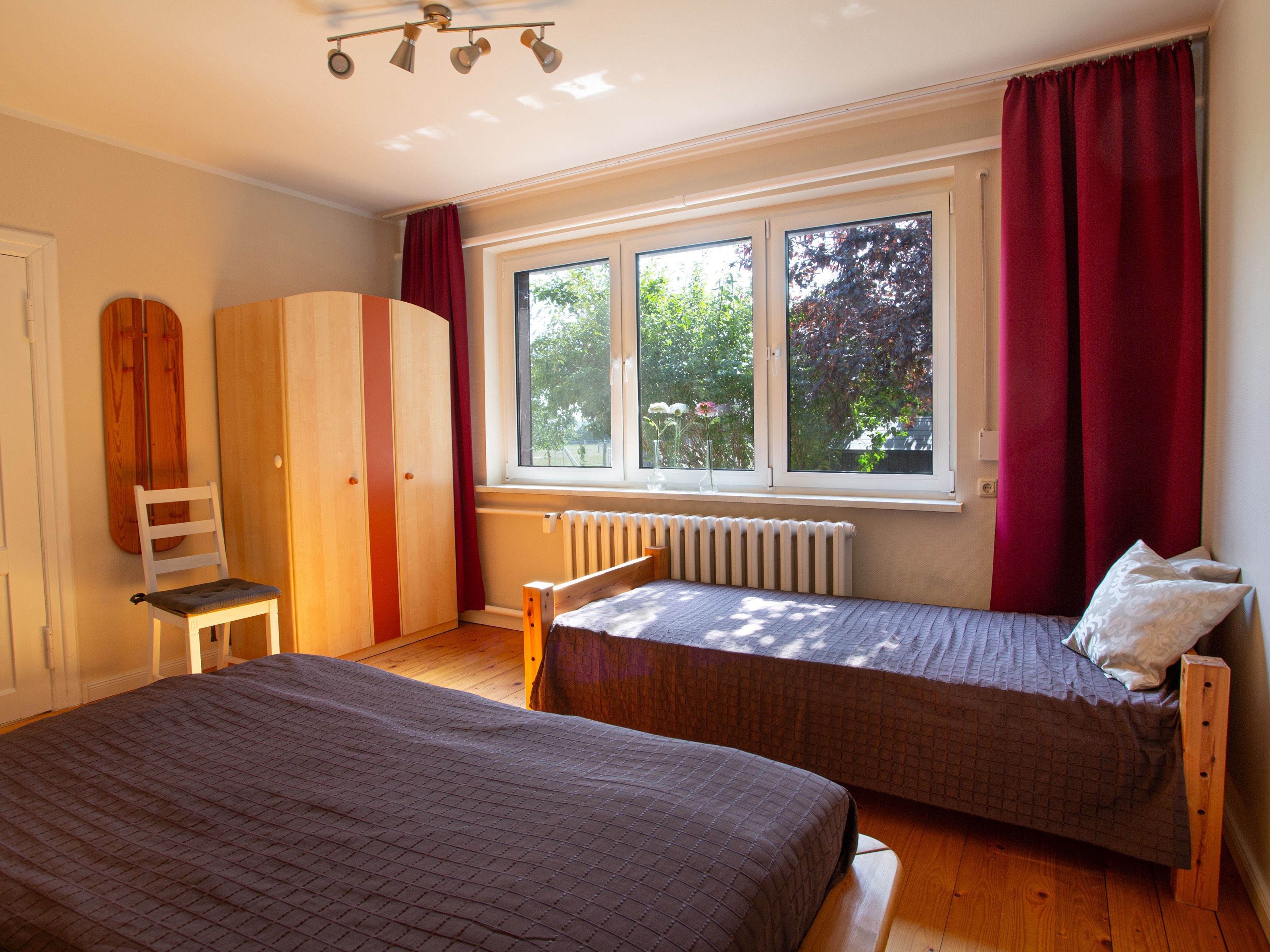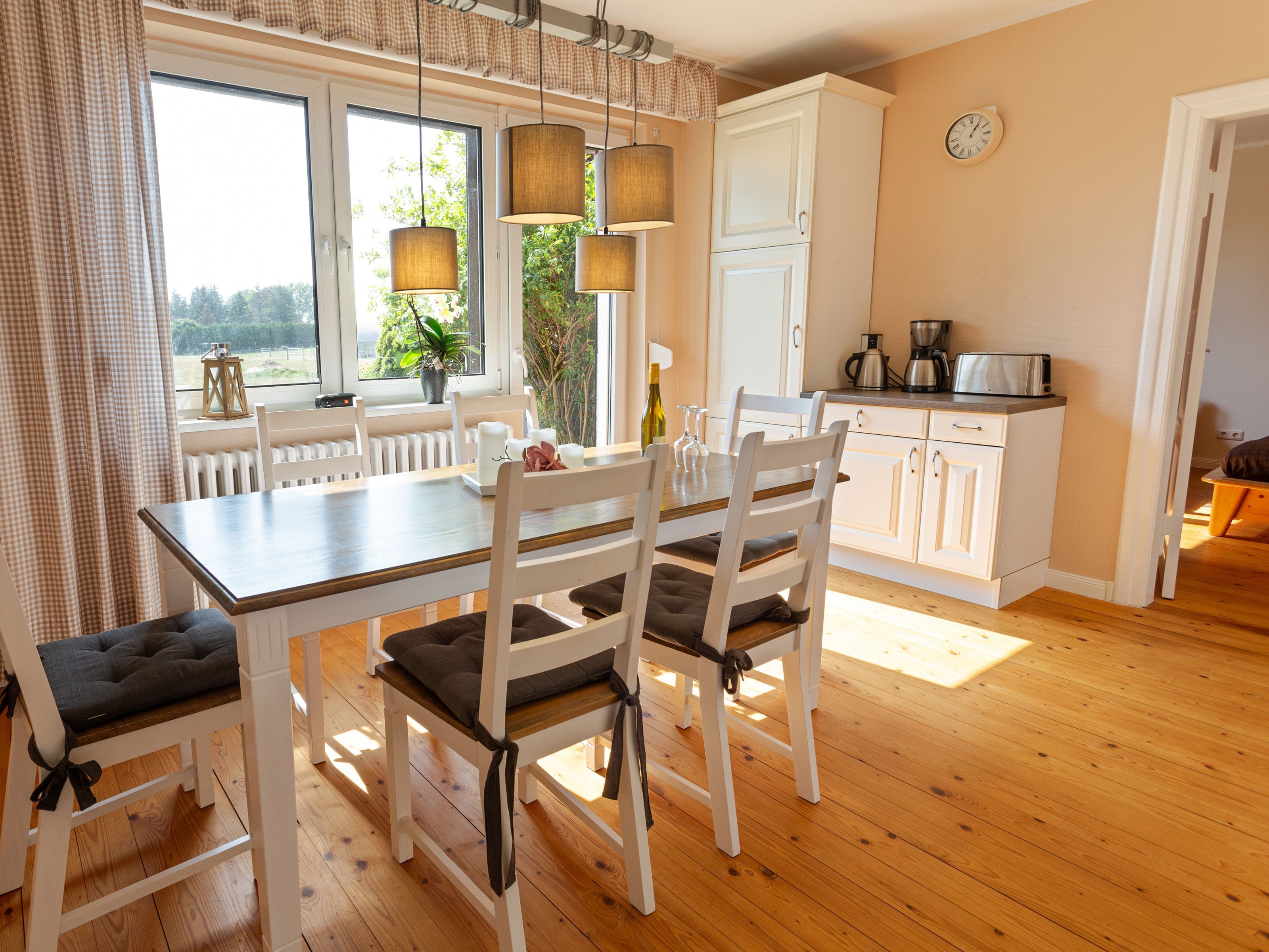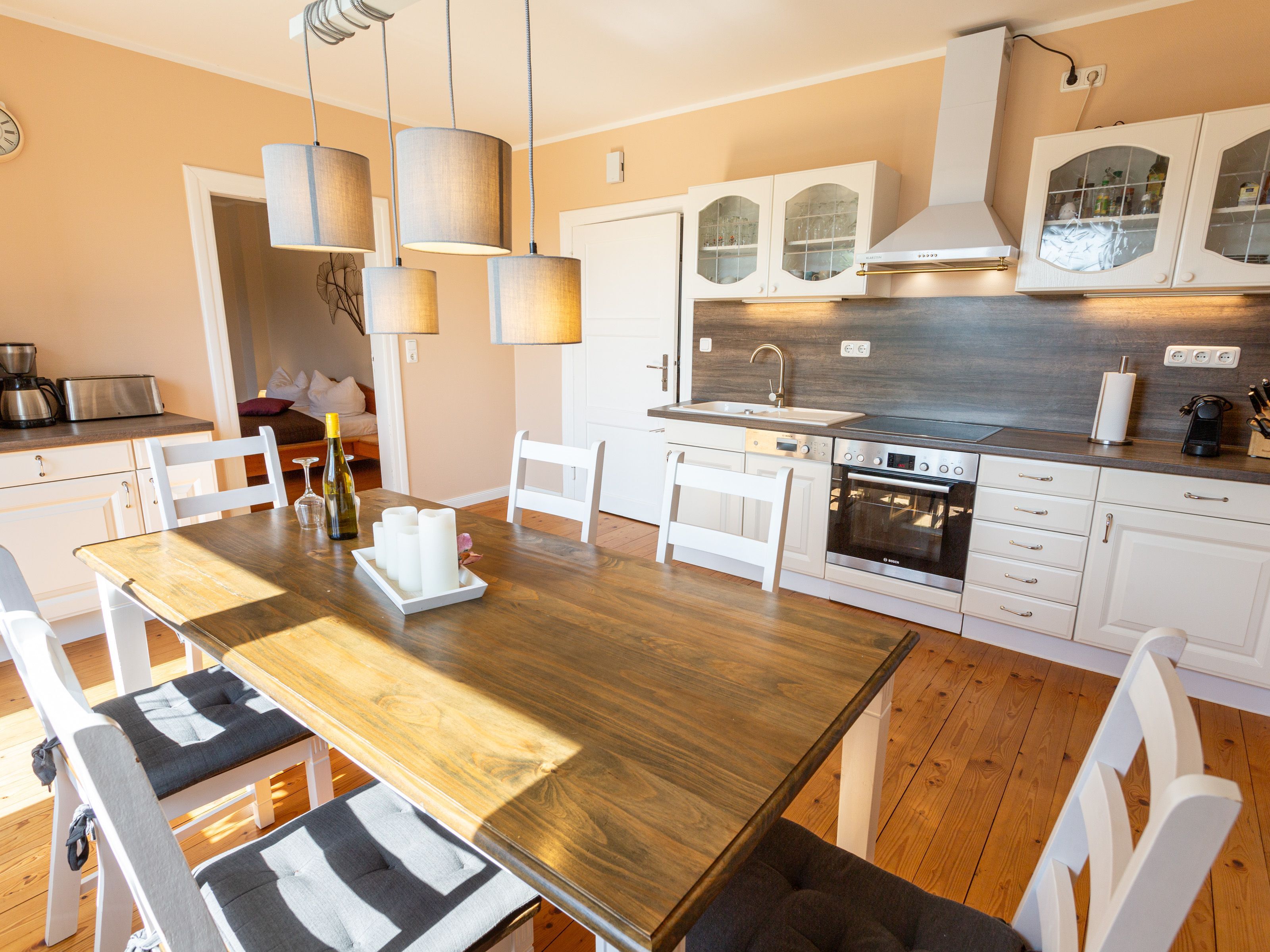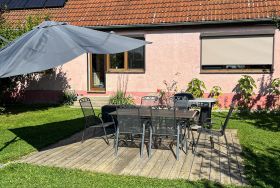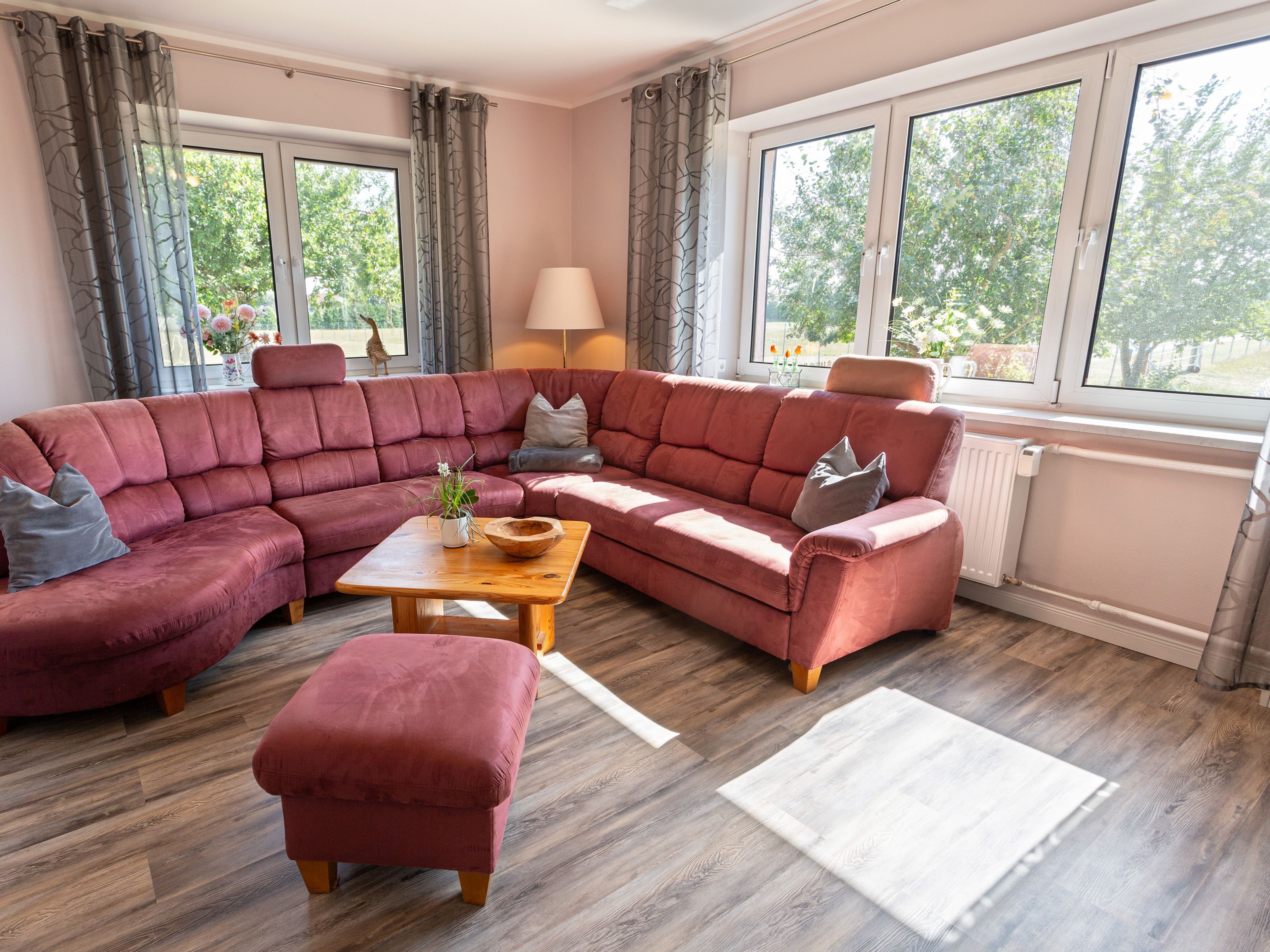 In dem Bauernhaus auf dem Alpaka-Hof in Rubkow, zwischen Anklam und Wolgast, erwartet Sie eine fast ebenerdige 85 m² große Wohnung mit 3 Zimmern, Küche und Bad. Diese wurde neu ausgebaut, gemütlich eingerichtet und befindet sich auf einer Etage. Durch einen separaten Eingang gelangen Sie über einen kleinen Flur in eine moderne Küche mit großem Esstisch für bis zu 8 Personen. Von da aus empfängt Sie ein gemütlicher Wohnbereich mit bequemen Polstermöbeln (mögliche Aufbettung für 2 Personen) und Sat-TV. Es stehen Ihnen zwei separate Schlafzimmer mit je einem Doppel- und einem weiteren Einzelbett zur Verfügung. Ein geräumiges modernes Bad mit bodenebener großer Dusche, Waschtisch und WC rundet den Komfort ab. Von der voll ausgestatteten Küche geht es in Ihren eigenen Garten mit Ausblick auf die Alpakas. Im Garten befindet sich eine sonnengeschützte Sitzgruppe und ein Holzkohlegrill.