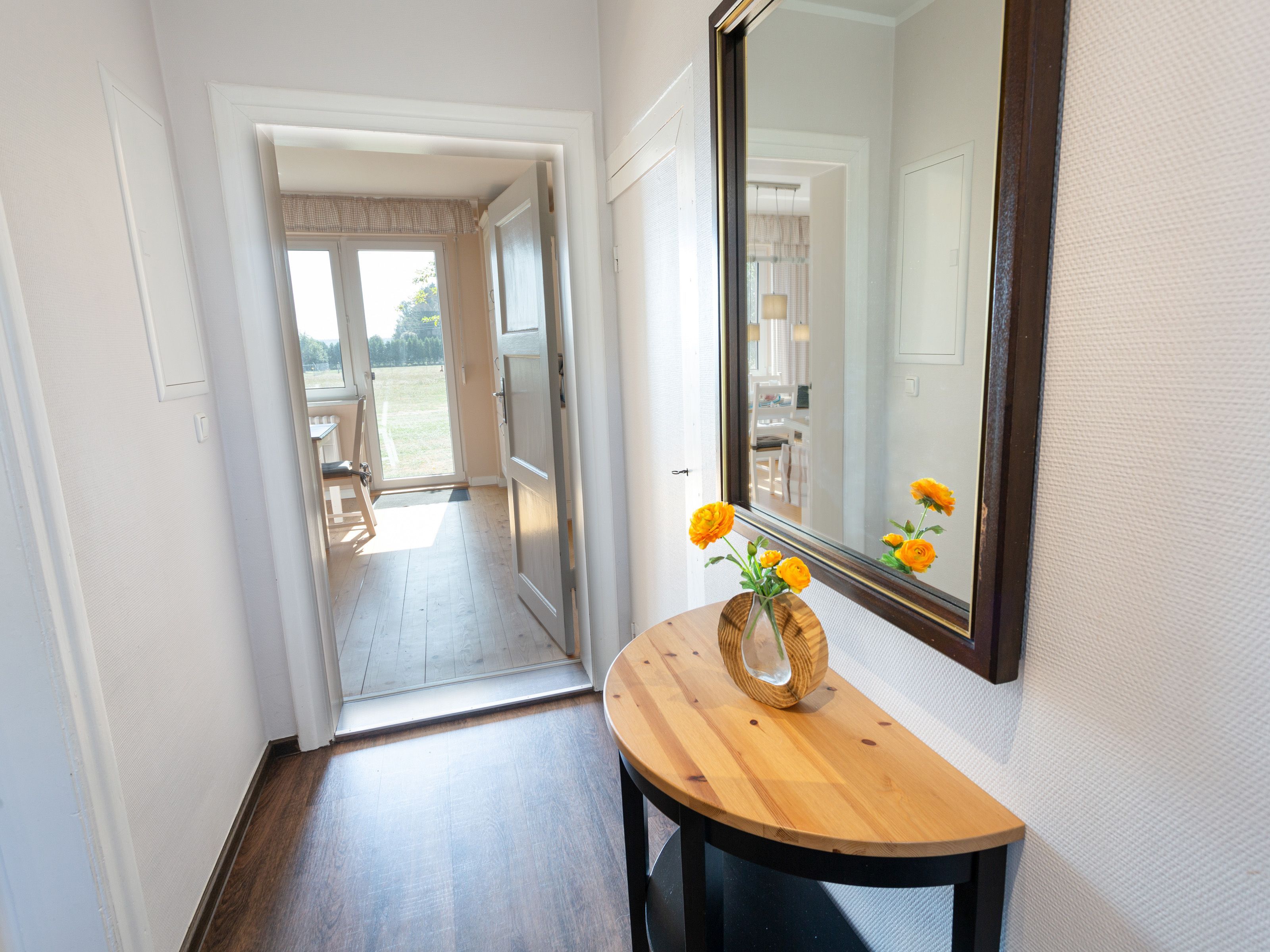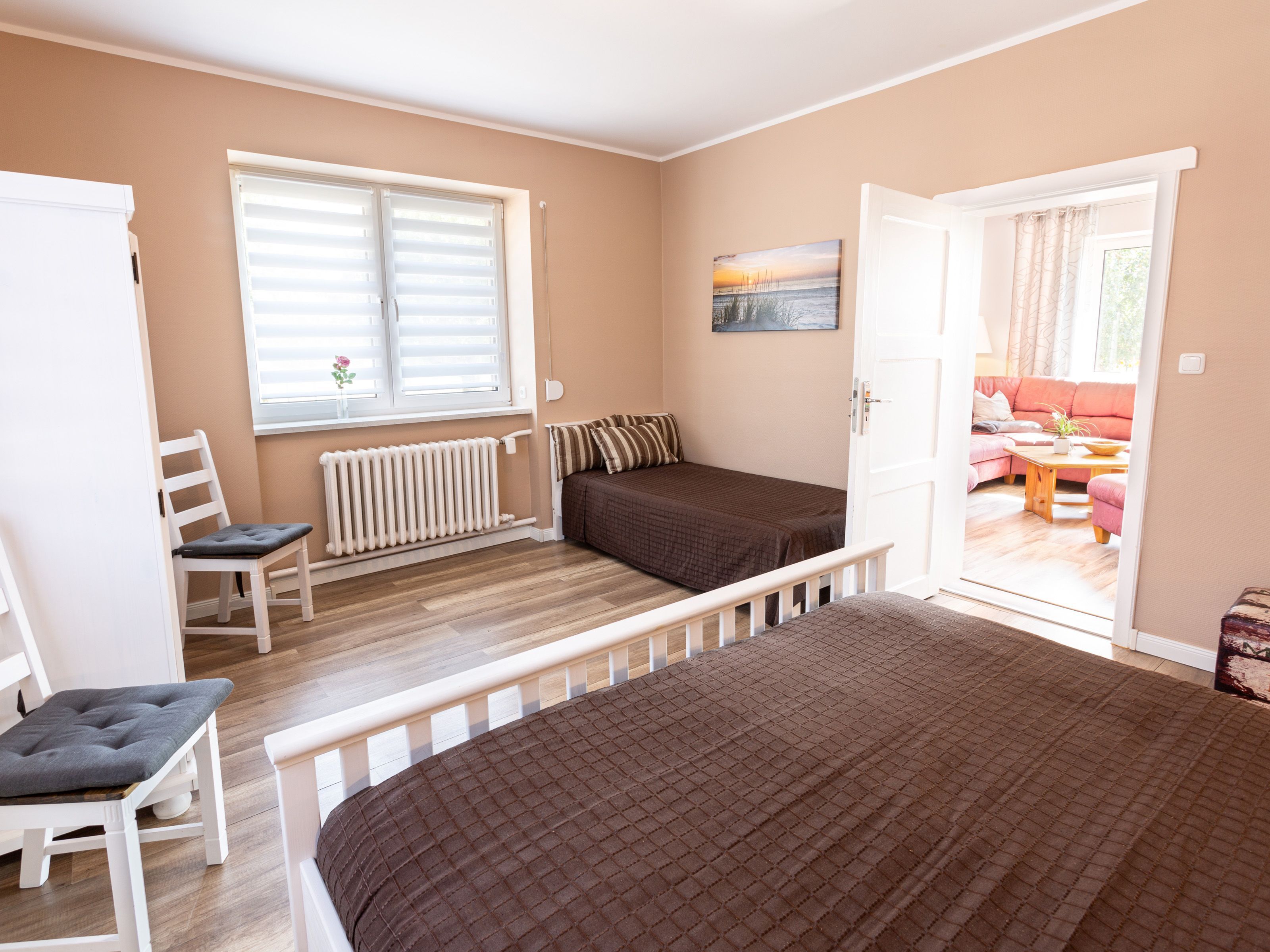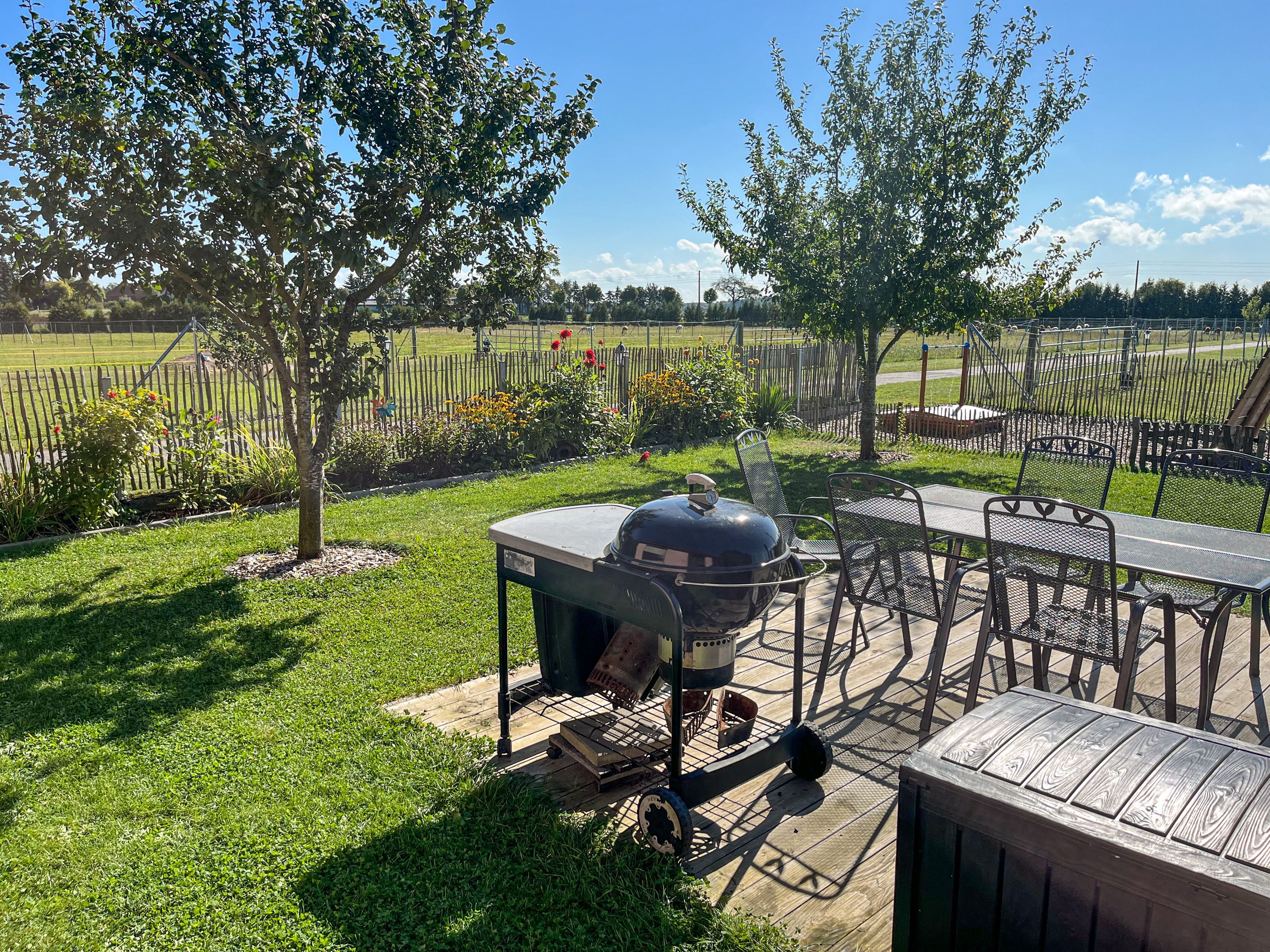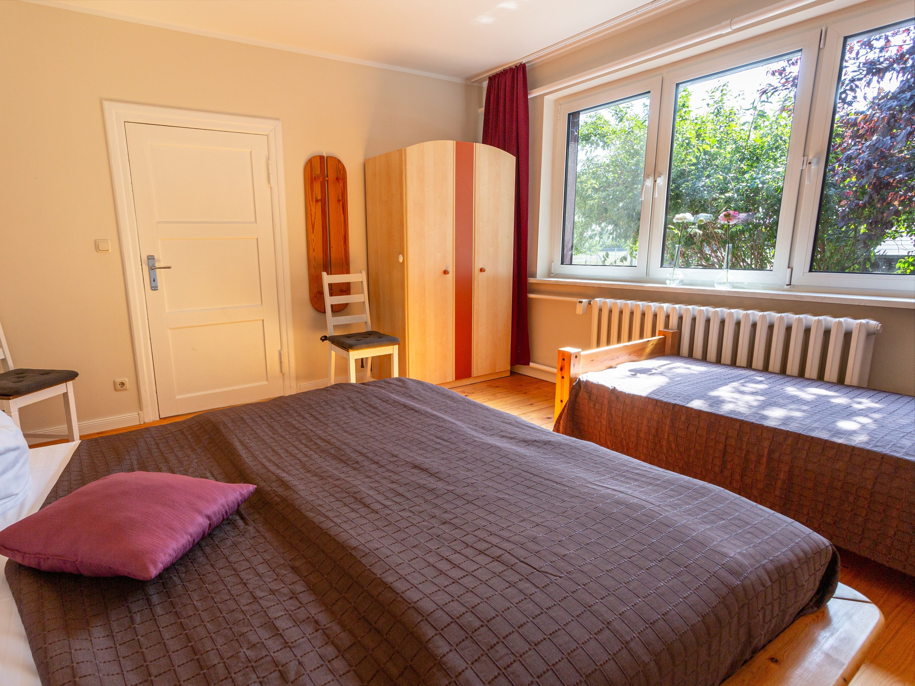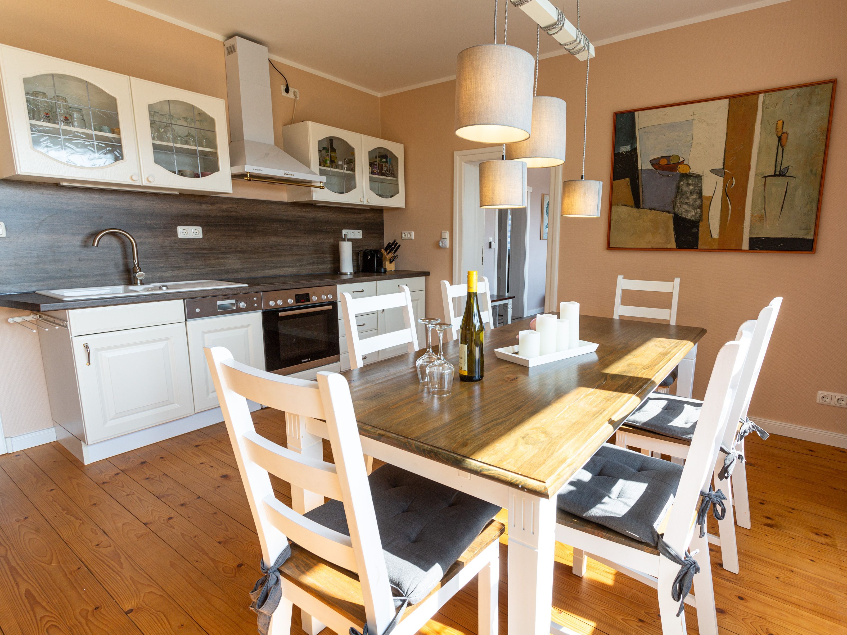 In dem Bauernhaus auf dem Alpaka-Hof in Rubkow, zwischen Anklam und Wolgast, erwartet Sie eine fast ebenerdige 85 m² große Wohnung mit 3 Zimmern, Küche und Bad. Diese wurde neu ausgebaut, gemütlich eingerichtet und befindet sich auf einer Etage. Durch einen separaten Eingang gelangen Sie über einen kleinen Flur in eine moderne Küche mit großem Esstisch für bis zu 8 Personen. Von da aus empfängt Sie ein gemütlicher Wohnbereich mit bequemen Polstermöbeln (mögliche Aufbettung für 2 Personen) und Sat-TV. Es stehen Ihnen zwei separate Schlafzimmer mit je einem Doppel- und einem weiteren Einzelbett zur Verfügung. Ein geräumiges modernes Bad mit bodenebener großer Dusche, Waschtisch und WC rundet den Komfort ab. Von der voll ausgestatteten Küche geht es in Ihren eigenen Garten mit Ausblick auf die Alpakas. Im Garten befindet sich eine sonnengeschützte Sitzgruppe und ein Holzkohlegrill.