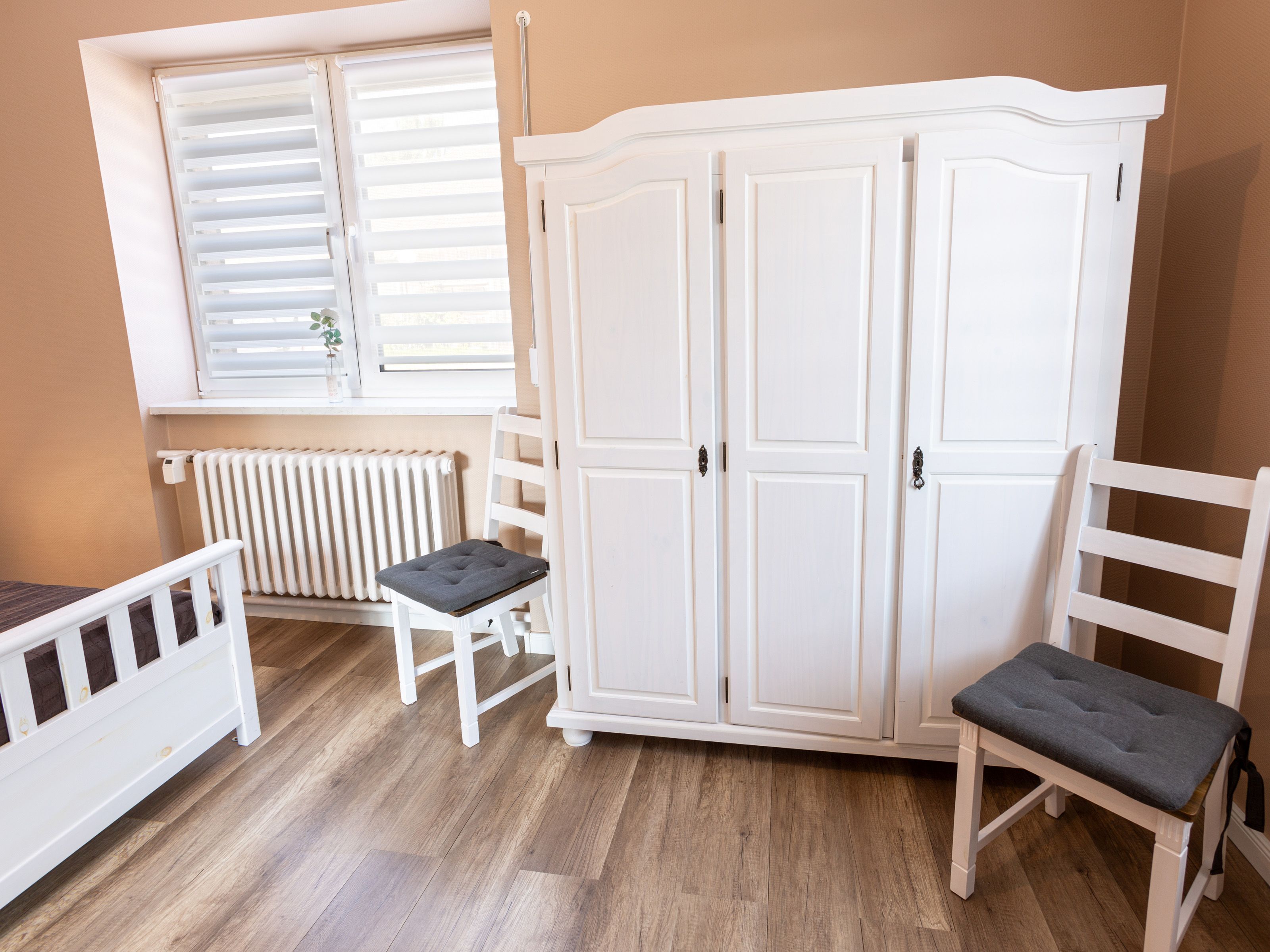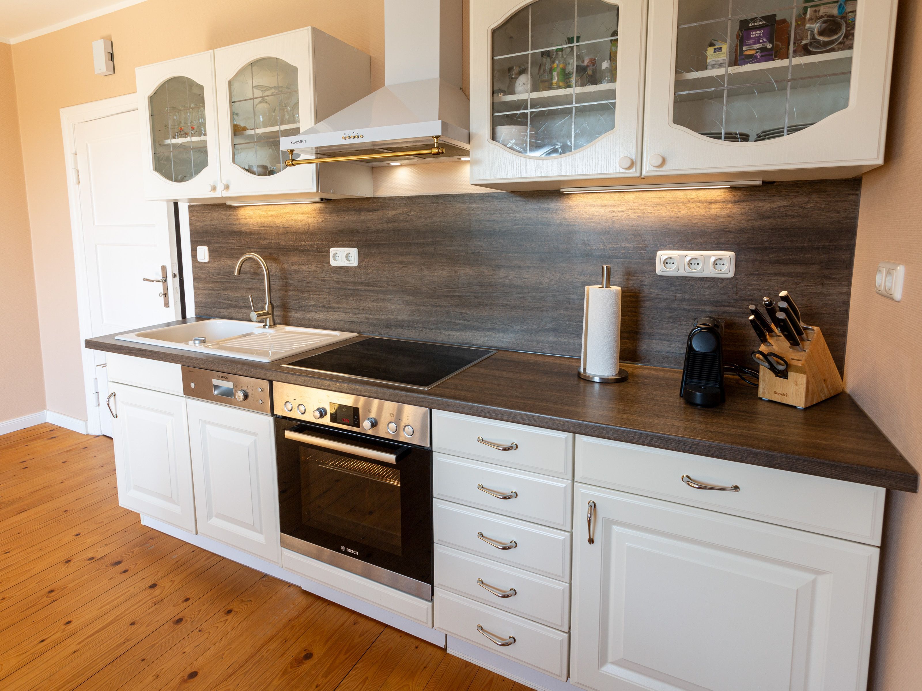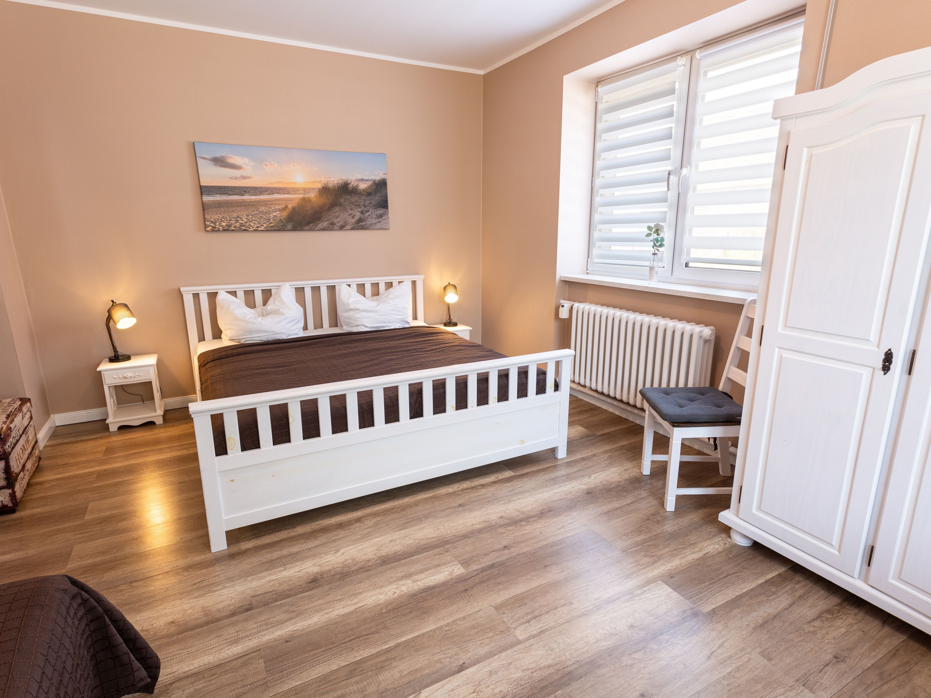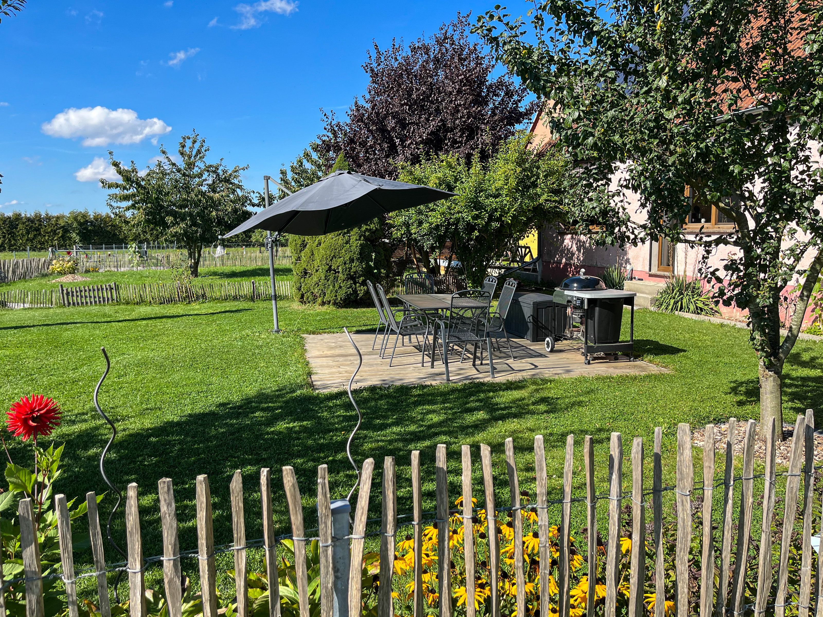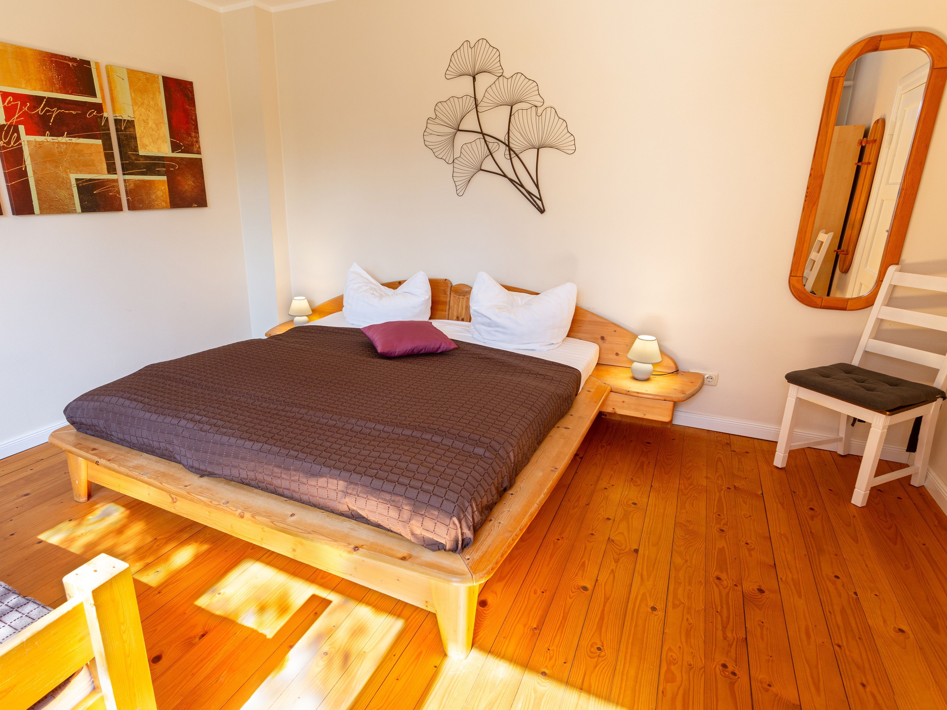 In dem Bauernhaus auf dem Alpaka-Hof in Rubkow, zwischen Anklam und Wolgast, erwartet Sie eine fast ebenerdige 85 m² große Wohnung mit 3 Zimmern, Küche und Bad. Diese wurde neu ausgebaut, gemütlich eingerichtet und befindet sich auf einer Etage. Durch einen separaten Eingang gelangen Sie über einen kleinen Flur in eine moderne Küche mit großem Esstisch für bis zu 8 Personen. Von da aus empfängt Sie ein gemütlicher Wohnbereich mit bequemen Polstermöbeln (mögliche Aufbettung für 2 Personen) und Sat-TV. Es stehen Ihnen zwei separate Schlafzimmer mit je einem Doppel- und einem weiteren Einzelbett zur Verfügung. Ein geräumiges modernes Bad mit bodenebener großer Dusche, Waschtisch und WC rundet den Komfort ab. Von der voll ausgestatteten Küche geht es in Ihren eigenen Garten mit Ausblick auf die Alpakas. Im Garten befindet sich eine sonnengeschützte Sitzgruppe und ein Holzkohlegrill.