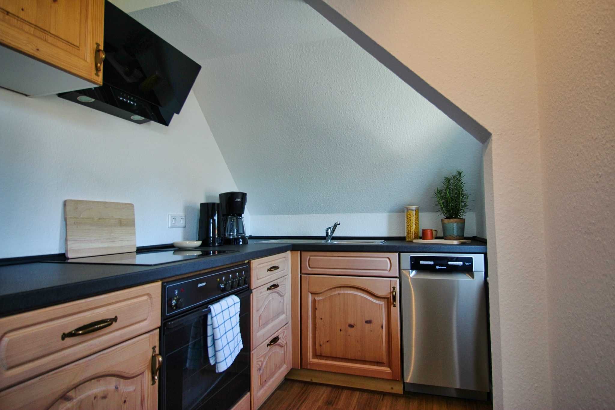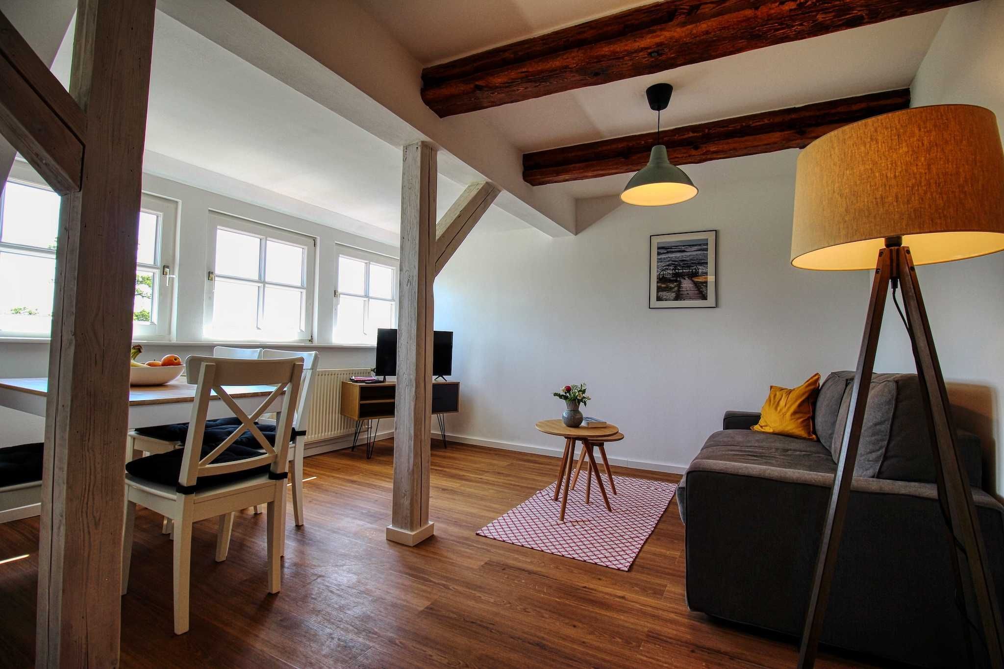 Die kleine Giebelwohnung liegt im Dachgeschoss des Ferienhauses Makrele und versprüht einen ganz