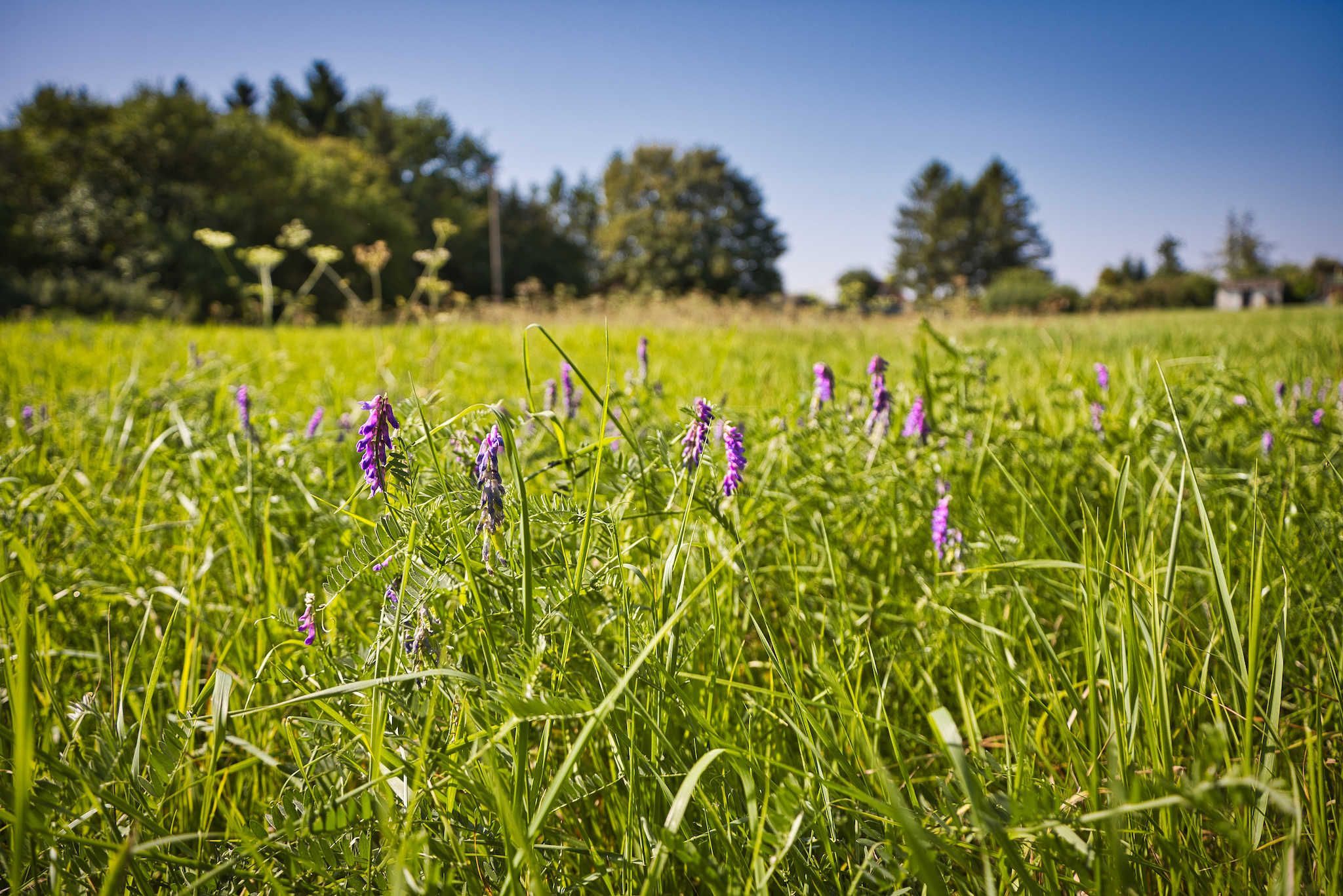Apfelbäumen entlang, setz Dich mit Deinem Kaffee in die Sonne. Oder lass