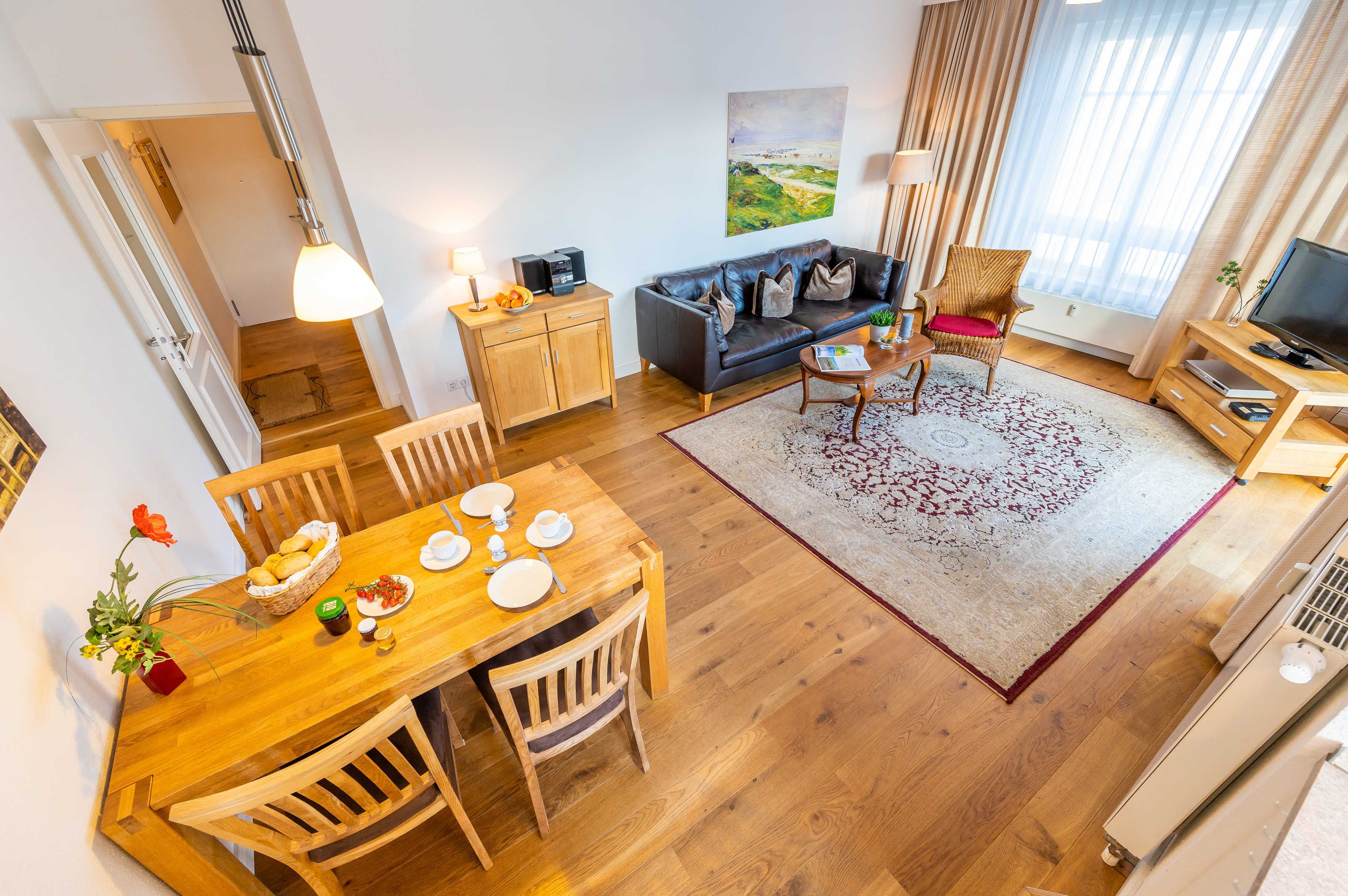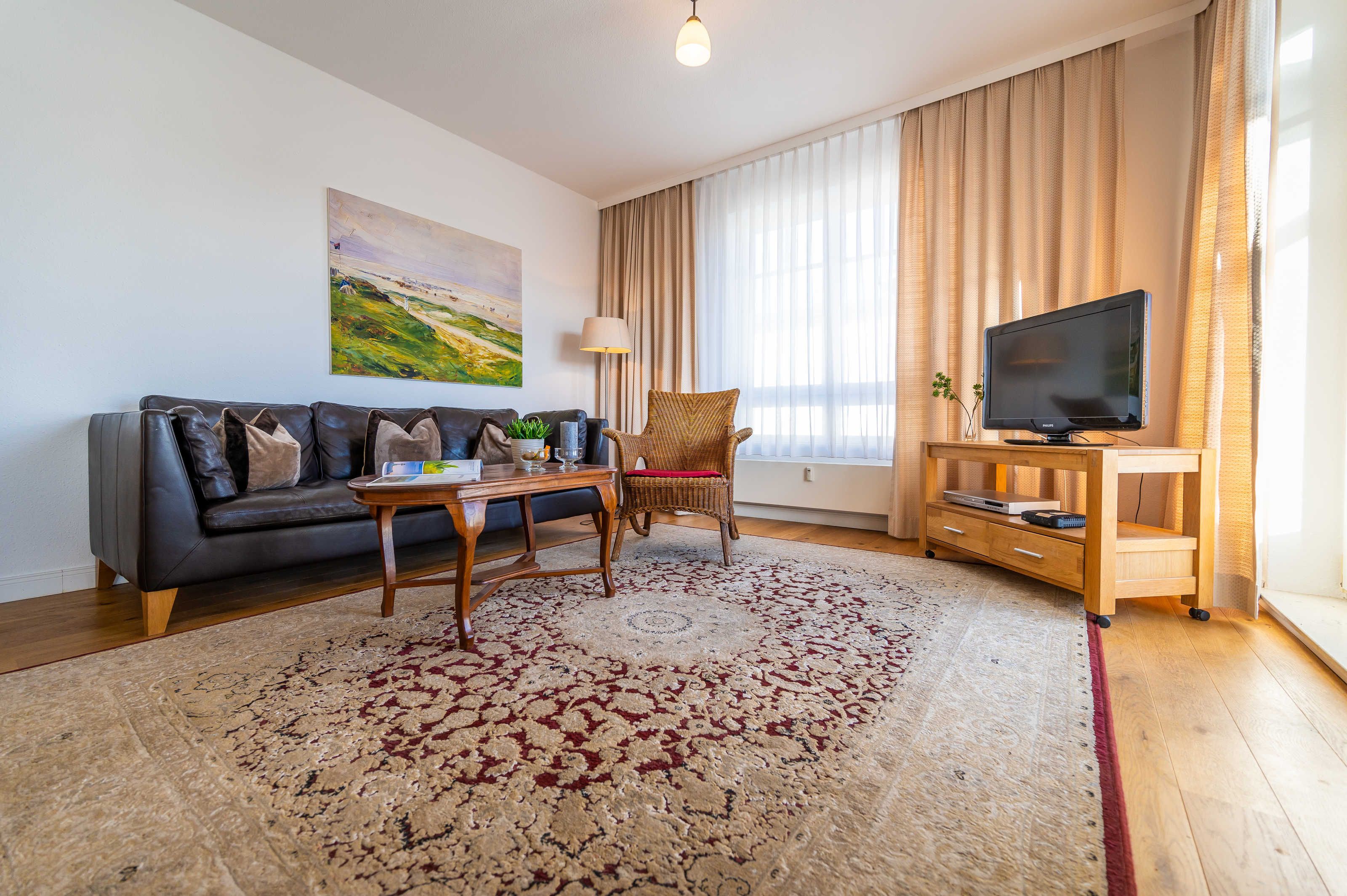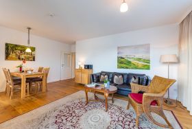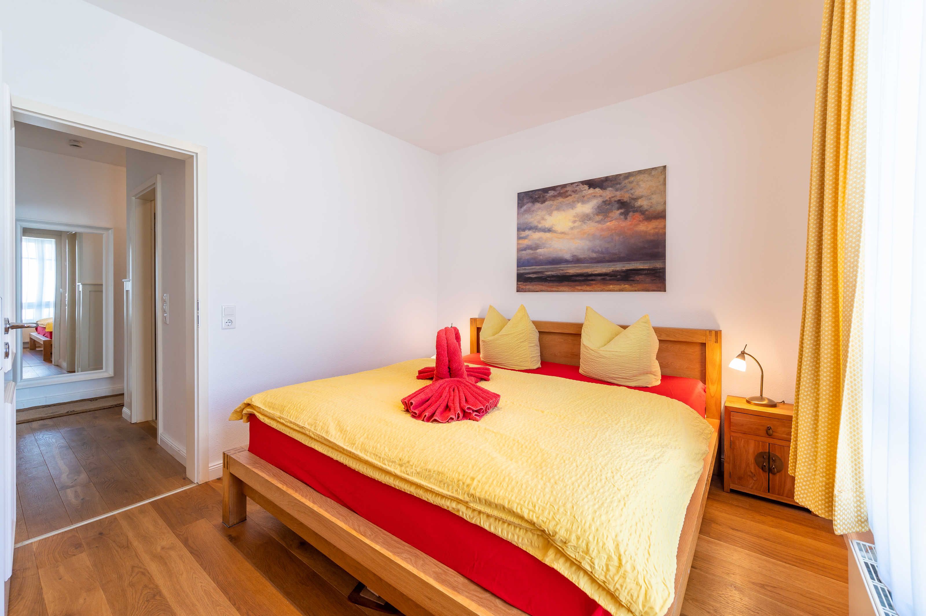 Strandnahes 2-Raum-Appartement im 2. OG gelegen und bis 3 Personen belegbar. Sehr geschmackvoll eingerichtet mit allem Komfort, wie gut ausgestattete Küchenzeile mit Mikrowelle, Geschirrspüler, Ceran-Kochfeld, Backofen offen zum Wohnbereich. Schlafzimmer mit Bett (durchgehende Matratze) und Schrank. Badezimmer mit Dusche und WC. Liebevoll eingerichteter Wohnraum mit Ledercouch , TV, Radio und W-LAN . Angrenzender möblierter Balkon mit seitlichen Meerblick. Dieses Appartement zeichnet sich durch besondere Helligkeit ( große Fensterfront ) aus. Münzwaschmaschine und Münztrockner im Haus.1 PKW-Stellplatz sowie Abstellmöglichkeit für Fahrräder stehen auf dem Grundstück zur Verfügung.