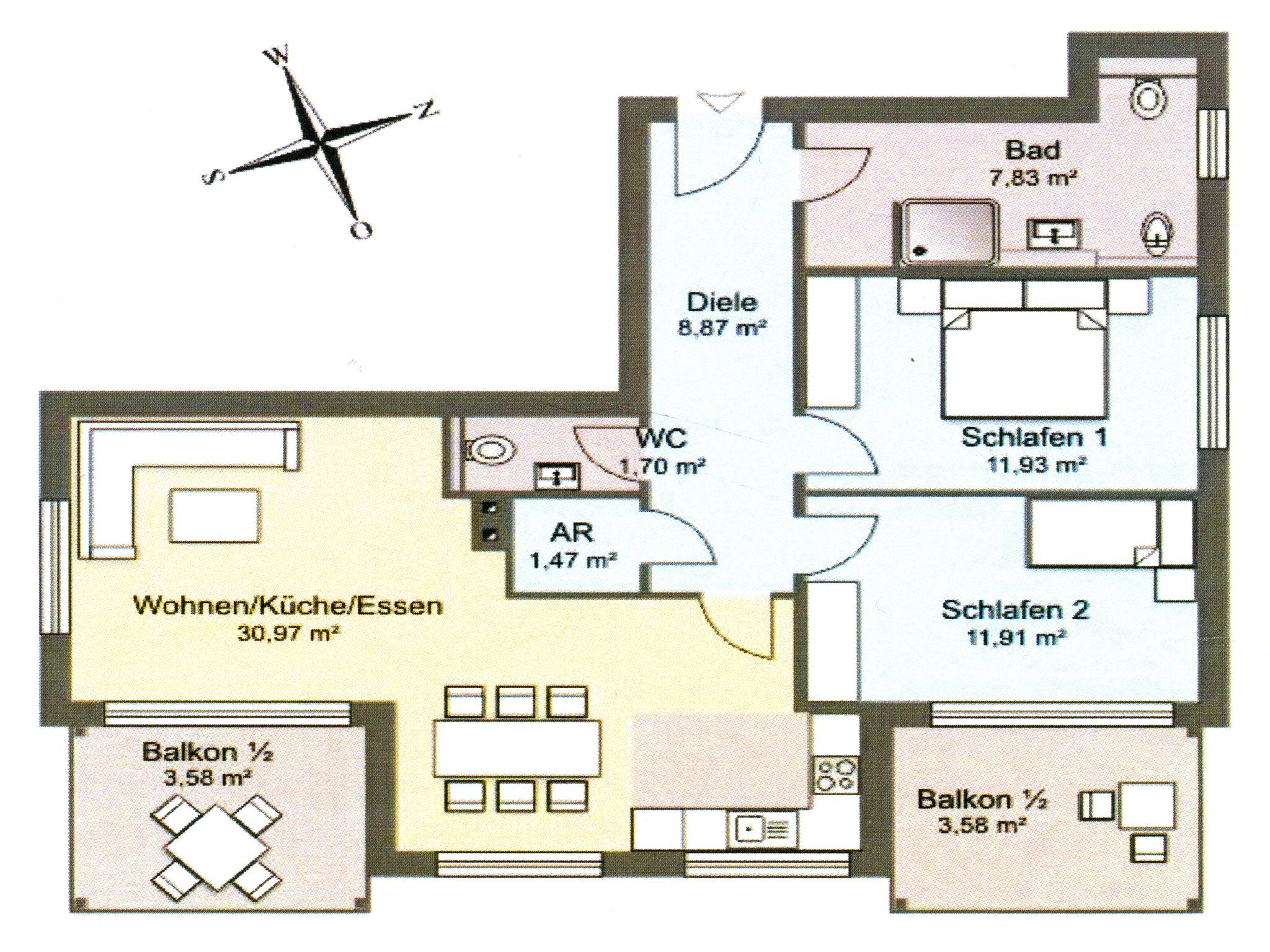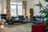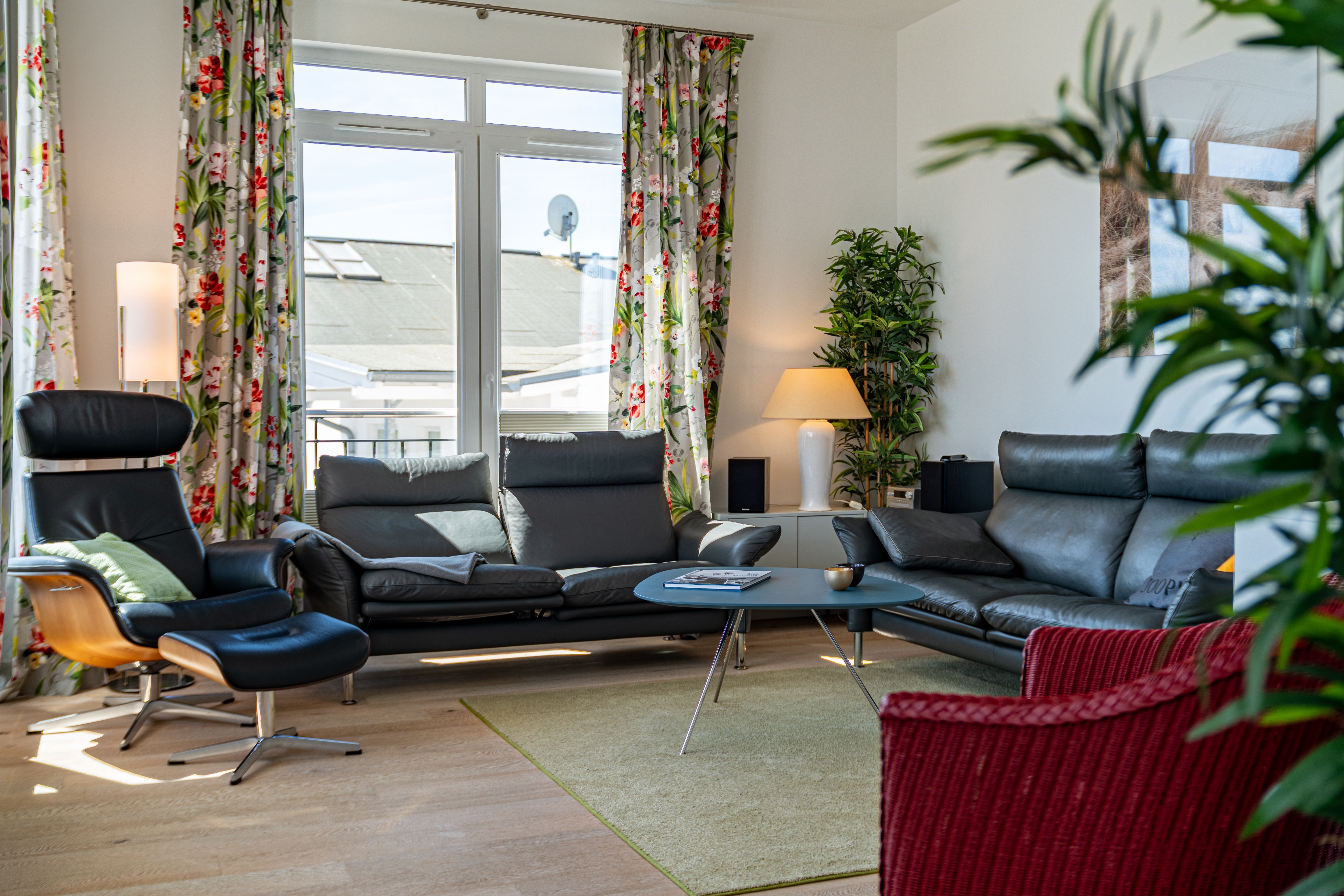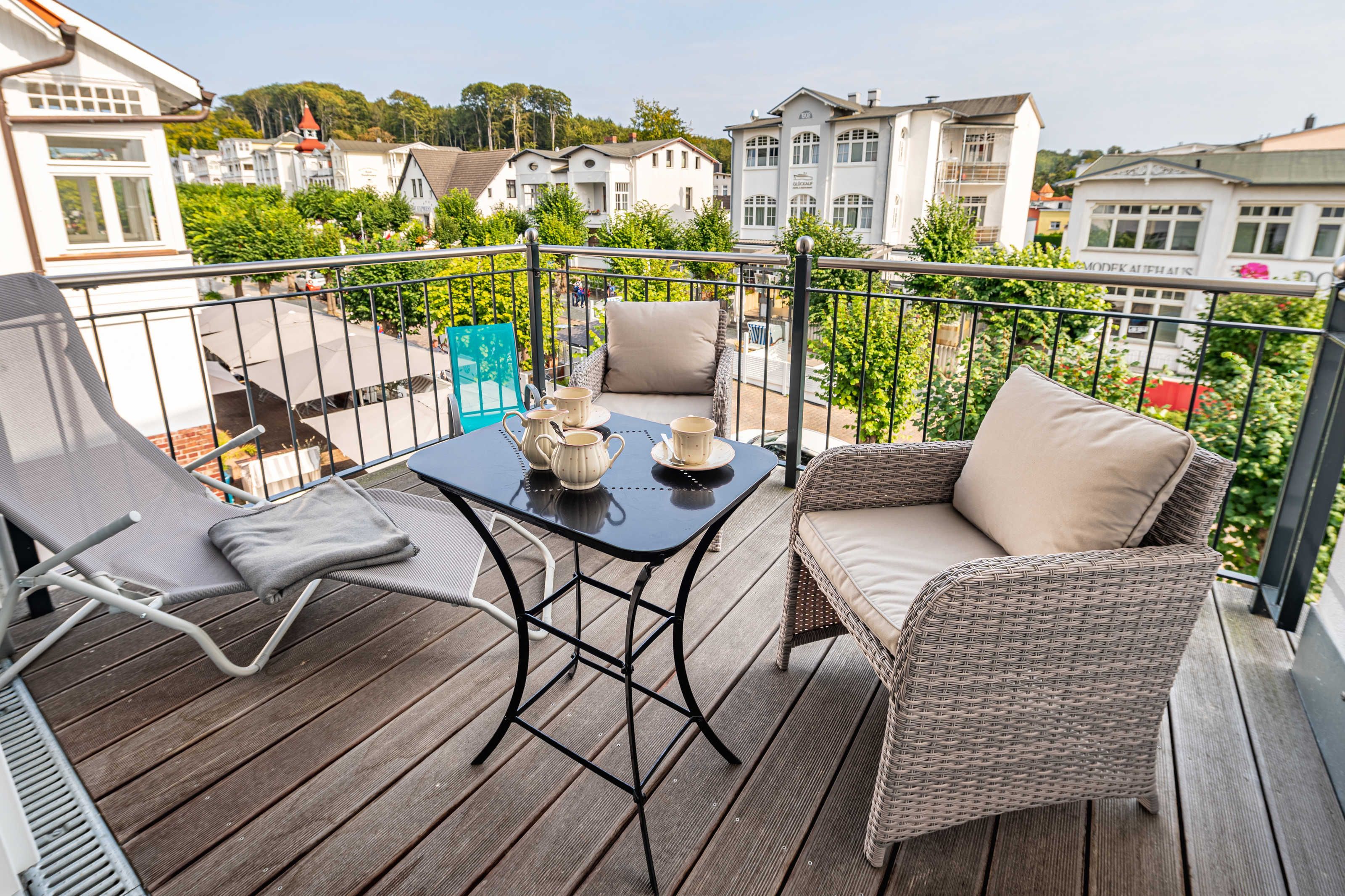 Seit 2016 erwarten Sie im Appartement WILHELMINE auf rund 79 m² Wohnfläche für max. 2 bis 3 Erwachsene + 1 Kleinkind bis 3 Jahre im Kinderreisebett, nicht nur drei liebevoll eingerichtete Zimmer, sondern gleich zwei möblierte Balkone mit herrlichem Blick auf die Linden-gesäumte Wilhelmstraße sowie auf das Hügelland rund um den Selliner See. Die modern und stilvoll eingerichtete Nichtraucher-Ferienwohnung überzeugt durch ihre klare Aufteilung sowie helles und hochwertiges Mobiliar. Im Wohnbereich laden 2 elegante Ledersofas, eine Leselampe, ein Couchtisch, ein Leder-Loungesessel mit Fußhocker zum Entspannen ein, während man ein gutes Buch liest oder einfach nur die Ruhe des Urlaubs genießt. Eine kleine Auswahl an Lektüre steht Ihnen zur Verfügung. Ein 48-Zoll-Smart-TV, Blu-Ray Player eine Mini-Stereoanlage mit CD-Player sowie kostenfreies WLAN sorgen für Unterhaltung. Die angrenzende Küchenzeile, ausgestattet mit Cerankochfeld, Backofen, Kühlschrank mit Gefrierfach, Spülmaschine, Kaffeemaschine, Espressokocher, Toaster, Wasserkocher sowie umfangreiche Küchenutensilien, macht Lust mal wieder den eigenen Kochkünsten freien Lauf zulassen. Ein großer Esstisch ergänzt die Ausstattung. Das 1. Schlafzimmer ist mit einem Hülsta Boxspringbett (1,80m x 2,00m), einem Kleiderschrank, Nachttischablagen und einem TV-Gerät ausgestattet. Das 2. Schlafzimmer verfügt über ein Boxspringbett (1,20m x 2,00m), einen Kleiderschrank, und einen Sessel mit Tisch. Auch ein Kinderreisebett kann hier auf Anfrage dazu gestellt werden. Für einen angenehmen Schlafkomfort sorgen in beiden Schlafzimmern Gesundheitsmatratzen (Härtegrad 3/hart), Plissees sowie Verdunklungsgardinen. Das Tageslicht-Bad bietet Ihnen eine Dusche mit Rainshower, ein Bidet, ein Kosmetikspiegel, ein WC, eine Handtuchheizung, einen Fön sowie einen Waschtisch mit beleuchtetem Spiegel. Zusätzlich rundet ein separates Gäste-WC die Wohnungsausstattung ab. Um den einmaligen Blick auf die historischen Häuser und Lindenbäume zu genießen gelangen Sie einmal vom Wohnbereich und vom kleineren Schlafzimmer auf die bestuhlten Balkone (NO & SO). Hier können Sie in Ruhe den Tag ausklingen lassen. Ein in der Wohnung befindender Abstellraum hält Staubsauger, Wäscheständer, Bügelbrett und eisen, Reinigungsutensilien sowie Sitzkissen für die Balkonmöbel bereit. Für unsere kleinen Gäste steht ein Hochstuhl sowie ein Kinderreisebett (ohne Zusatz Matratze) zur Verfügung. Unter dem hellen Echtholzparkett verbirgt sich eine flächendeckende Fußbodenheizung, die ganzjährig für ein angenehmes Raumklima sorgt. Im geräumigen, abschließbaren Gemeinschafts-Fahrradkeller sind Ihre Räder sicher untergebracht. Ein Fahrstuhl bringt Sie in das 2. Obergeschoss. Haustiere sind nicht erlaubt. Ein PKW-Stellplatz (Nr.08) befindet sich direkt hinter dem Haus, welcher mittels einer Schranke gesichert ist. Die Erstausstattung eines Wäschepaketes (komplette Bettwäsche, 1 Duschhandtuch, 2 kleine Handtücher) können Sie bis 14 Tage vor Anreise gegen einen Aufpreis dazu buchen oder durch eigene ergänzen. Ab 2 gebuchten Paketen erhalten Sie einmalig 1 Geschirrhandtuch und 1 Duschvorleger hinzu.