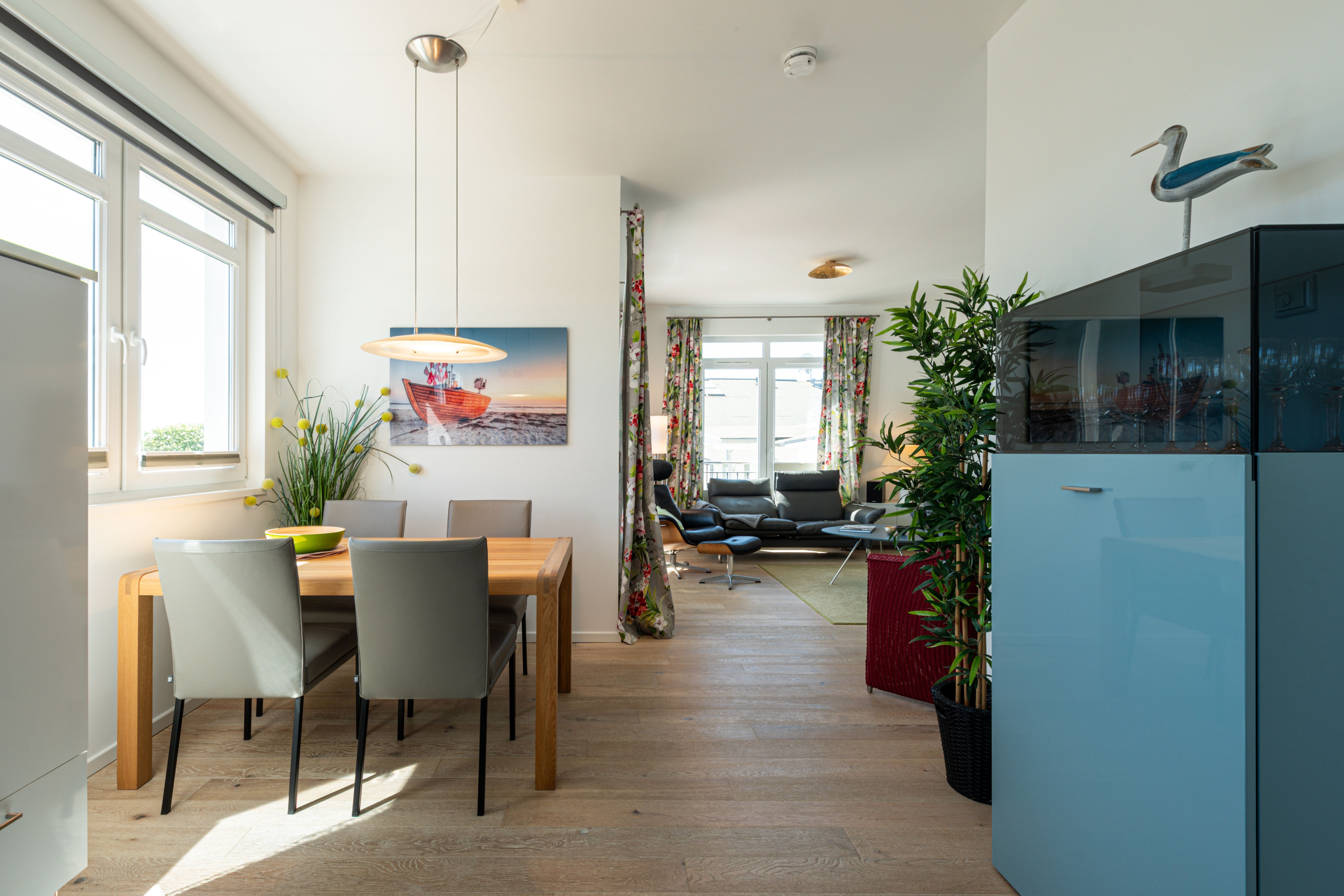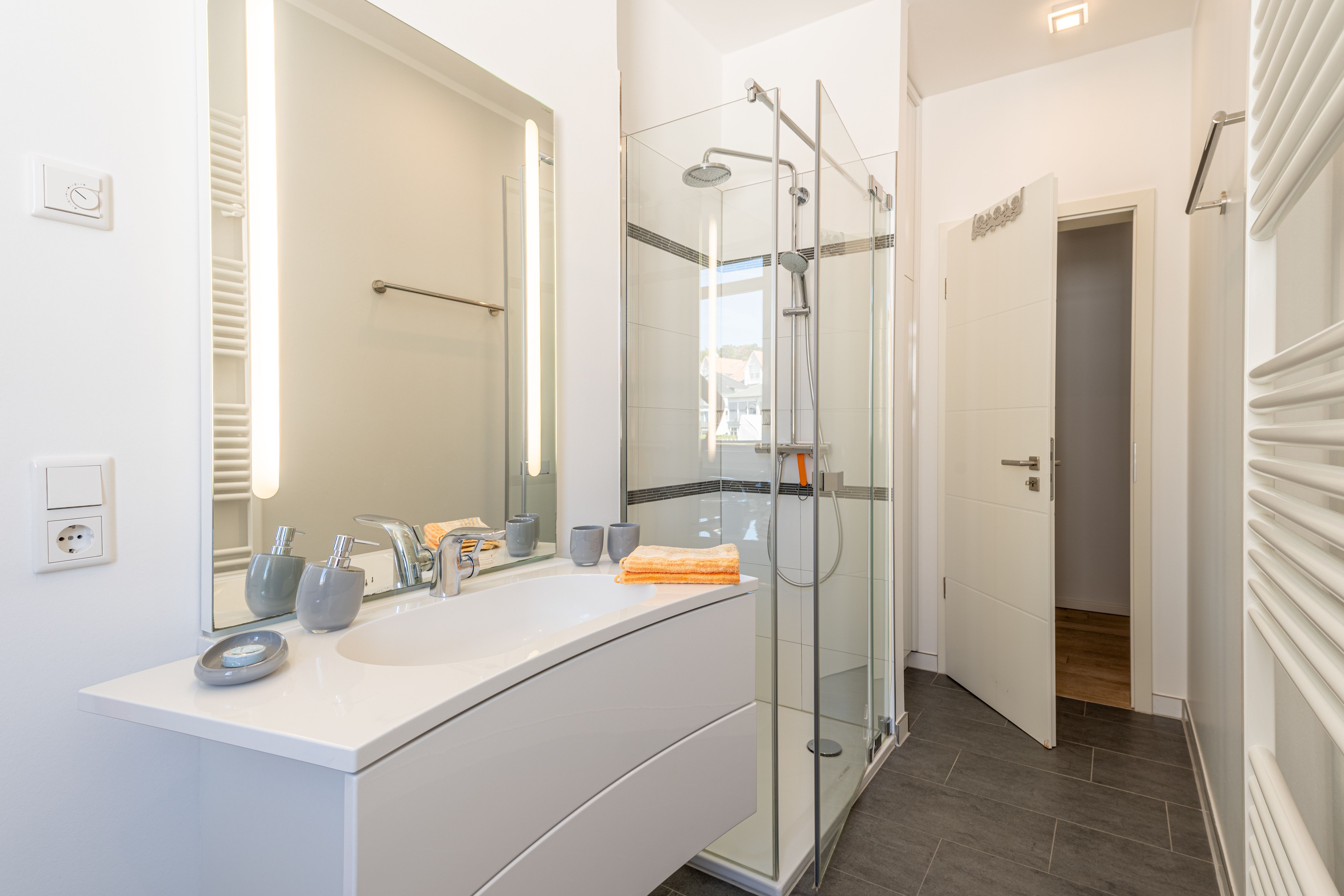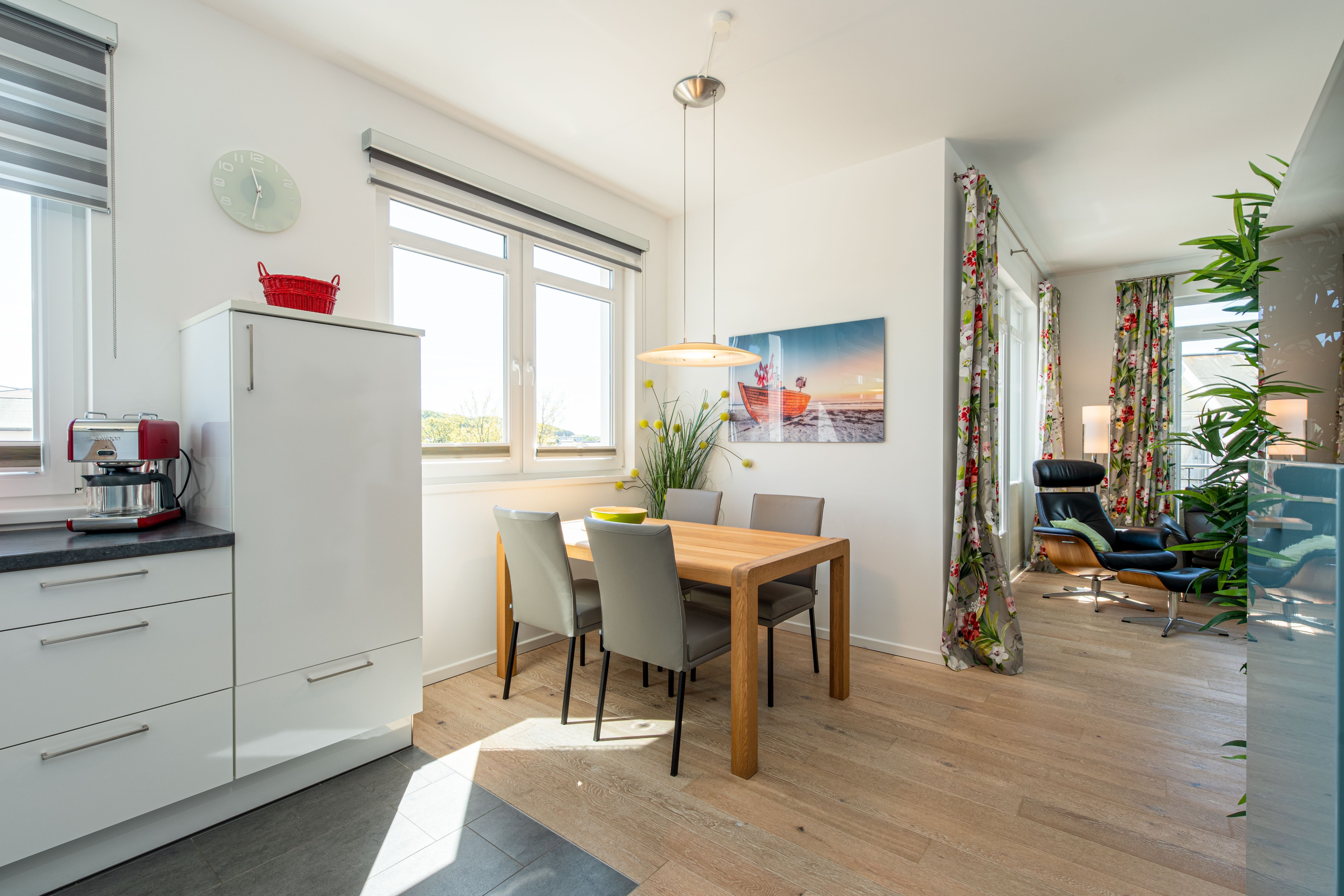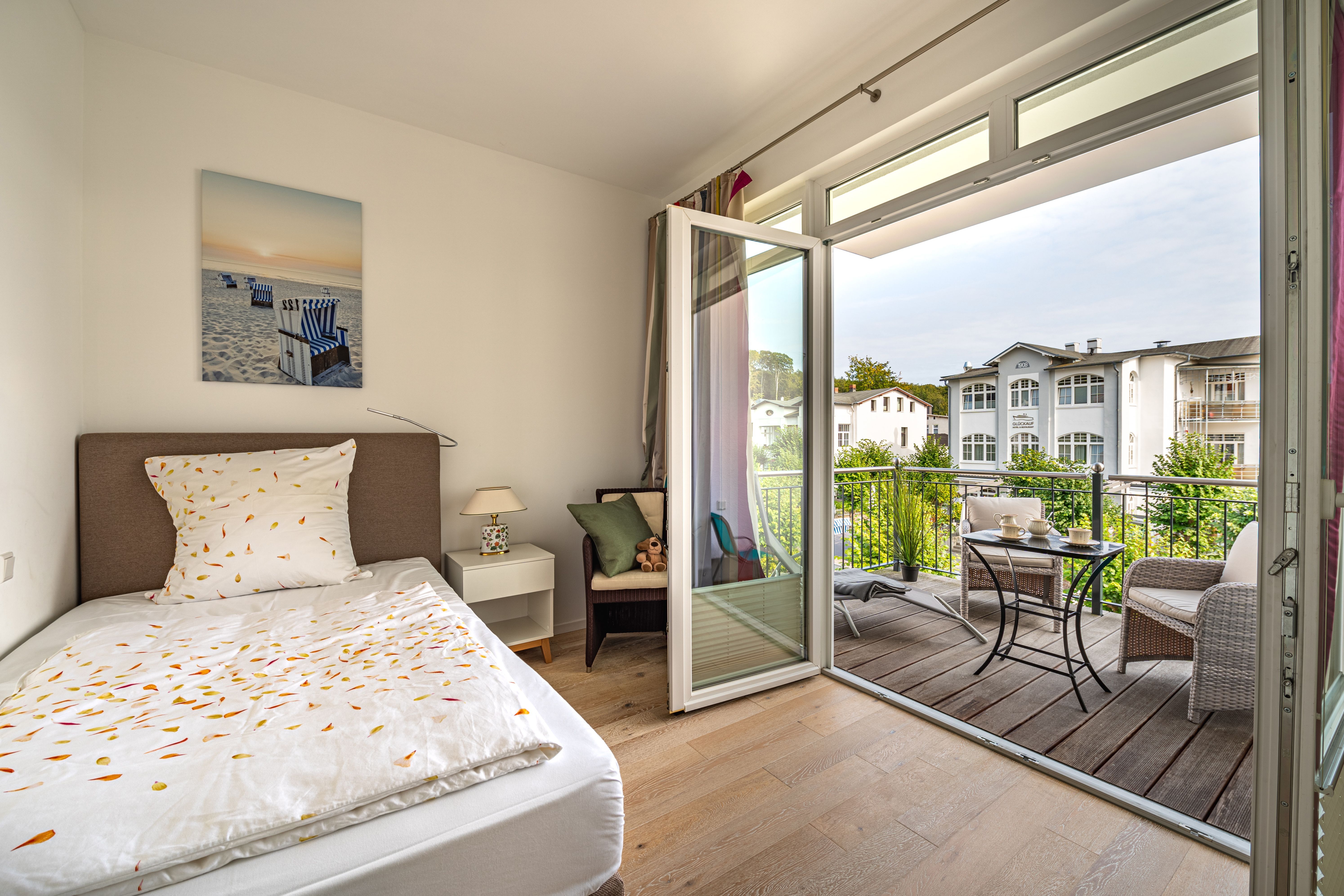 Herzlich willkommen im wunderschönen Urlaubs-Domizil WILHELMINE im zweiten OG der Villa Wiederkehr direkt an der berühmten Wilhelmstraße im Ostseebad Sellin. Die Villa Wiederkehr, im klassischen Bauhausstil errichtet, befindet sich am oberen Ende der Wilhelmstraße zentral gelegen und doch nicht mittendrin im Trubel. Bis zur historischen Seebrücke mit ihren Pavillions und dem feinsandigen Ostseestrand sind es ca. 700 Meter. Der Strand erstreckt sich von Sellin über 7 km, an Baabe vorbei bis zum Ostseebad Göhren. Von der Seebrücke aus startet (saisonal) die Weiße Flotte in Richtung Binz und Sassnitz, bis zu den weltberühmten Kreidefelsen. Von der Villa Wiederkehr ausgehend gelangen Sie in ca. 500 Metern an den Selliner See, der zu herrlichen Wanderungen und Radfahrten einlädt. Wer gerne ein Restaurant besuchen möchte, findet in unmittelbarer Nähe verschiedene Möglichkeiten. Ganz in der Nähe befindet sich auch die Haltestelle des Rasenden Roland, eine der Hauptattraktionen Rügens: die dampflokbetriebene historische Schmalspurbahn, mit der Sie vorbei am Jagdschloss Granitz auch nach Binz fahren können. Ein Spaß für Groß und Klein.