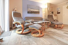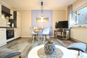 Für einen perfekten Familienurlaub mit bis zu vier Personen ist das strandnahe 3-Zimmer Ferienhaus im Urlauberdorf 41c nahezu perfekt. Kostenfrei können Sie den Bollerwagen sowie Kinderhochstuhl und Kinderbett nutzen. Das gemütlich eingerichtete Ferienhaus bietet Ihnen eine großzügige Wohnfläche von 54qm und empfängt Sie im Erdgeschoss mit einem sehr geschmackvoll möblierten Wohn-/Essbereich in dem ein Sofa und Ruhesessel, Esstisch sowie Fernseher mit DVD und Musikanlage vorhanden sind. Das WLAN nutzen Sie kostenfrei. Vom Wohnraum betreten Sie die sonnige Terrasse, die saisonal bedingt möbliert ist. Eine offene Küchenzeile ist in den Wohnbereich integriert und verfügt über einen Ceranfeldherd mit Backofen, Mikrowelle, Geschirrspüler, Kaffeemaschine, Toaster, Wasserkocher usw. Ebenso befinden sich im Erdgeschoss ein Schlafzimmer mit zwei Einzelbetten und ein hell gefliestes Duschbad, wo auch eine Waschmaschine zur kostenfreien Nutzung bereitsteht. Über eine Treppe gelangen Sie in das Obergeschoss mit einem weiteren Schlafzimmer in dem sich ein Doppelbett, Kleiderschrank und auch ein Fernseher befinden. Zudem sind Bügelbrett und Bügeleisen vorhanden. Ein Gäste-WC befindet sich ebenso im Obergeschoss. Für Ihren PKW ist ein kostenfreier Stellplatz am Haus reserviert. Wir weisen darauf hin, dass es sich um ein Haus für Nichtraucher handelt, in dem Haustiere nicht gestattet sind. In ca. 400 Meter erreichen Sie ein Einkaufszentrum.