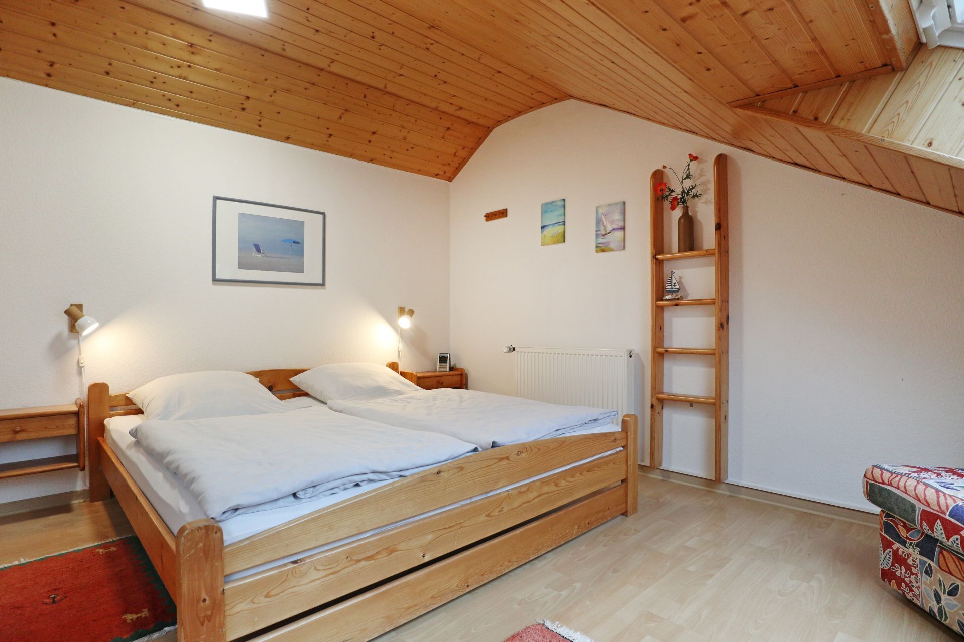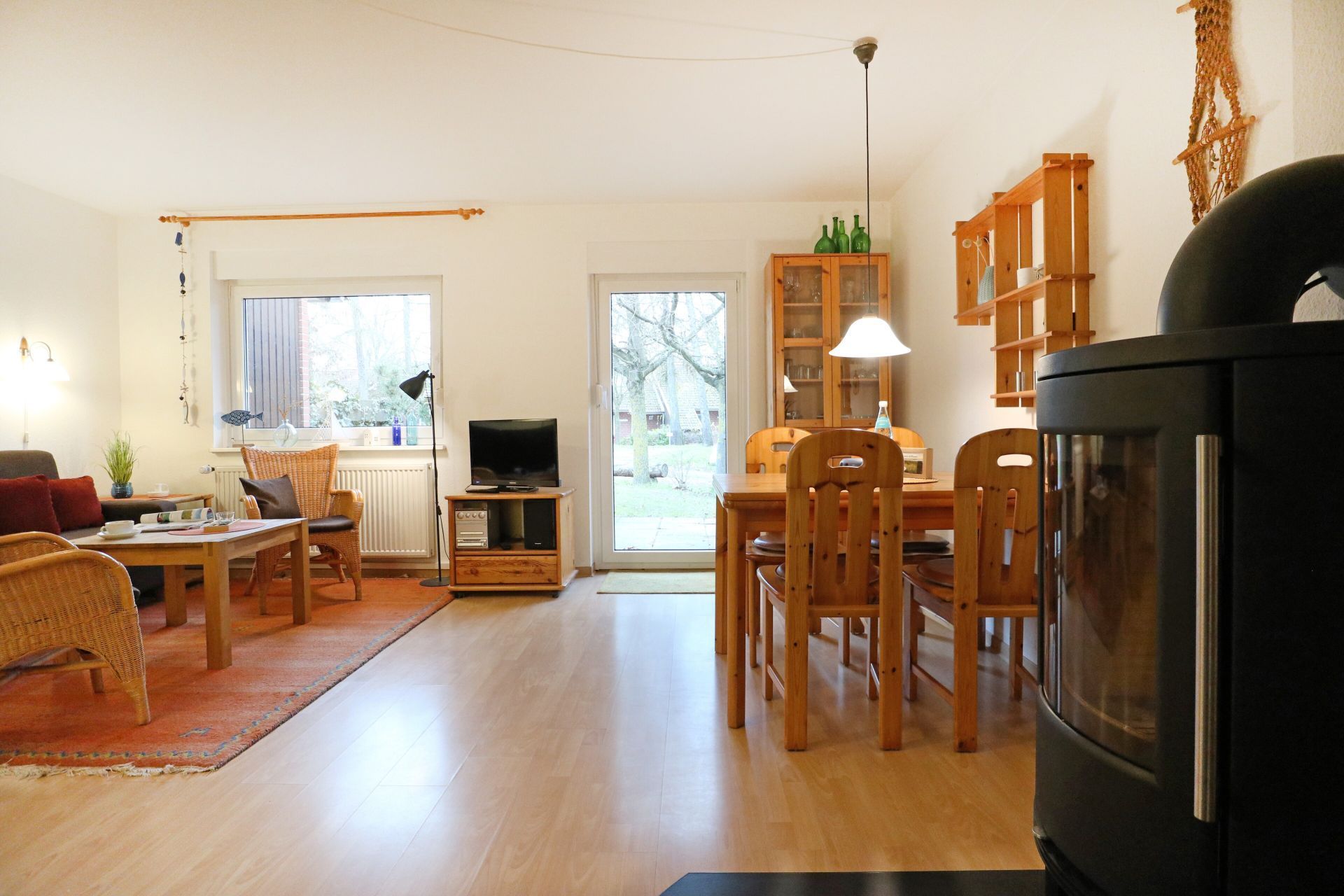 Das Ferienhaus im Urlauberdorf 40b ist ein Mittelhaus von drei Einheiten. Es befindet sich in einem kleinen Waldgebiet nur 350 Meter zum Strand. Das behaglich eingerichtete Feriendomizil mit Terrasse, erstreckt sich über zwei Ebenen und verfügt über eine großzügige Wohnfläche von 63qm. Für bis zu 4 Personen bietet das Haus ideales Wohnen. Es empfängt Sie ein attraktiver Wohn-/ Essbereich mit einem Kaminofen, Sofa, Sessel, Esstisch, Flachbild- TV, Musikanlage und kostenfreier WLAN- Nutzung (ab Dezember 2022 schnelles WLAN (Glasfaseranschluss) verfügbar). Entspannen können Sie auf der saisonabhängig möblierten Süd Terrasse. In den Wohnbereich ist eine voll ausgestattete, offene Küchenzeile integriert. Herd, Geschirrspüler, Mikrowelle, Kaffeemaschine, Toaster, Wasserkocher usw. sind vorhanden. Auf der Wohnebene befinden sich zudem ein Schlafzimmer mit zwei Einzelbetten und Kleiderschrank sowie ein Duschbad mit Waschmaschine. Im Obergeschoss, welches Sie über eine Treppe erreichen, ist ein weiteres Schlafzimmer mit Doppelbett und Kleiderschrank. Für kleine Kinder sind auch ein Reisebett und Hochstuhl vorhanden. Für Ihren PKW steht ein kostenfreier Stellplatz am Haus bereit. Es handelt sich bei diesem Angebot um ein Nichtraucherhaus, in dem Haustiere nicht gestattet sind. Für Familien mit Kindern bietet das strandnahe Urlauberdorf Ferien in naturnaher Umgebung. Gute Einkaufsmöglichkeiten befinden sich in ca. 400 Meter.