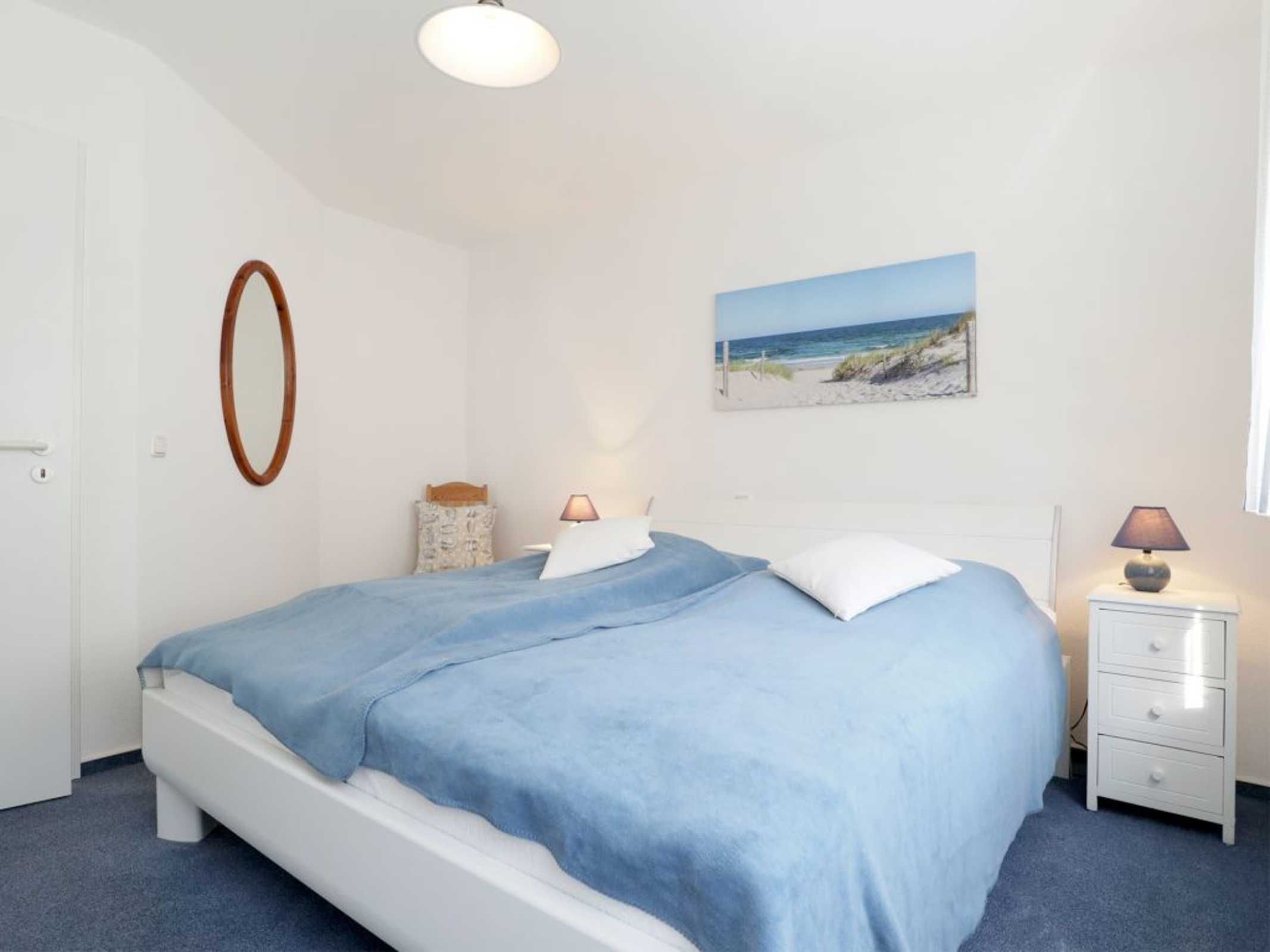 Erholsame Nächte verbringen Sie in einem separaten Schlafzimmer mit Doppelbett und einem Kleiderschrank mit viel Stauraum für Ihre Urlaubsgarderobe.