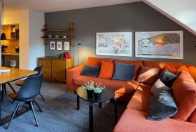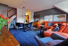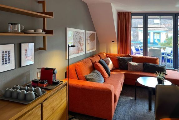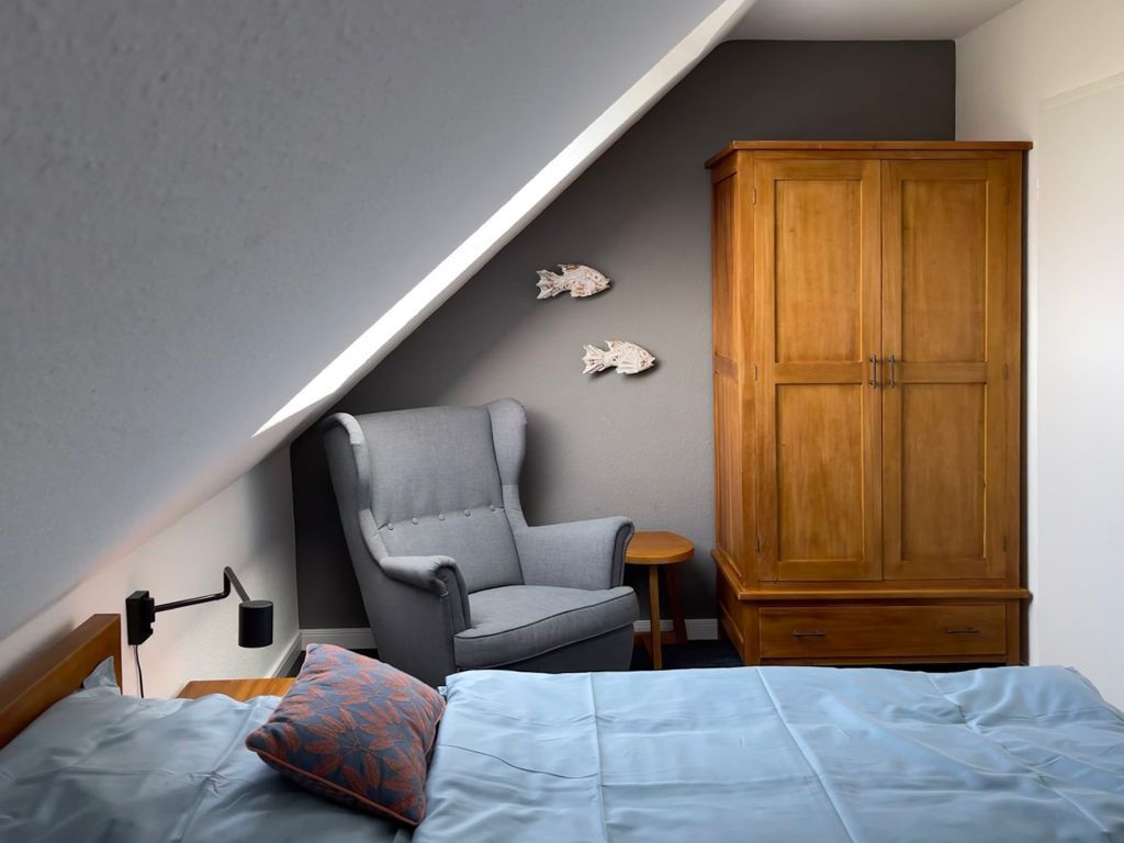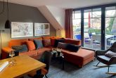 Die 4- Zimmer Maisonetten Ferienwohnung Papillon 12-6 ist ein komfortabel eingerichtetes Appartement mit einer Wohnfläche von 65qm. Eine bequeme Belegung ist mit bis zu 6 Personen möglich. Der großzügige Wohn-/Essbereich ist mit einem Sofa, ausziehbar als Schlafsofa sowie weiteren Sitzmöglichkeiten und einem großen Esstisch möbliert. Ein Fernsehgerät, DVD-Player, Musikanlage und kostenfreie WLAN- Nutzung bieten Abwechslung. Vom Wohnbereich gelangt man auf den saisonal möblierten Süd-Balkon. In der Wohnküche stehen Ceranherd, Backofen, Mikrowelle, Geschirrspüler sowie Kühlschrank mit integr. Gefrierfach, Nespresso-Maschine, Toaster und Wasserkocher bereit. Ihre Mahlzeiten können Sie am Esstisch zu sich nehmen. Zudem befindet sich auf dieser Wohnebene ein separates Schlafzimmer mit zwei Einzelbetten, und Kleiderschrank. Das Duschbad ist mit zwei Waschtischen und WC ausgestattet. Über eine Treppe im Wohnbereich gelangen Sie in die obere Ebene mit zwei weiteren Schlafzimmern, welche jeweils mit einem Doppelbett, Kleiderschrank möbliert sind. Die Wohnung ? mit Ausnahme des Bades- ist mit Teppichbelag ausgelegt. Gegen Gebühr können Sie im Untergeschoß des Hauses Waschmaschine und Wäschetrockner nutzen. Ein Kinderhochstuhl, Kinderbett befindet sich in der Wohnung. Ihren PKW parken Sie kostenfrei auf dem wohnungseigenen Außenstellplatz. Bitte beachten Sie, dass es sich um eine Nichtraucherwohnung handelt. Keine Haustiere. Zur Ostsee gelangen Sie in nur ca. 250 Meter.