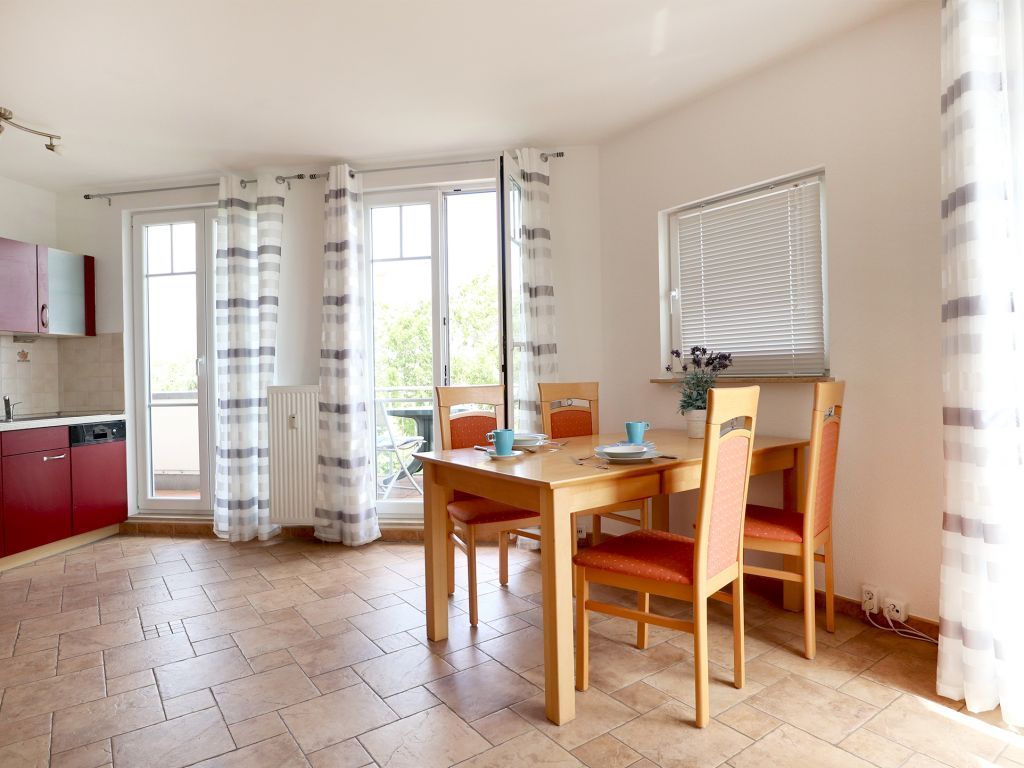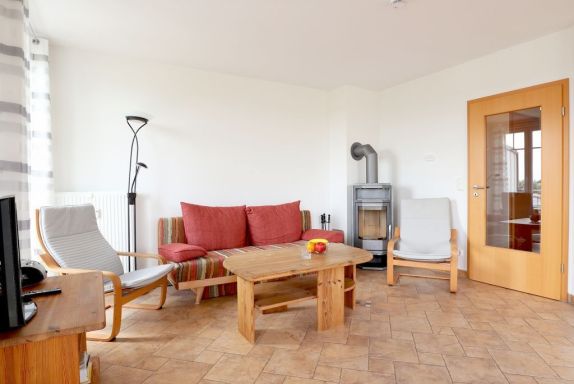 Die komfortable 2 -Zimmerwohnung Achtern Diek 27, besitzt eine Wohnfläche von 56qm und kann mit max. 4 Personen belegt werden. Die Wohnung befindet sich in der 2. Etage. Ein umlaufender Balkon in Nord-Ost, Süd-Ost Ausrichtung, lädt zum Entspannen ein und bietet den Blick ins Weite. Duch bodentiefe Fenster gleitet angenehmes Tageslicht in den Wohn und Essbereich. Hier erwartet Sie ein Sofa, welches als ausziehbares Schlafsofa zwei weitere Schlafmöglichkeiten ermöglicht. Ein Lesesessel, Kaminofen sowie ein Esstisch, Fernseher und eine Musikanlage sind ebenso vorhanden. Die integrierte Wohnküchenzeile ist gut ausgestattet und ermöglicht mit Ceranherd, Backofen, Kühlschrank mit Frostfach, Geschirrspüler, Kaffeemaschine, Toaster usw. die Selbstversorgung.