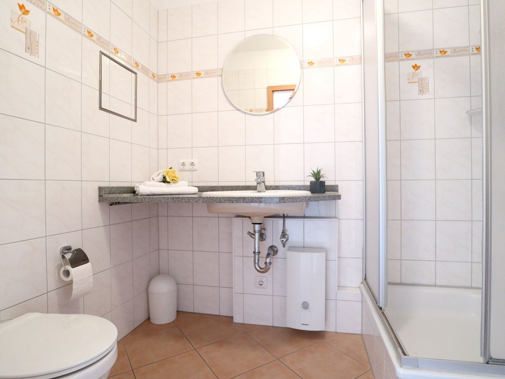 Sie schlafen in einem separaten Schlafzimmer mit Doppelbett und Kleiderschrank. Ein innenliegendes Duschbad mit Waschtisch und WC, ist zugehörig.