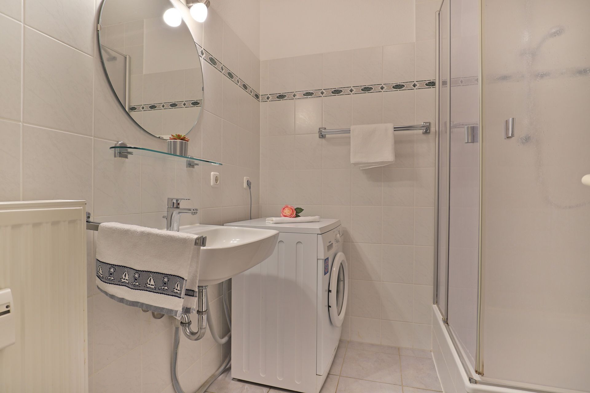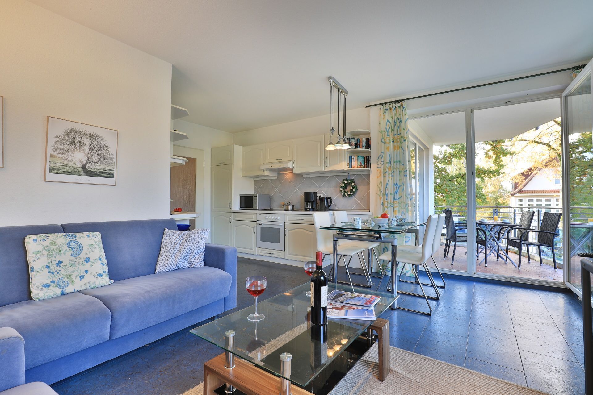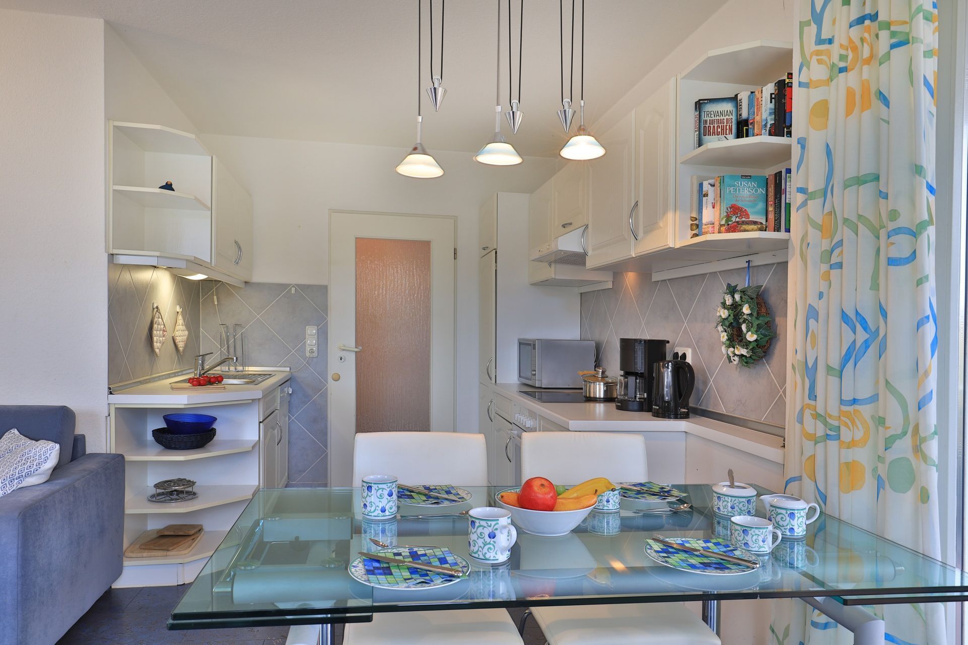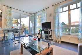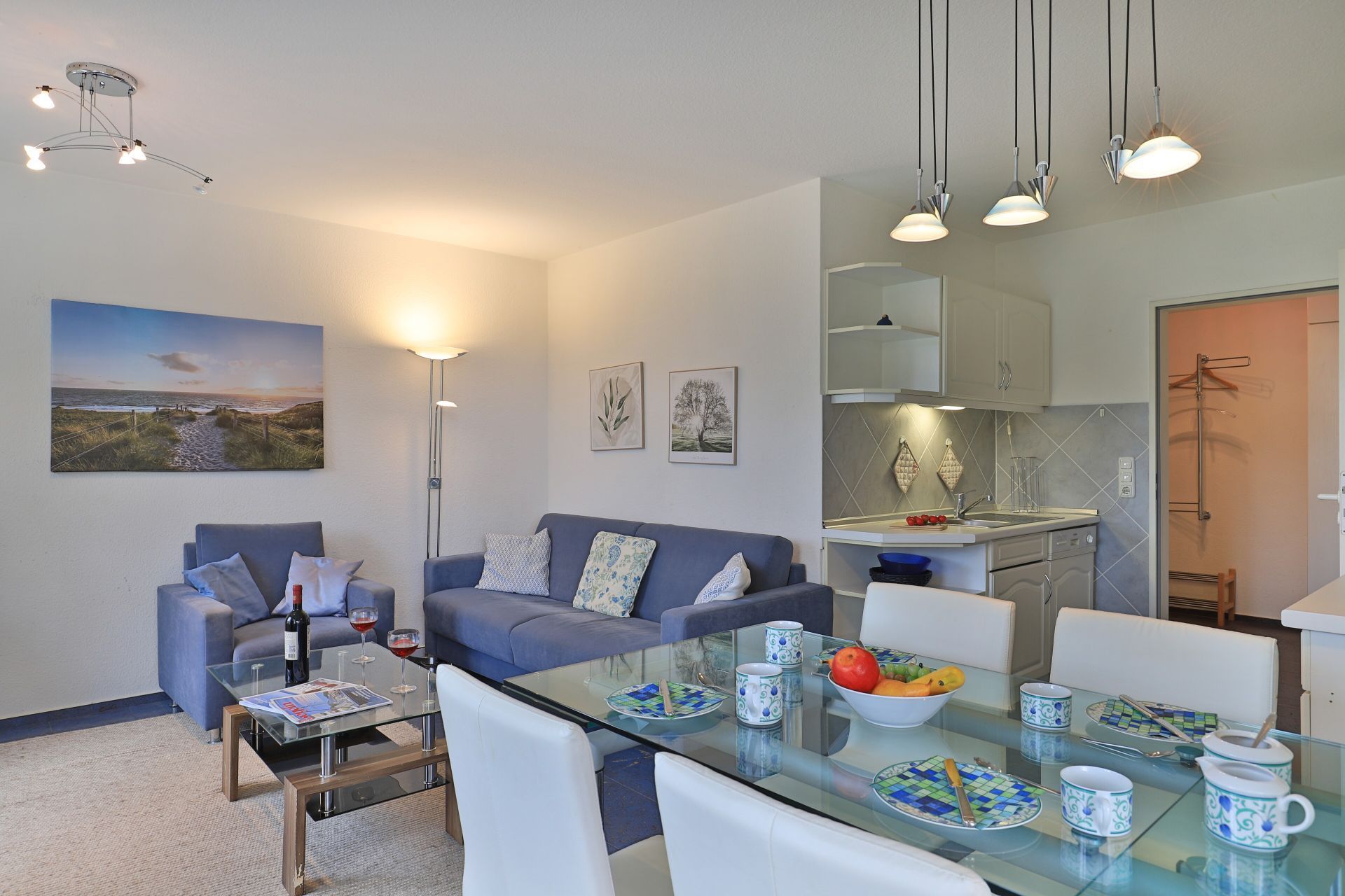Die 2-Zimmer Ferienwohnung ?Likedeeler 16? mit Balkon,liegt in der 1. Etage des Hauses und besitzt eine Wohnfläche von 55qm. Die Wohnung ist für eine Belegung mit bis zu 5 Personen ausgestattet. Für technische Unterhaltung können Sie den Fernseher und ein Radio nutzen zudem steht WLAN kostenfrei bereit. Im geräumigen Wohn-/Essbereich mit großen Fensterfronten, empfängt Sie ein bequemes Sofa mit Sessel, welches als ausziehbares Schlafsofa zwei zusätzliche Schlafgelegenheit ermöglicht. Für gemeinsame Mahlzeiten ist ein Esstisch vorhanden. Die in den Wohnbereich integrierte Wohnküche ermöglicht die Eigenversorgung mit: Ceranherd, Backofen, Mikrowelle, Dunstabzug, Kühlschrank mit integr. Gefrierfach, Geschirrspüler, Kaffeemaschine, Wasserkocher, Toaster usw. Sie speisen gemütlich am Esstisch, oder während der Sommermonate gerne auf dem saisonal möblierten Süd-West Balkon. Ihre Nächte verbringen Sie in einem separaten Schlafzimmer mit Doppelbett, Einzelbett und einem großen Kleiderschrank als Stauraum für die Urlaubsgarderobe. Das Appartement verfügt über ein innenliegendes Duschbad mit Waschtisch, WC und kostenfreier Waschmaschinen Nutzung.