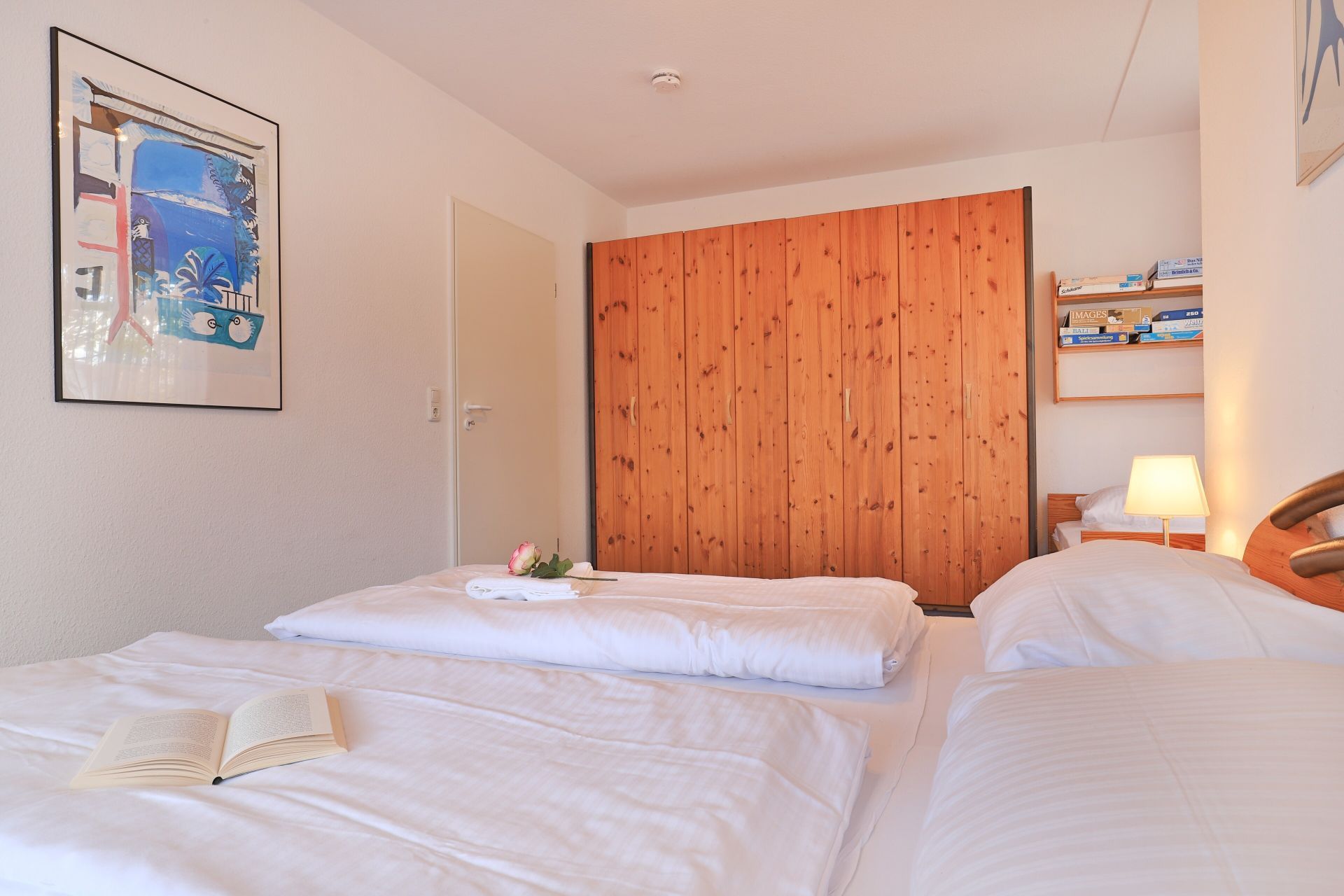 Die Ferienanlage Likedeeler liegt nur 70m zum feinsandigen Strand. Das Mehrparteienhaus verfügt über insgesamt 45 komfortabel eingerichteter Wohneinheiten mit 2-4 Zimmern, voll ausgestatteter Wohnküche, mindestens 1 Schlafzimmer, Duschbad, Balkon oder Terrasse. Die Wohnflächen betragen von 47qm bis 89qm. Im gesamten Haus steht WLAN ohne Gebühr zur Verfügung. Von der hauseigenen Tiefgarage, wo sich auch ein Fahrradabstellraum befindet, gelangen Sie mit dem Personenaufzug bequem in die einzelnen Etagen des Hauses. Waschmaschine bzw. Wäschetrockner stehen gemeinschaftlich gegen Gebühr im Untergeschoss des Hauses bereit. Die Appartementanlage Likedeeler befindet sich nur wenige Gehminuten zum Ortszentrum mit Kurpark und Seebrücke. In direkter Umgebung finden Sie eine große Auswahl an Gastronomie und Cafés. In naher Umgebung erreichen aktive Gäste den Küstenschutzwald mit Outdoor-Fitnessgeräten und Barfußpfad.