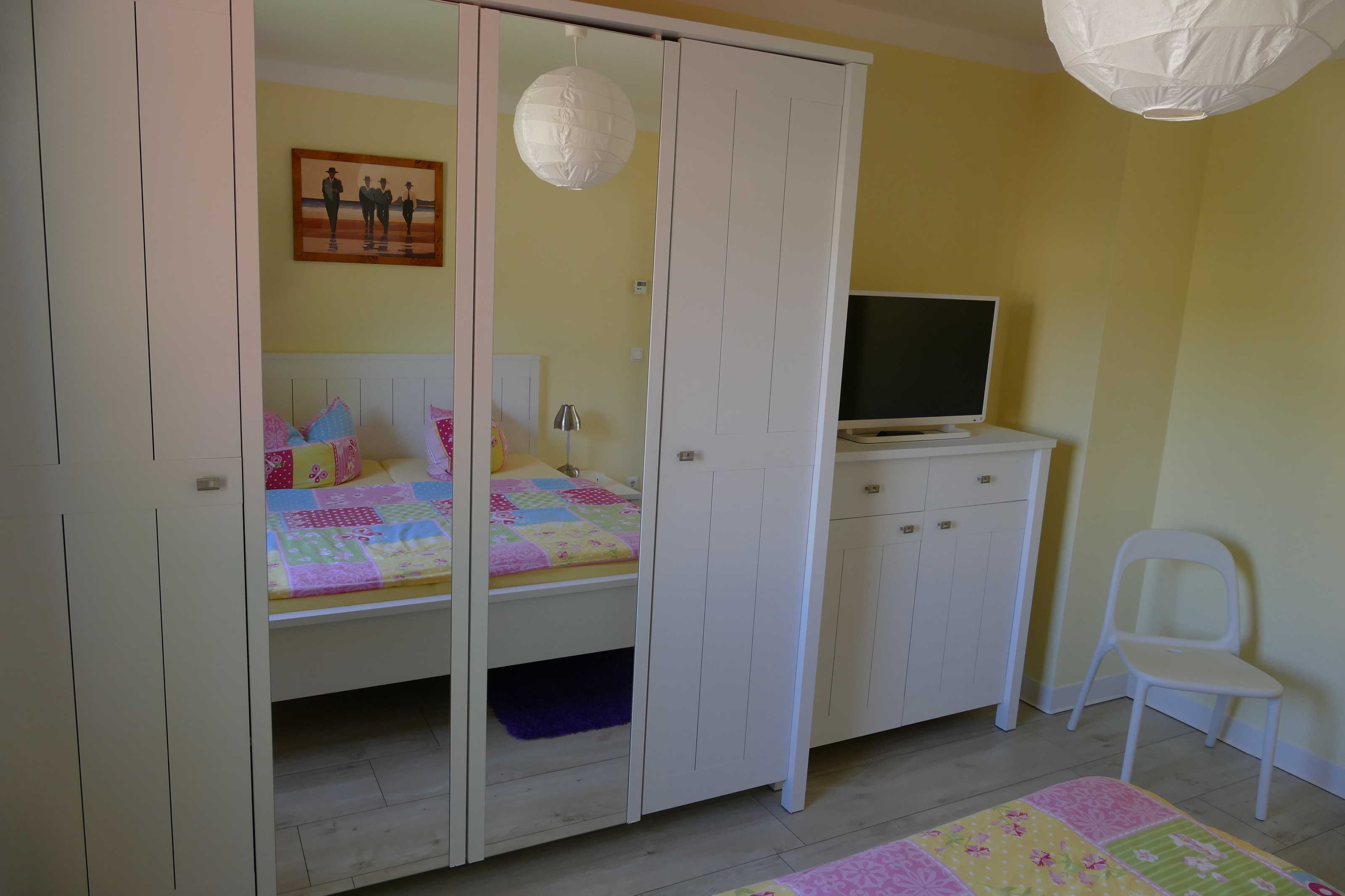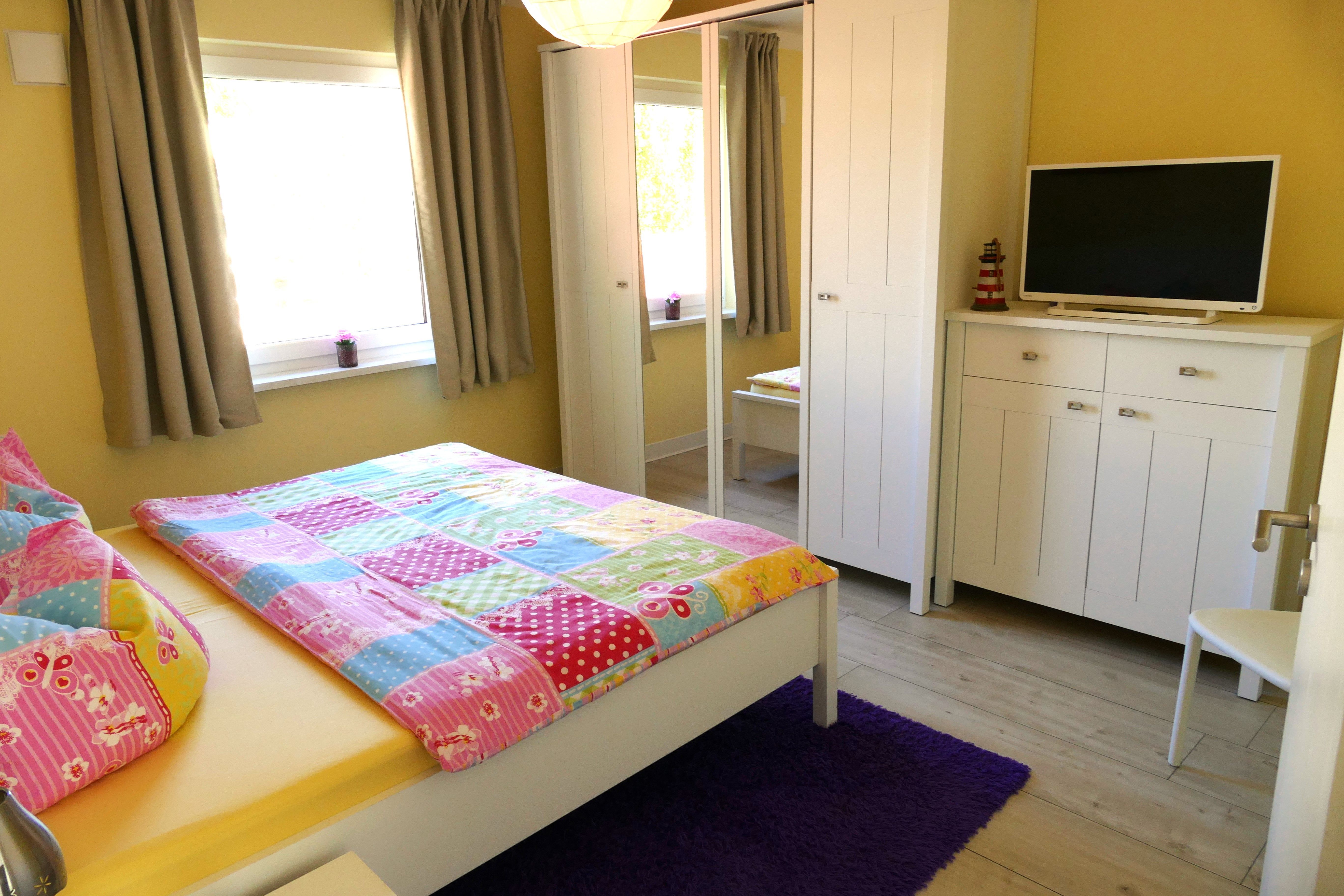 Beide Schlafzimmer verfügen jeweils über ein Doppelbett mit verstellbaren Lattenrosten (1 x 1,80 x 2,00m & 1x 1,60 x 2,00m), Nachttischablagen, einem geräumigen Kleiderschrank sowie ein Smart-TV mit DVD-Player. Ein Kinderreisebett findet bequem hier seinen Platz. Die gemütlichen und wohnlichen Verdunkelungsvorhänge schützen Sie vor der Helligkeit des Morgens und das Fliegengitter hält Insekten fern.