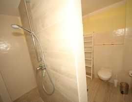 Im Bad finden Sie eine bodenebene Dusche, die von beiden Seiten begehbar ist, einen beheizten Handtuchtrockner, Fön, WC und einen Waschtisch. Für warme Füße sorgt die Fußbodenheizung im gesamten Appartement.