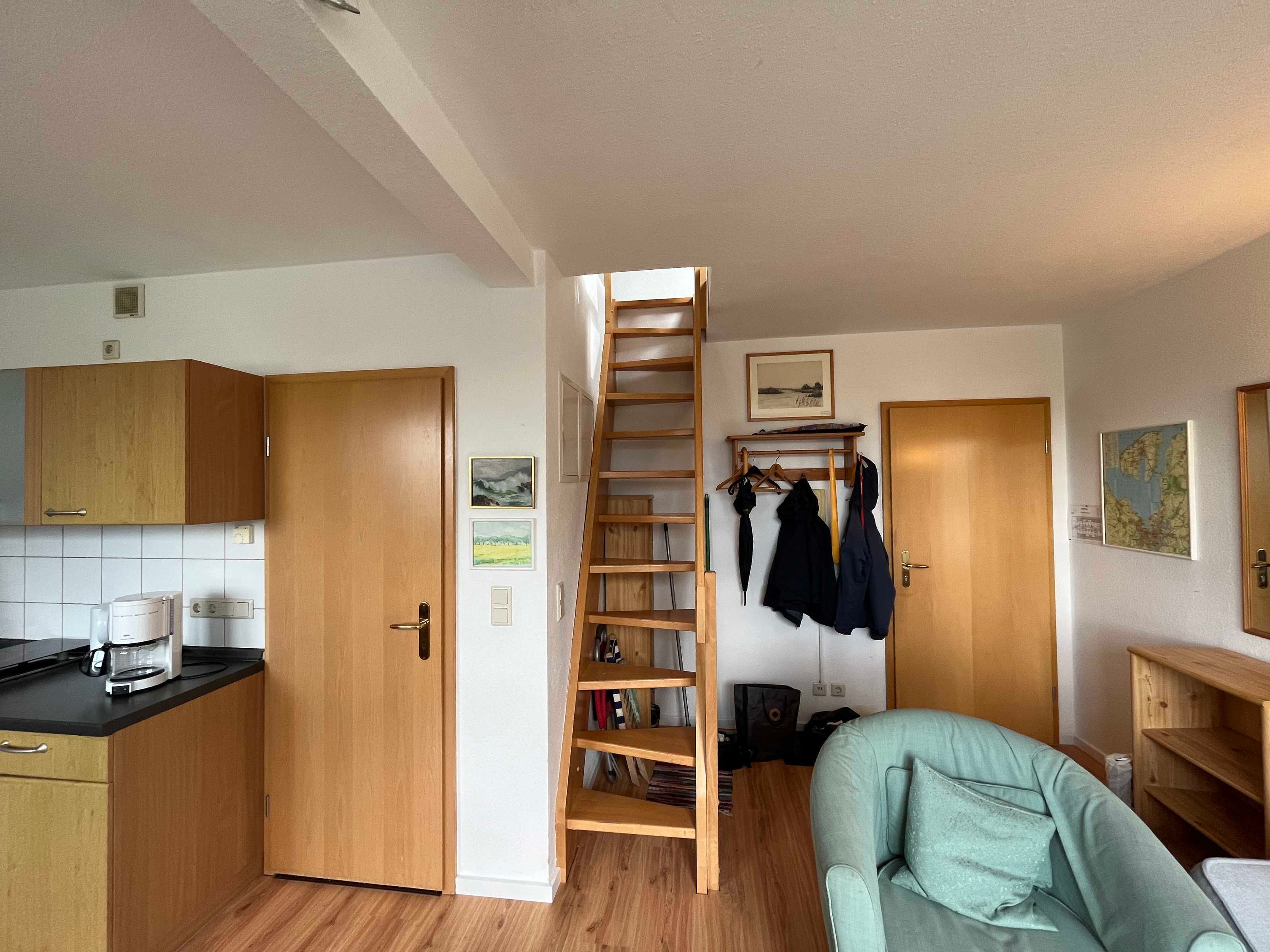 Eine Treppe führt ins Obergeschoss der Wohnung.