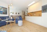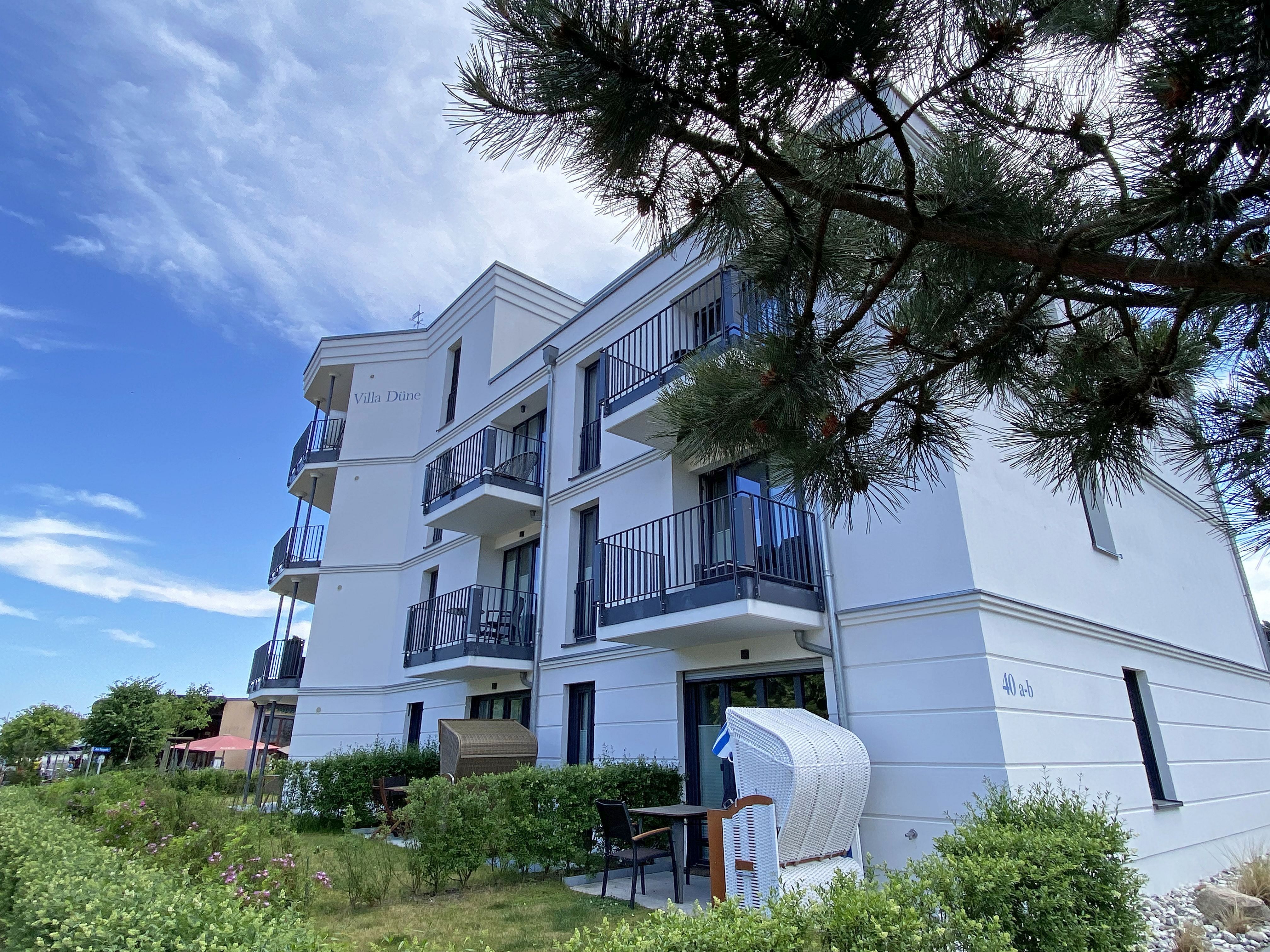 Die großzügige Wohnung (Nr. 42) in der neu erbauten Villa Düne liegt unmittelbar an der Promenade des Ostseebad Baabe, nur knapp 100 Meter vom weißen Sandstrand entfernt, der sich breit über 7 km zwischen Sellin und Göhren erstreckt. Der Name Baaber Strand spiegelt sich in der Gestaltung der großzügigen Ferienwohnung wider. Die liebevolle Ausstattung aller Räume verfolgt ein leichtes, offenes Design, das mit naturbelassenen und hellen Farben, den Bezug zu Strand und Meer herstellt und mit der außergewöhnlichen Lage harmoniert. Daneben wurde vor allem auf die Funktionalität vieler maßgefertigter Möbel wert gelegt, um den Gästen einen jederzeit komfortablen Aufenthalt zu bieten. Die Nichtraucherferienwohnung ist ein persönlicher Rückzugsort und lädt mit Sauna und eigenem Garten zum Entspannen und Wohlfühlen ein. Von der außergewöhnlichen Lage in erster Reihe erreichen Sie entlang des angrenzenden Kurparks mit wenigen Schritten das Wasser. Von hier können Sie mit kurzen Wegen zu ausgedehnten Strandspaziergängen, Wanderungen im Selliner Wald oder Radtouren im Naturschutzgebiet Mönchgut, aufbrechen. Geschäfte des täglichen Bedarfs, Cafés, Restaurants, Spielplätze und viele weitere Urlaubsangebote sind ebenfalls in unmittelbarer Nähe fußläufig zu erreichen.