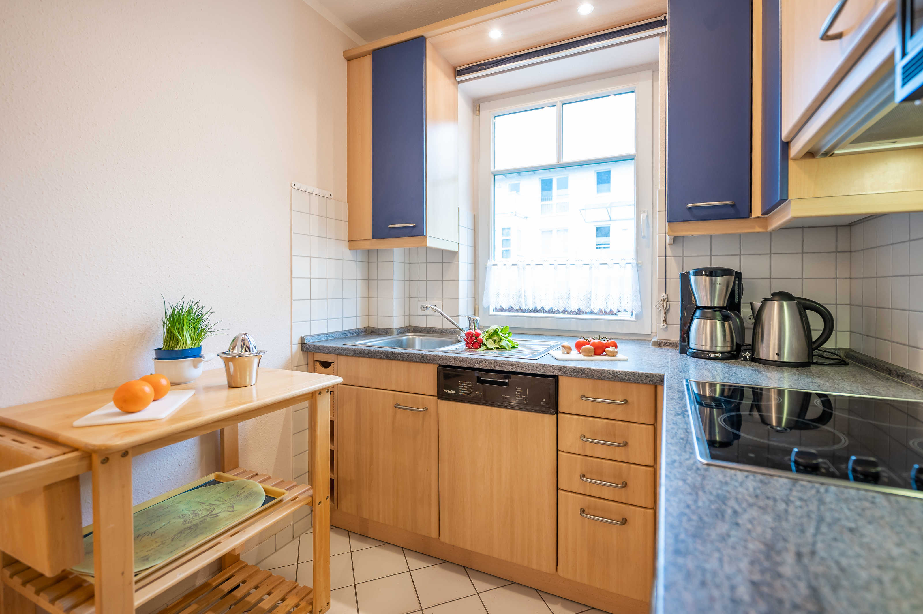 Strandnahes 2-Raum-Appartement im Parterre gelegen und für 1-2 Personen belegbar. Sehr geschmackvoll eingerichtet mit allem Komfort, wie gut ausgestattete Küchenzeile mit Mikrowelle, Geschirrspüler, Ceran-Kochfeld offen zum Wohnbereich. Schlafzimmer mit Boxspringbett und großzügigen Schrank. Badezimmer mit Dusche und WC. Liebevoll eingerichteter Wohnraum mit bequemer Couch ,Sessel, TV, Radio und W-LAN . Angrenzender möblierter überdachter Balkon. Dieses Appartement zeichnet sich durch besondere Helligkeit ( große Fensterfront ) aus. Münzwaschmaschine und Münztrockner im Haus.1 PKW-Stellplatz sowie Abstellmöglichkeit für Fahrräder stehen auf dem Grundstück zur Verfügung. Mitbringen eines Hundes erlaubt (Kosten 10,- pro Übern.).