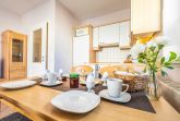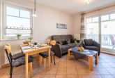 Strandnahes 3-Raum-Appartement im 2. OG gelegen und bis 4 Personen belegbar. Sehr geschmackvoll eingerichtet mit allem Komfort, wie gut ausgestattete Küchenzeile mit Mikrowelle, Geschirrspüler, Ceran-Kochfeld, Backofen offen zum Wohnbereich. Schlafzimmer mit Boxspringbett und großzügigen Schrank. Badezimmer mit Dusche und WC. Liebevoll eingerichteter Wohnraum mit bequemer Couch und Sessel, TV, Radio und W-LAN . 2. Schlafraum mit Etagenbett sowie TV ausgestattet. Angrenzender möblierter Balkon.