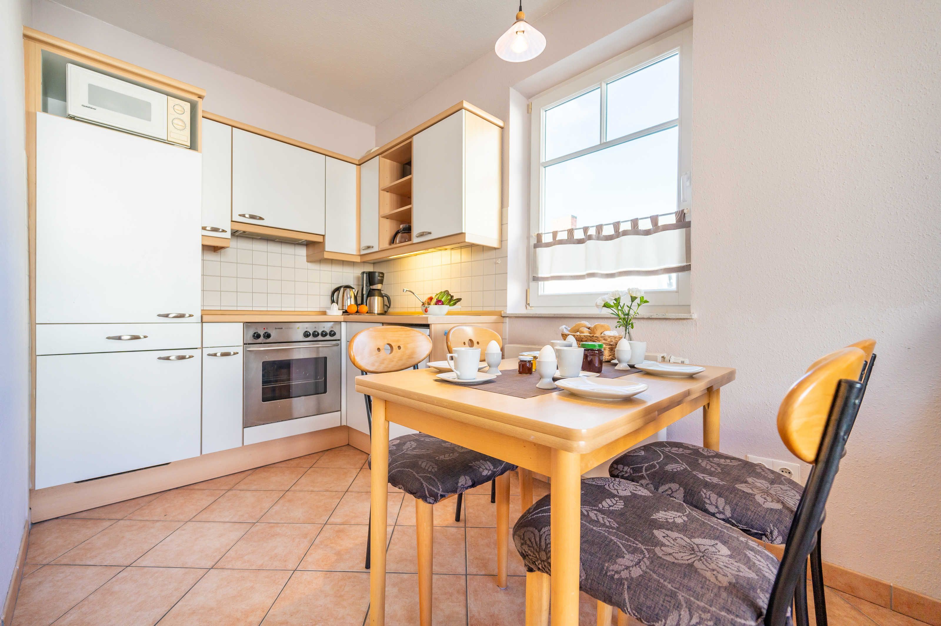 Dieses Appartement zeichnet sich durch besondere Helligkeit ( große Fensterfront ) aus. Münzwaschmaschine und Münztrockner im Haus.1 PKW-Stellplatz sowie Abstellmöglichkeit für Fahrräder (abschließbarer Gemeinschaftsraum ) stehen auf dem Grundstück zur Verfügung. Wäschepaket auf Wunsch pro Person 25,-. Bitte um Vorbestellung oder gleich online dazu buchen.