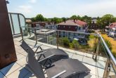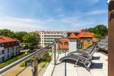Villa Höger ist ein denkmalgeschütztes Gebäude in bester Lage des Ostseebades nahe zur Seebrücke. Hochwertig restauriert gehört diese Villa mit insgesamt 12 Wohneinheiten zu den exklusivsten Ferienunterkünften von Boltenhagen. Jedes Appartement besitzt einen Balkon oder Terrasse teilweise mit Meerblick. Ein für Sie reservierter Strandkorb am nur 30 Meter entfernten, feinsandigen Badestrand ist im Mietpreis bereits enthalten und bei Anreise sind Ihre Betten für Sie bezogen und auch Handtücher liegen bereit. WLAN ist kostenfrei vorhanden. Mit dem Fahrstuhl gelangen Sie bequem in die von Ihnen gebuchte Etage. Zudem verfügt das Haus über eine Tiefgarage. Sie residieren in naher Umgebung zum Kurpark mit Konzertbühne, 290m langer Seebrücke sowie nah zu Restaurants, Boutiquen, Fahrradverleih. Die hier beschriebene Penthouse Wohnung Villa Höger 11, ist eine schicke 3 Raum Maisonetten Wohnung mit zwei Dachterrassen davon eine mit Meerblick. Die Wohnfläche beträgt 80qm. Mit maximal 4 Personen verbringen Sie hier einen entspannten Urlaub. Zwei separate Schlafzimmer sowie ein Bad mit Wellness Dusche ist vorhanden. Eine offene Küchenzeile ist im Wohnbereich integriert. Nutzung von Waschmaschine und Wäschetrockner gegen Gebühr. Es handelt sich um eine Nichtraucher Wohnung. Haustiere sind nicht gestattet.