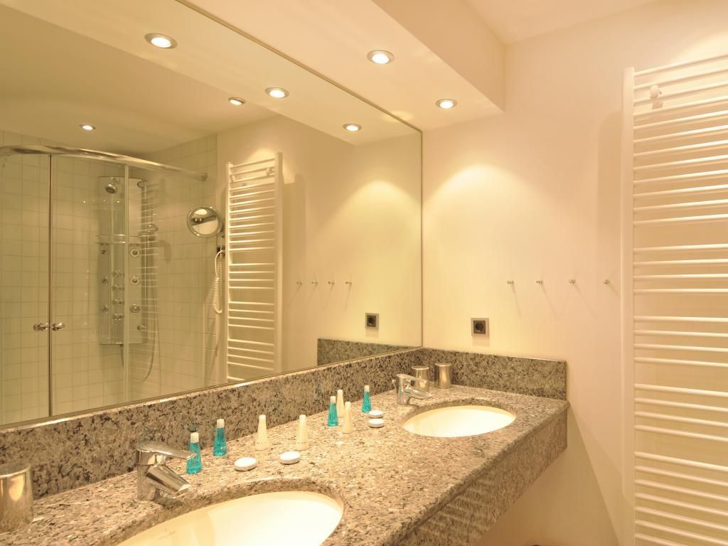 Die untere Wohnebene ist mit zwei separaten Schlafzimmern ausgestattet, in denen sich jeweils ein Doppelbett befindet. Das hochwertige Duschbad mit Wellnessdusche, Fußbodenheizung sowie zwei Waschbecken lässt Sie vergnügt in den Urlaubstag starten. Bei Ihrer Anreise sind die Betten bereits bezogen und Hand-Duschtücher liegen bereit. Da es sich um eine Maisonettenwohnung handelt, ist die obere Ebene mit Wohn-/Essbereich über eine Treppe zu erreichen.